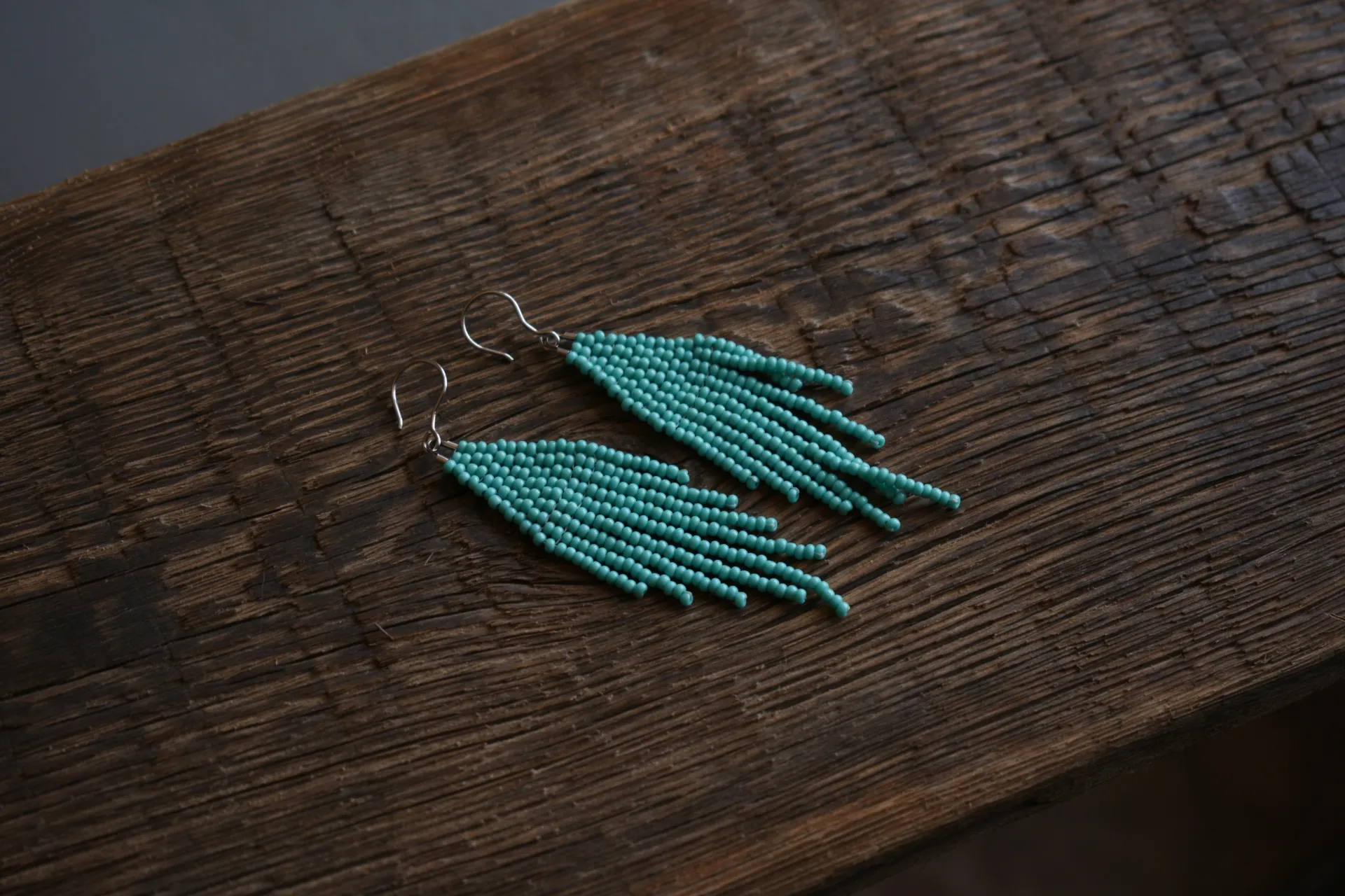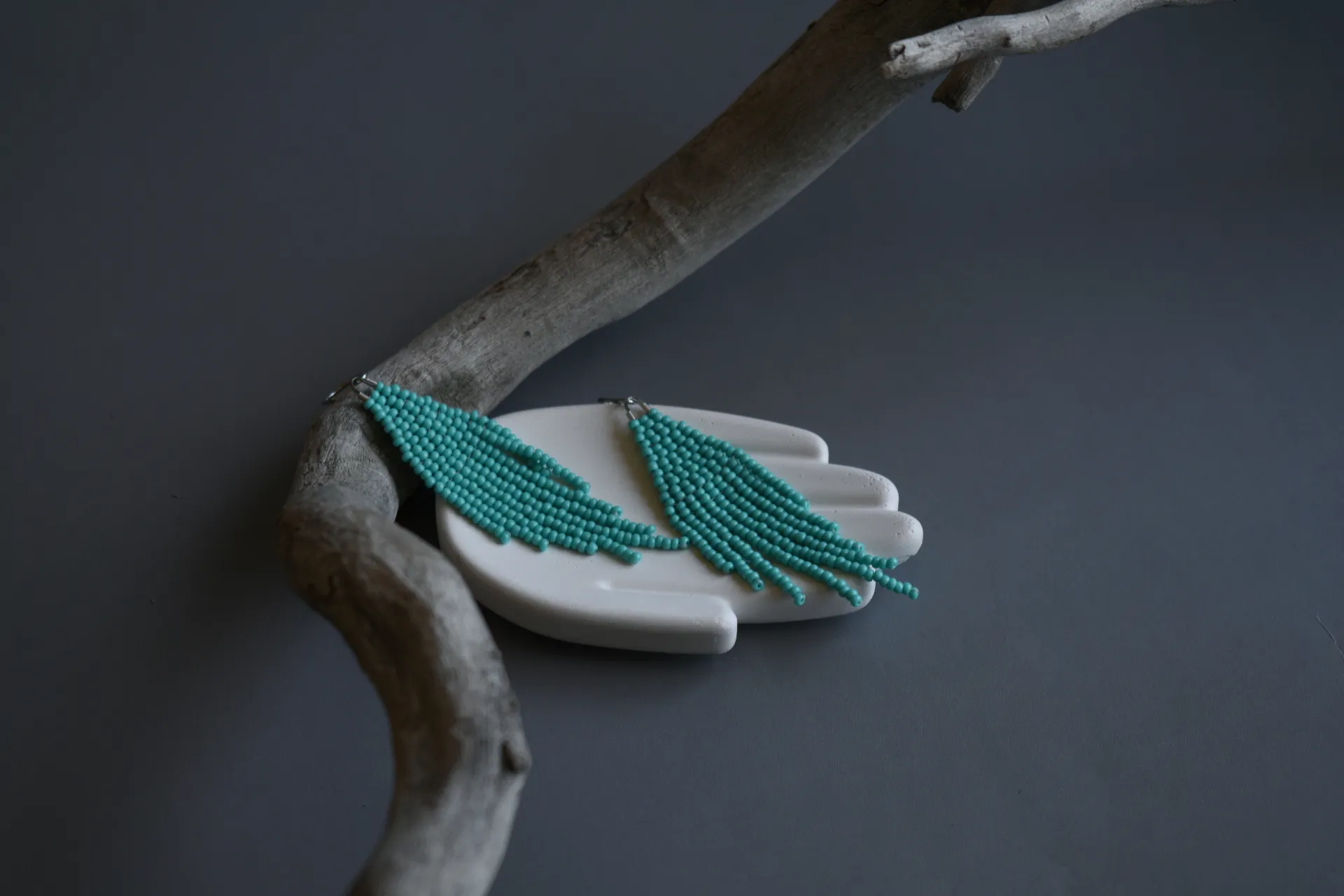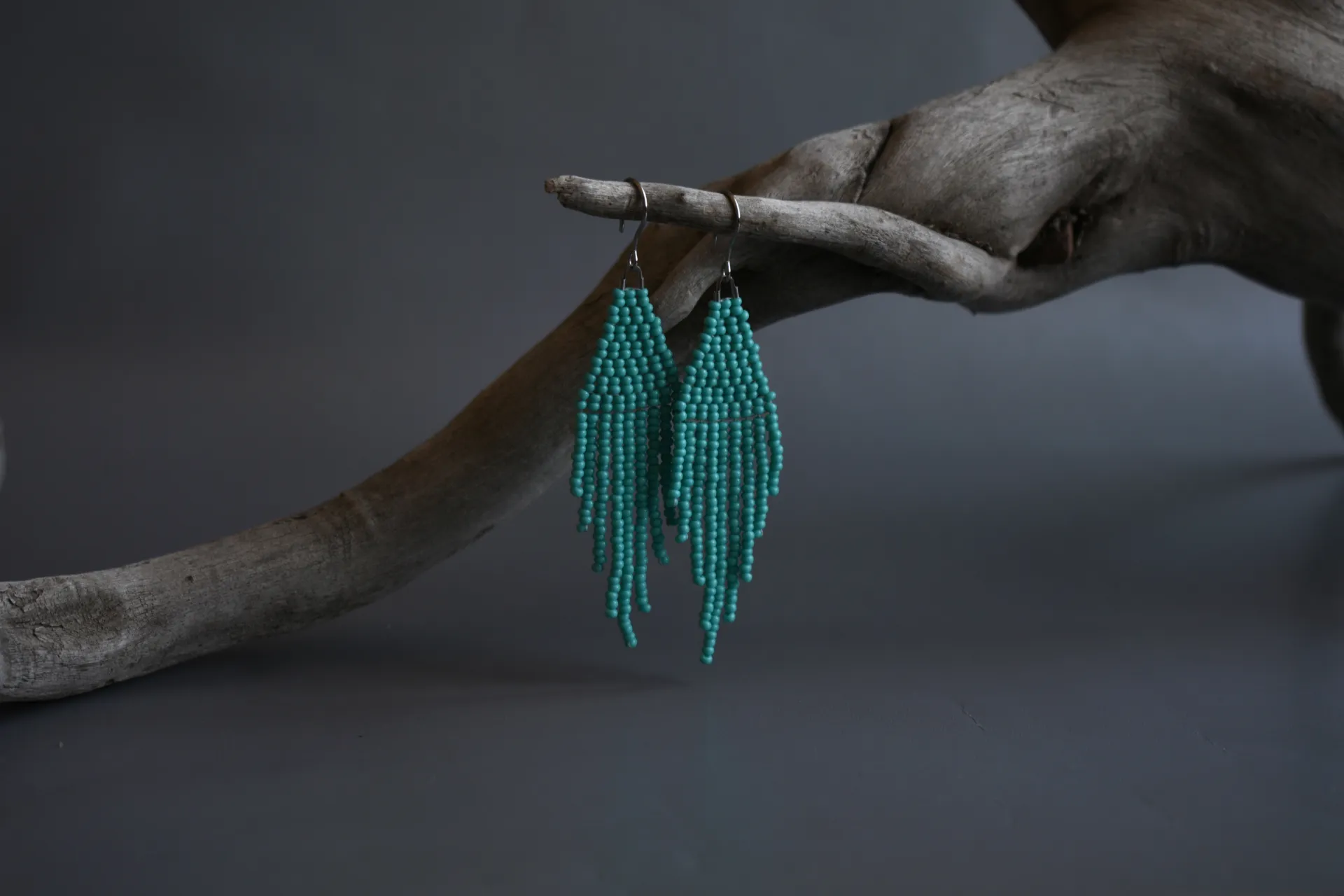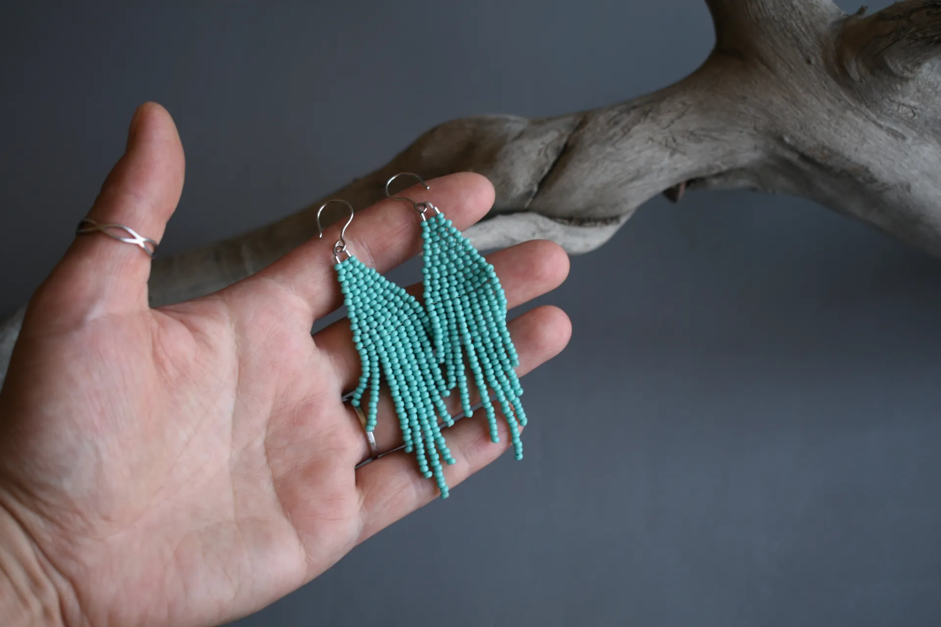 Однотонные серьги-кисти из бисера бирюзового цвета.