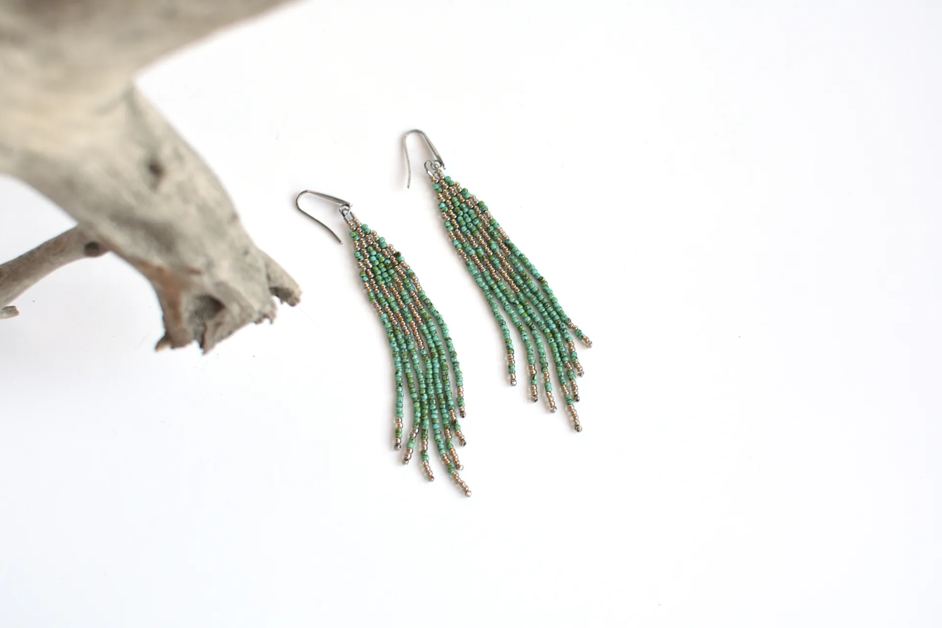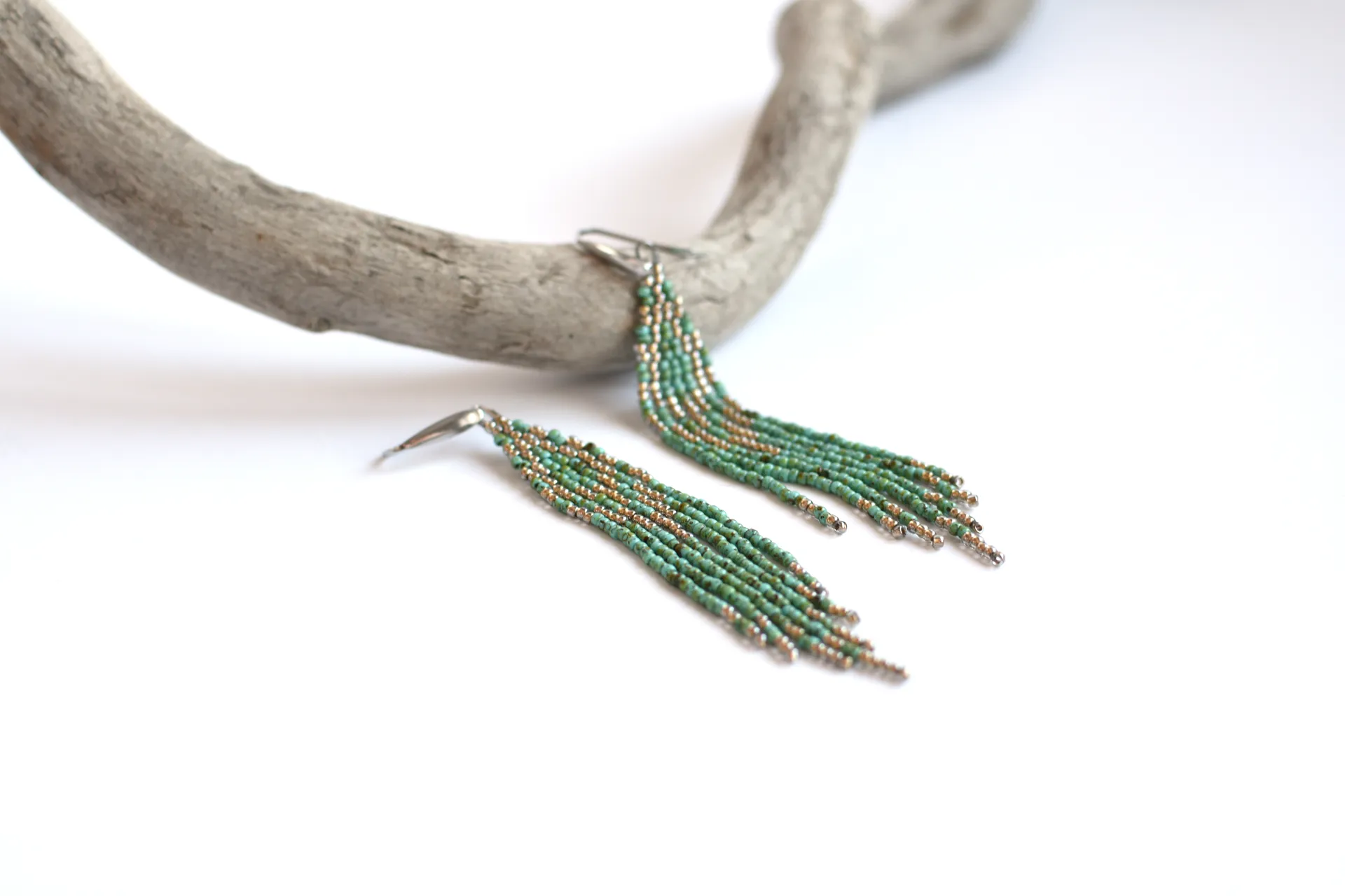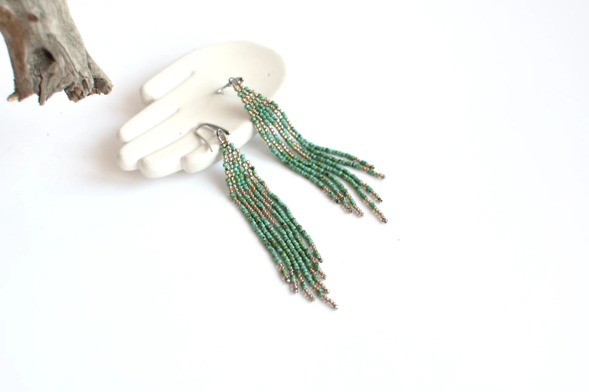 Тонкий браслет с бисером бирюзового цвета под камень.