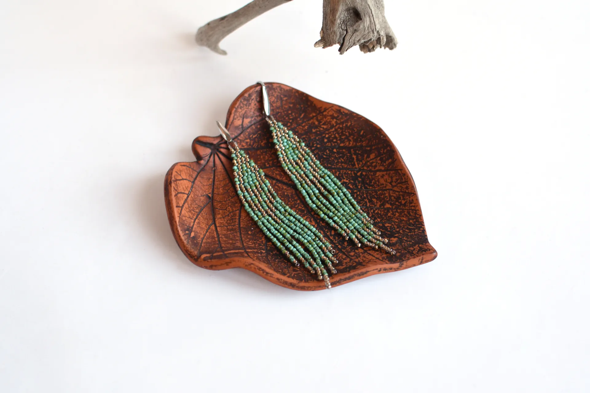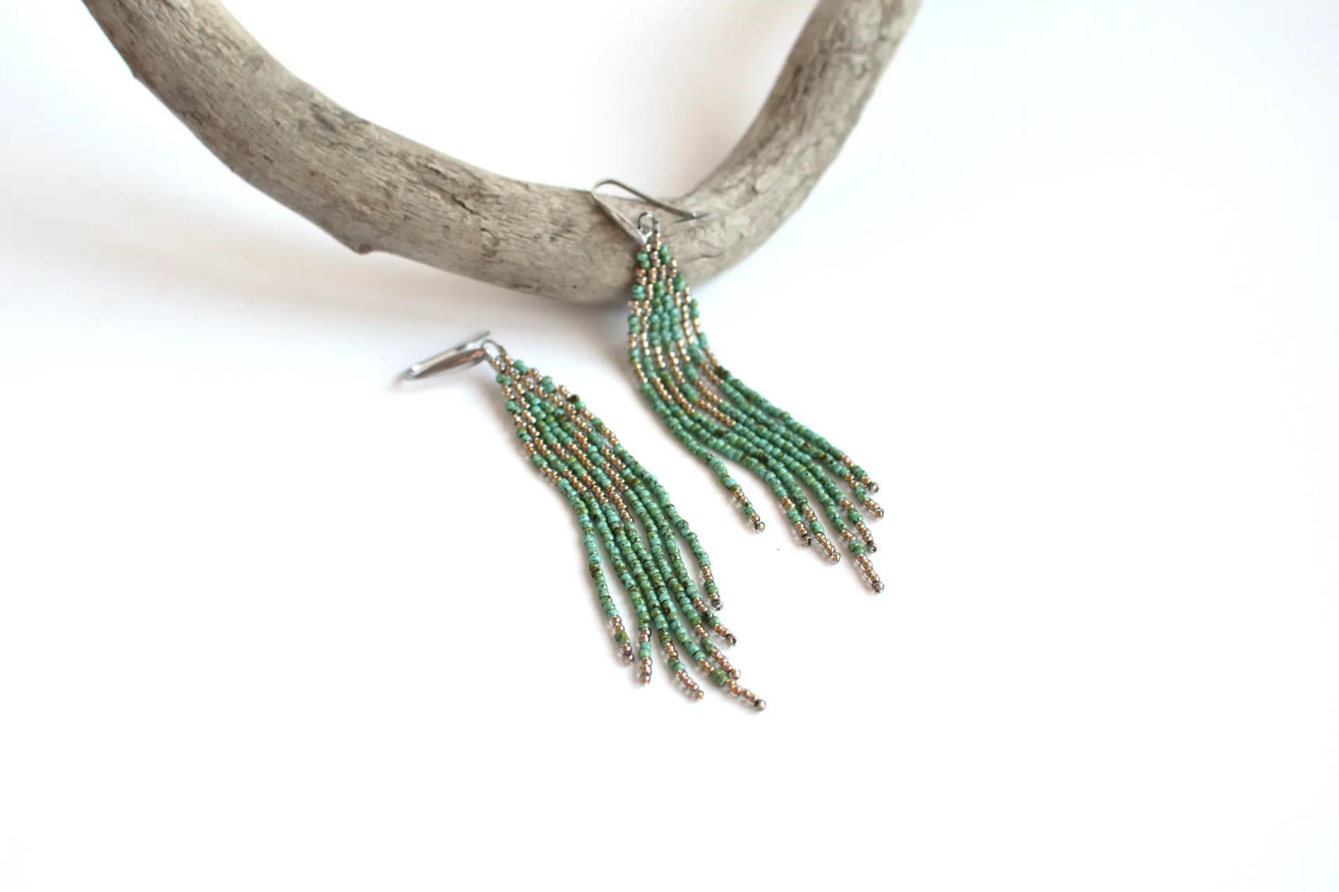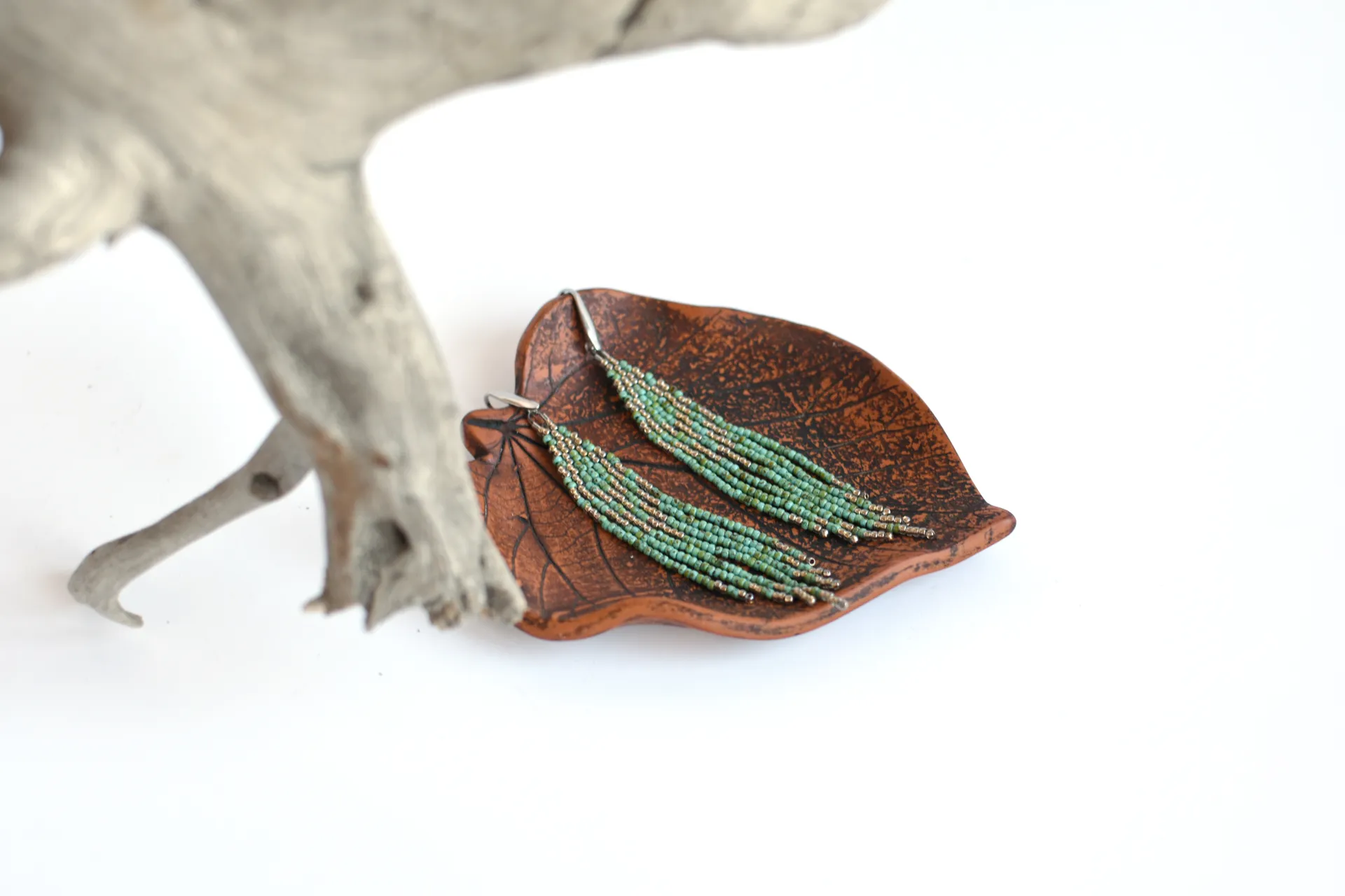 Тонкий браслет с бисером бирюзового цвета под камень.