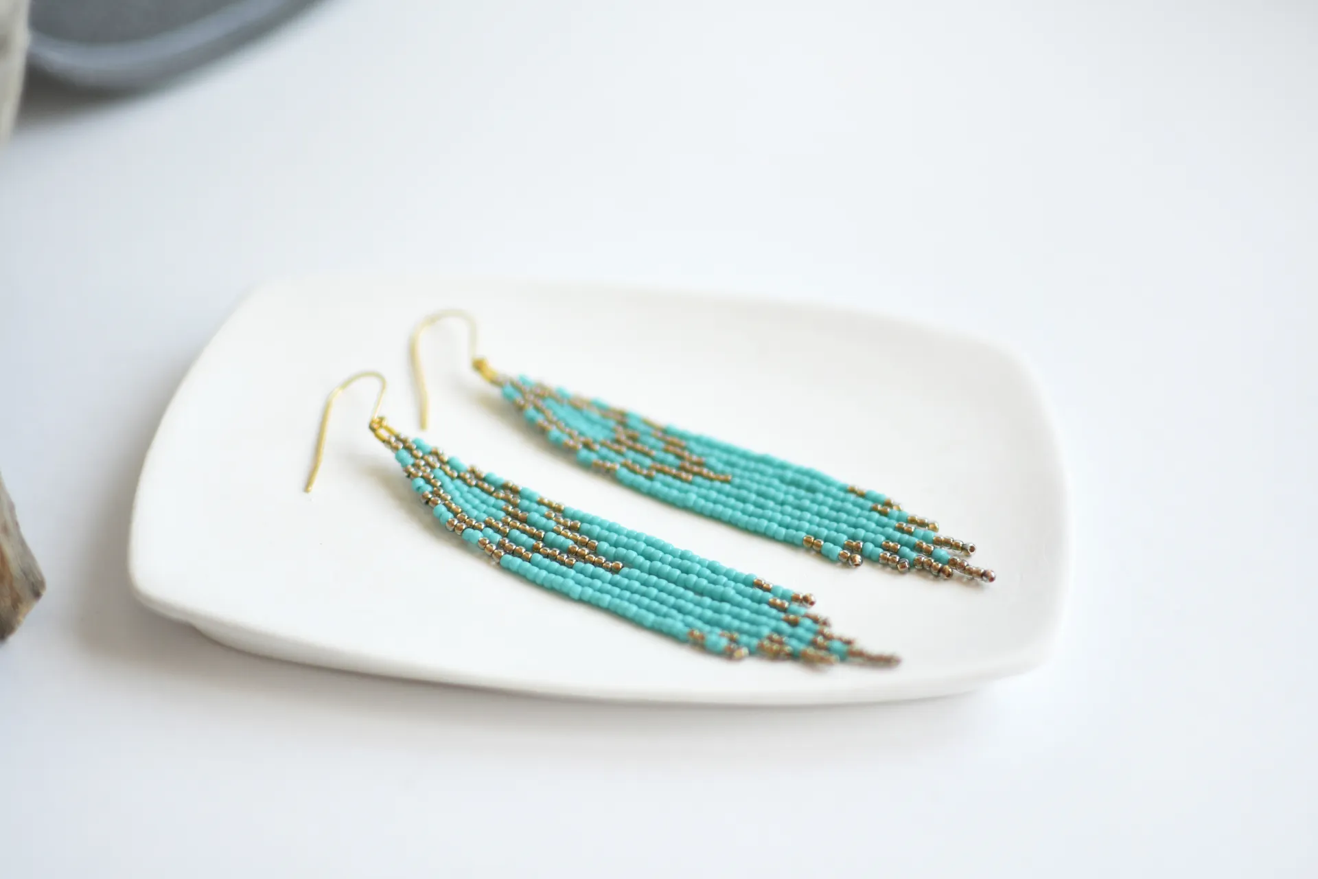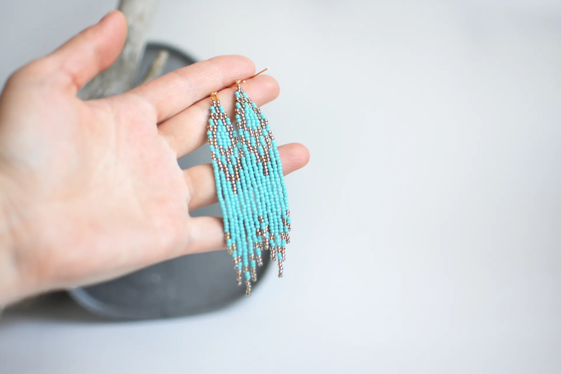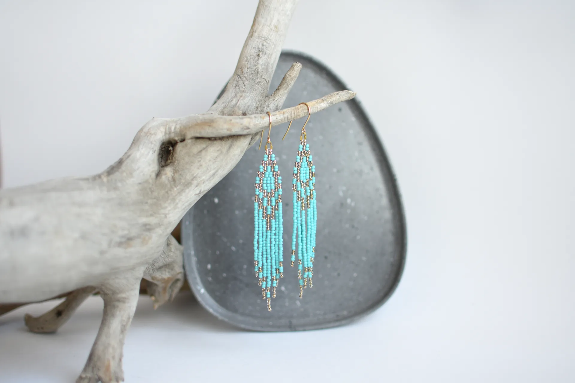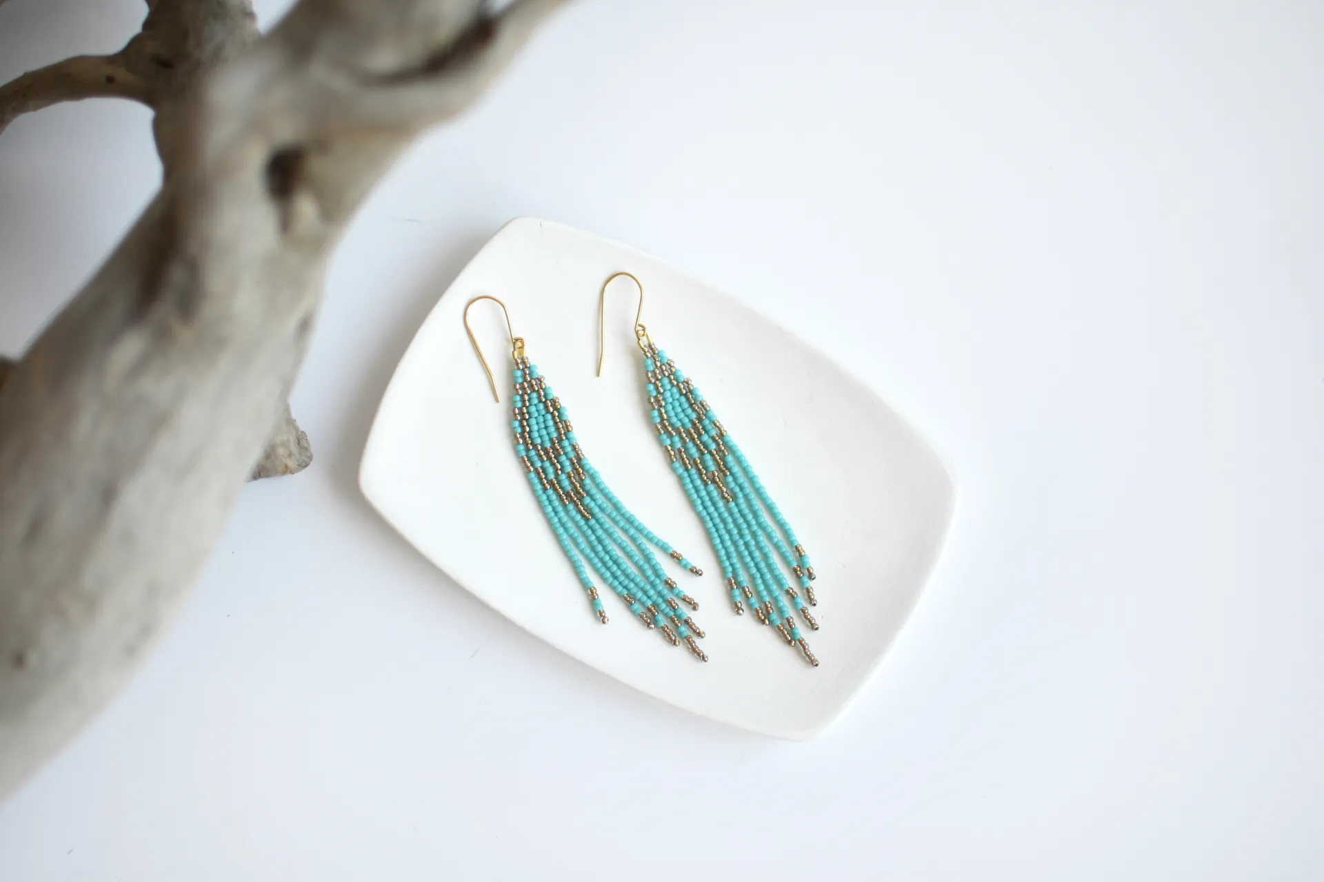 Длинные серьги с бахромой цвета голубой бирюзы.