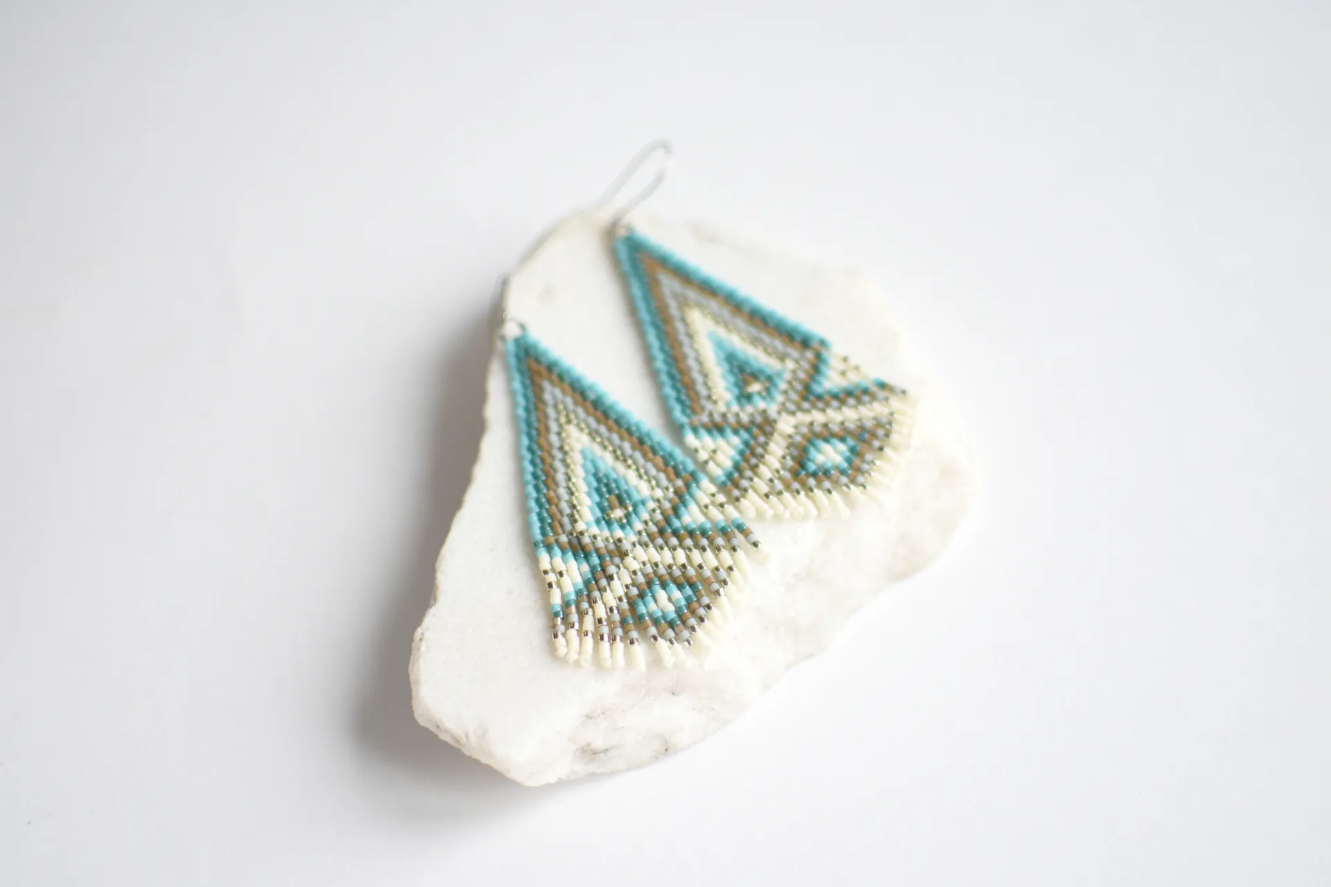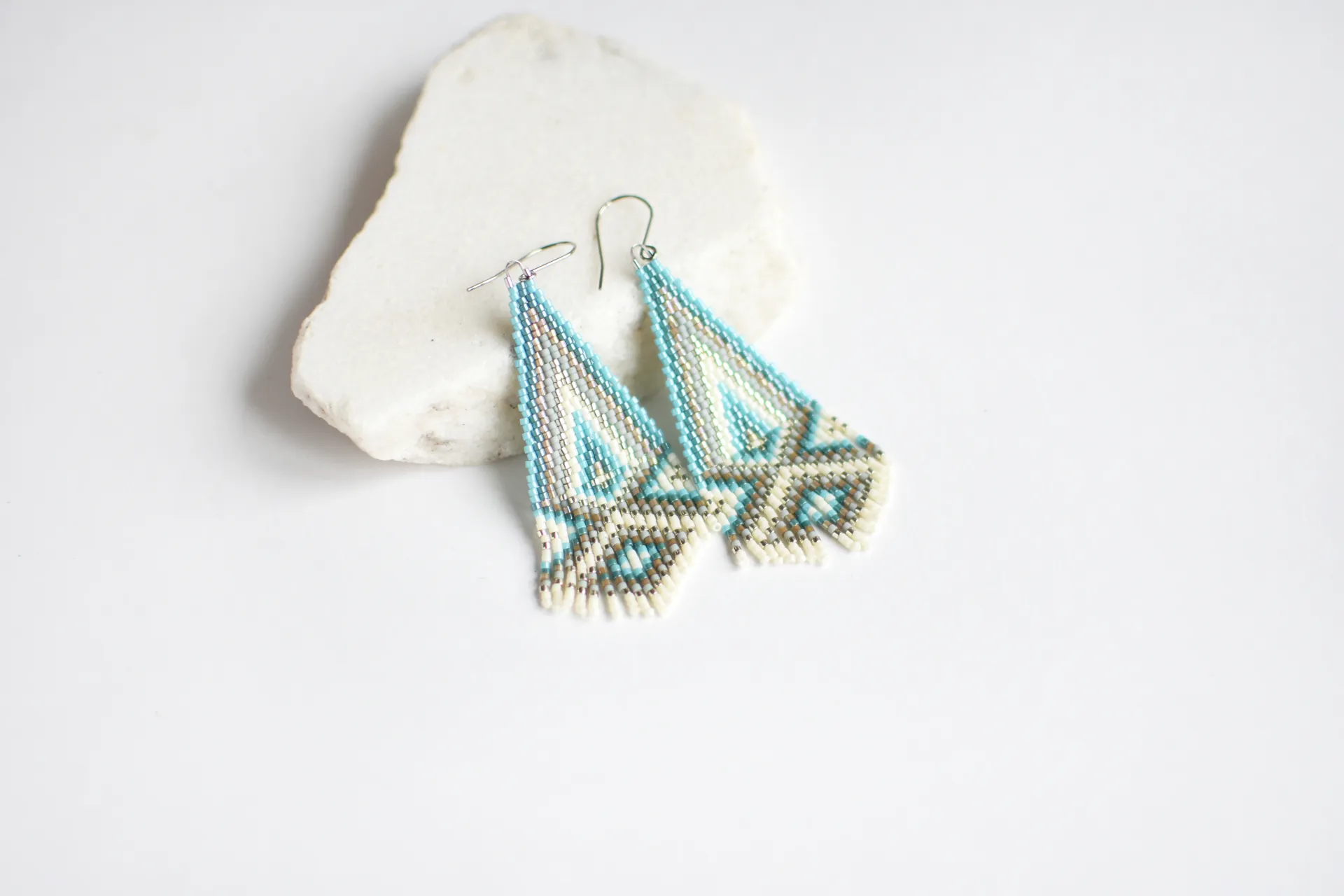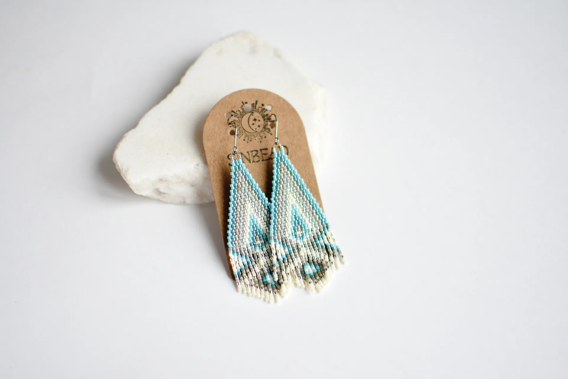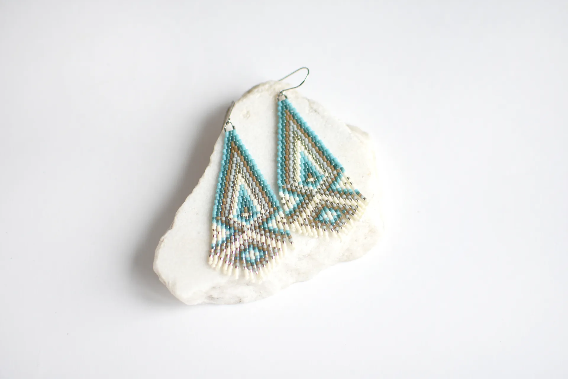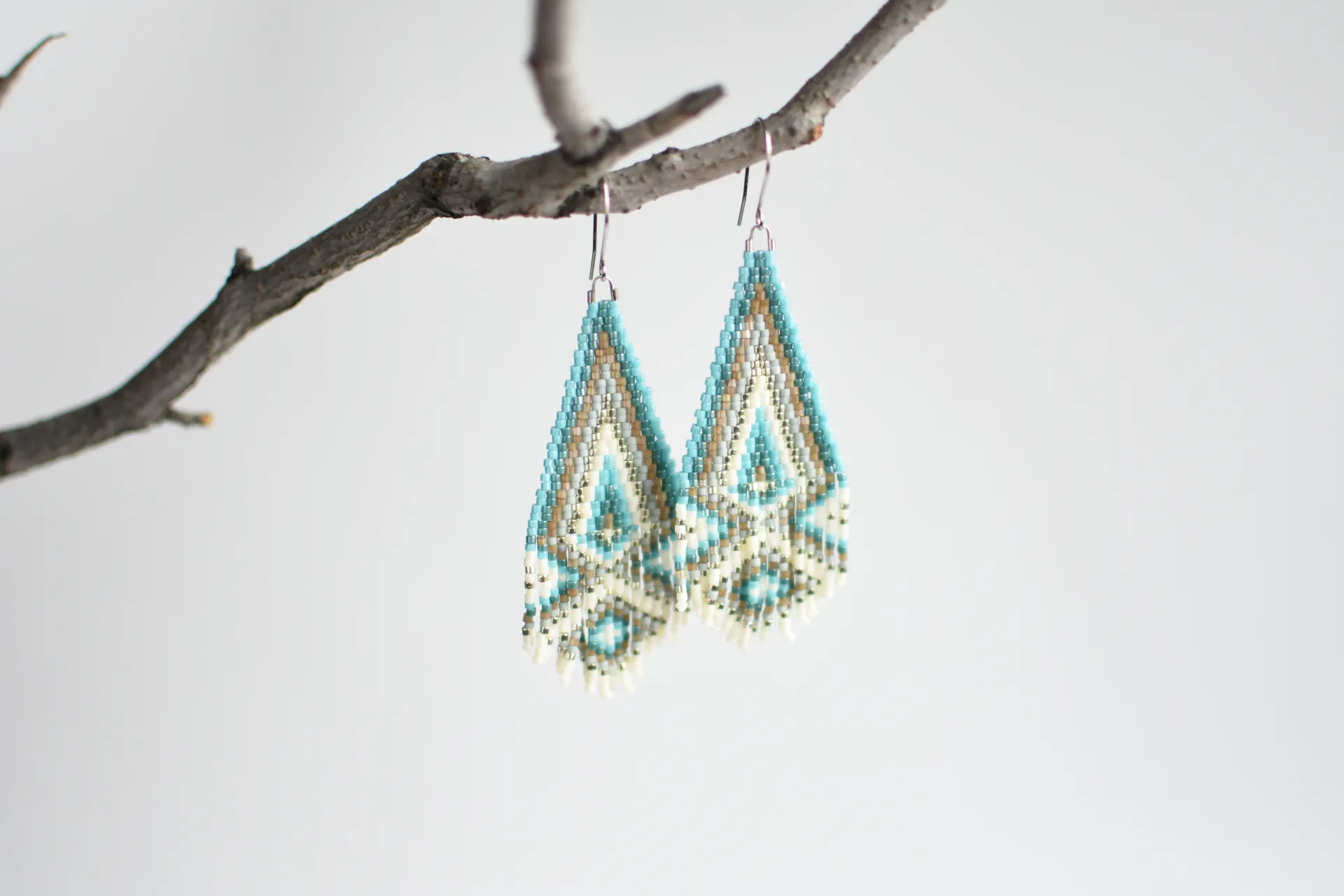 Лёгкие серьги с нежной бахромой в оттенках небесной бирюзы и молочного белого.