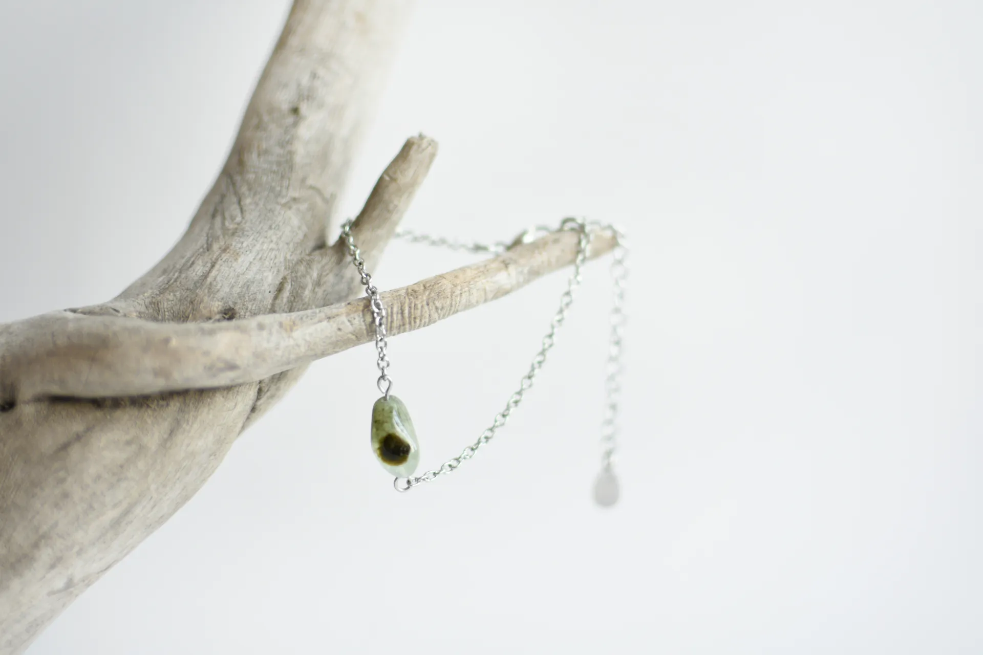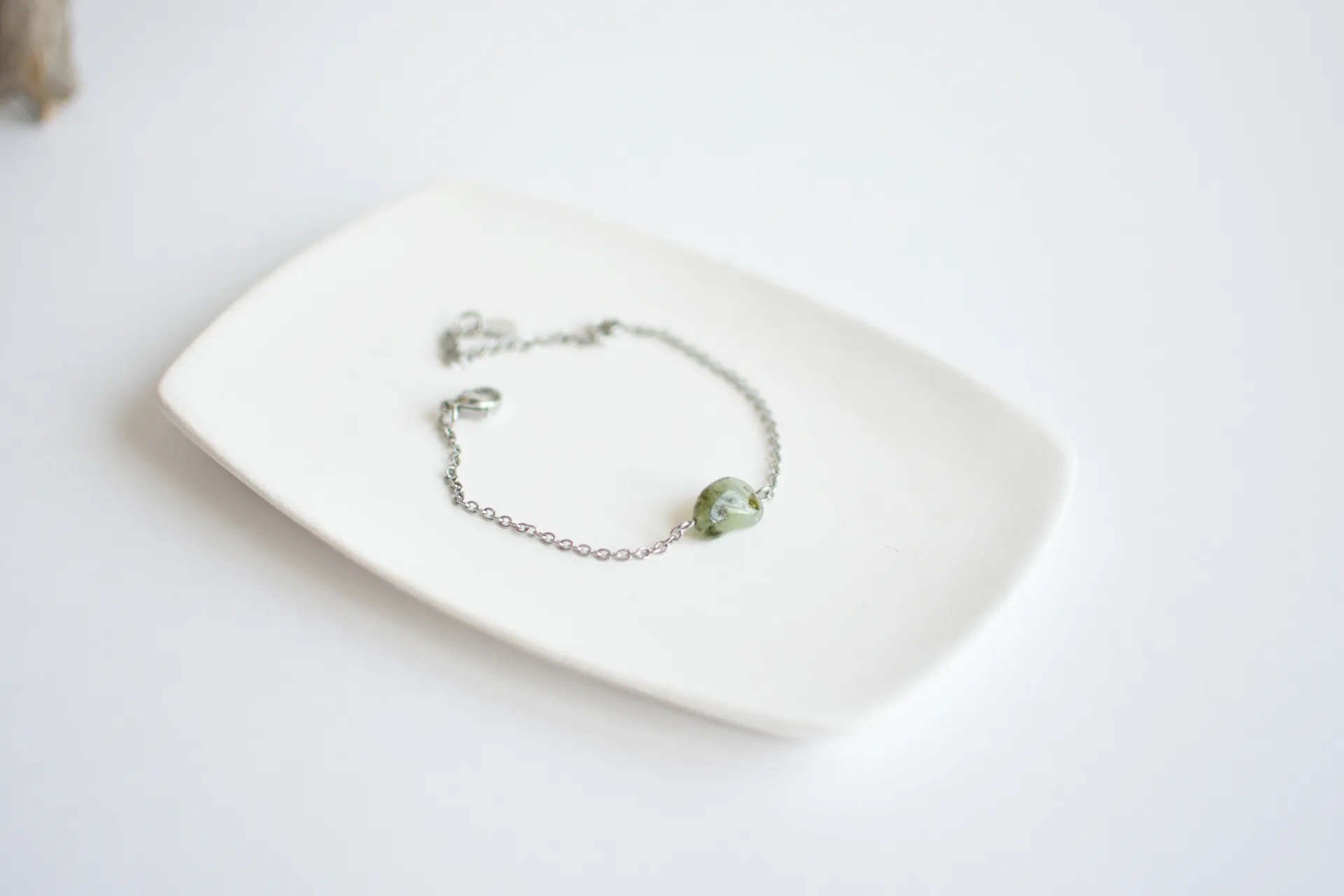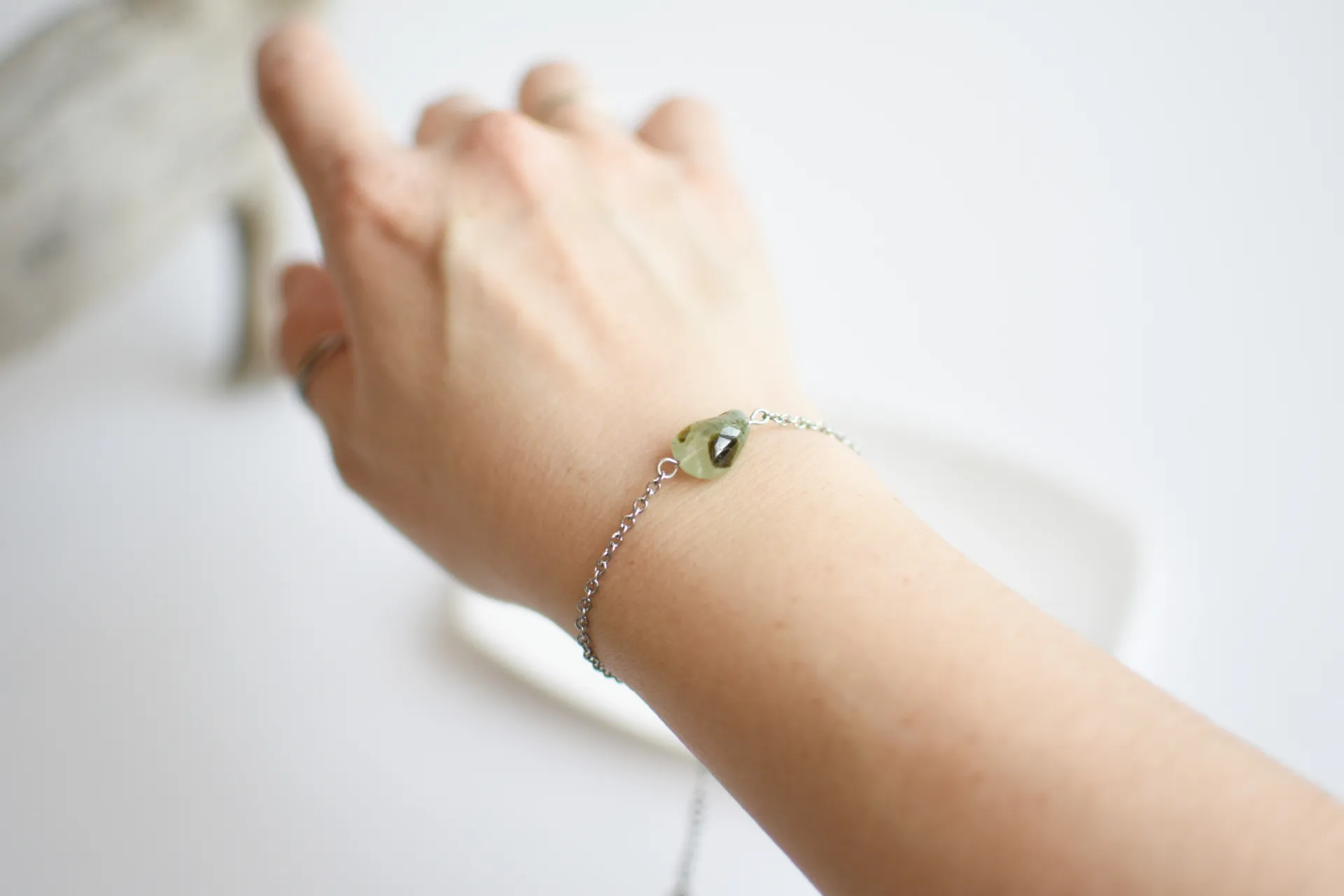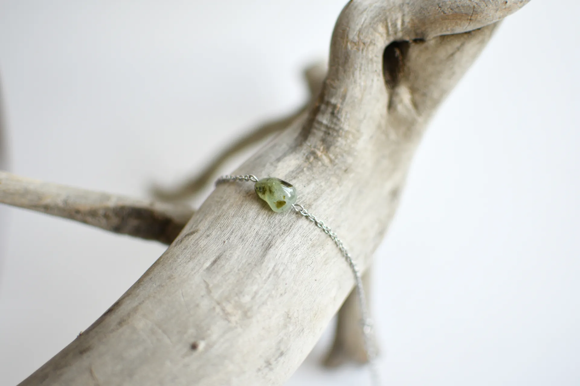 Браслет для любителей минимализма - одна акцентная бусина пренита на тонкой цепочке.