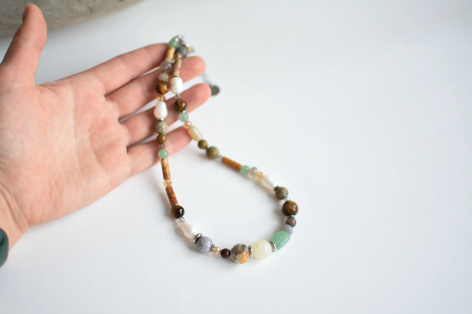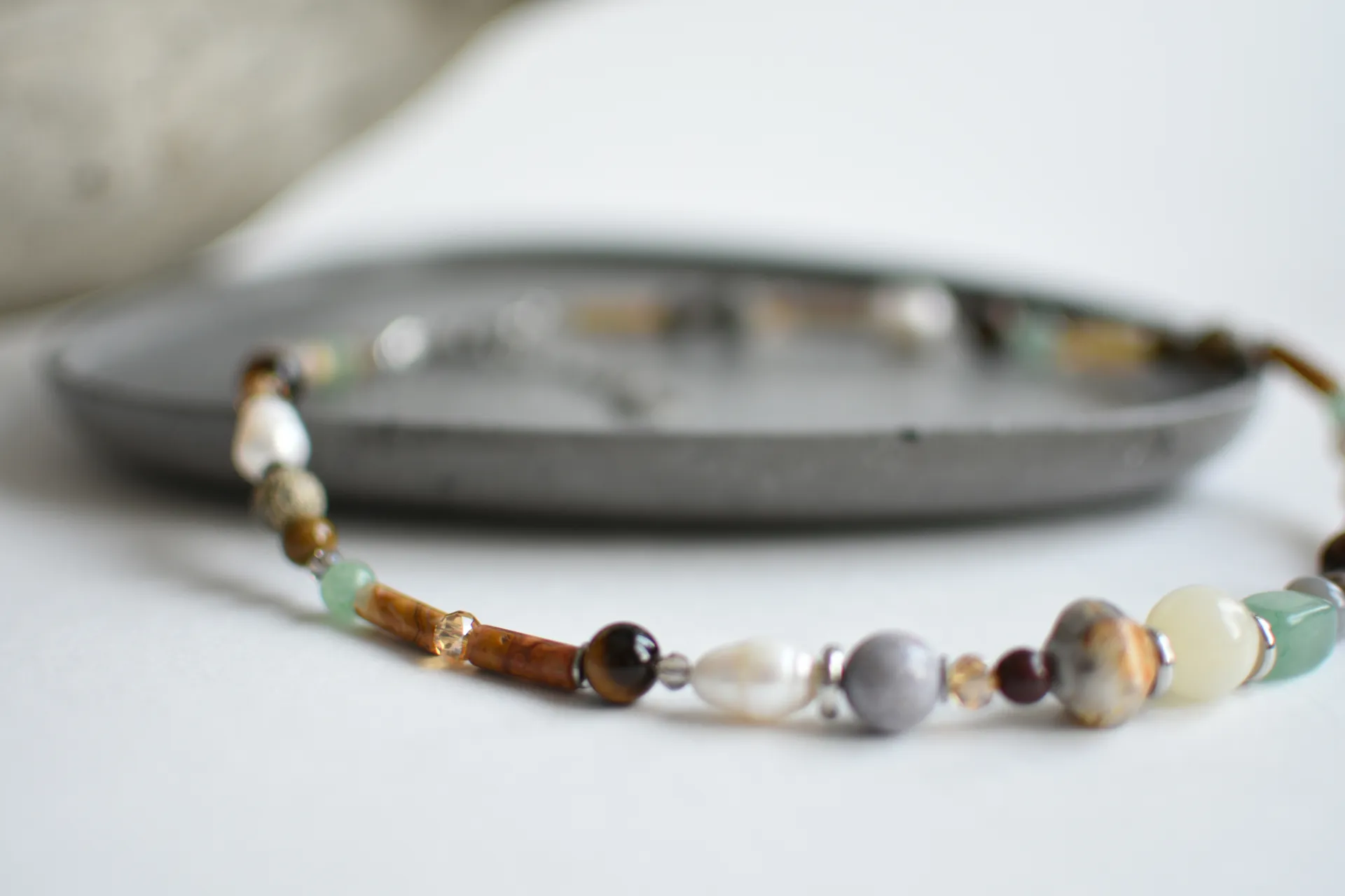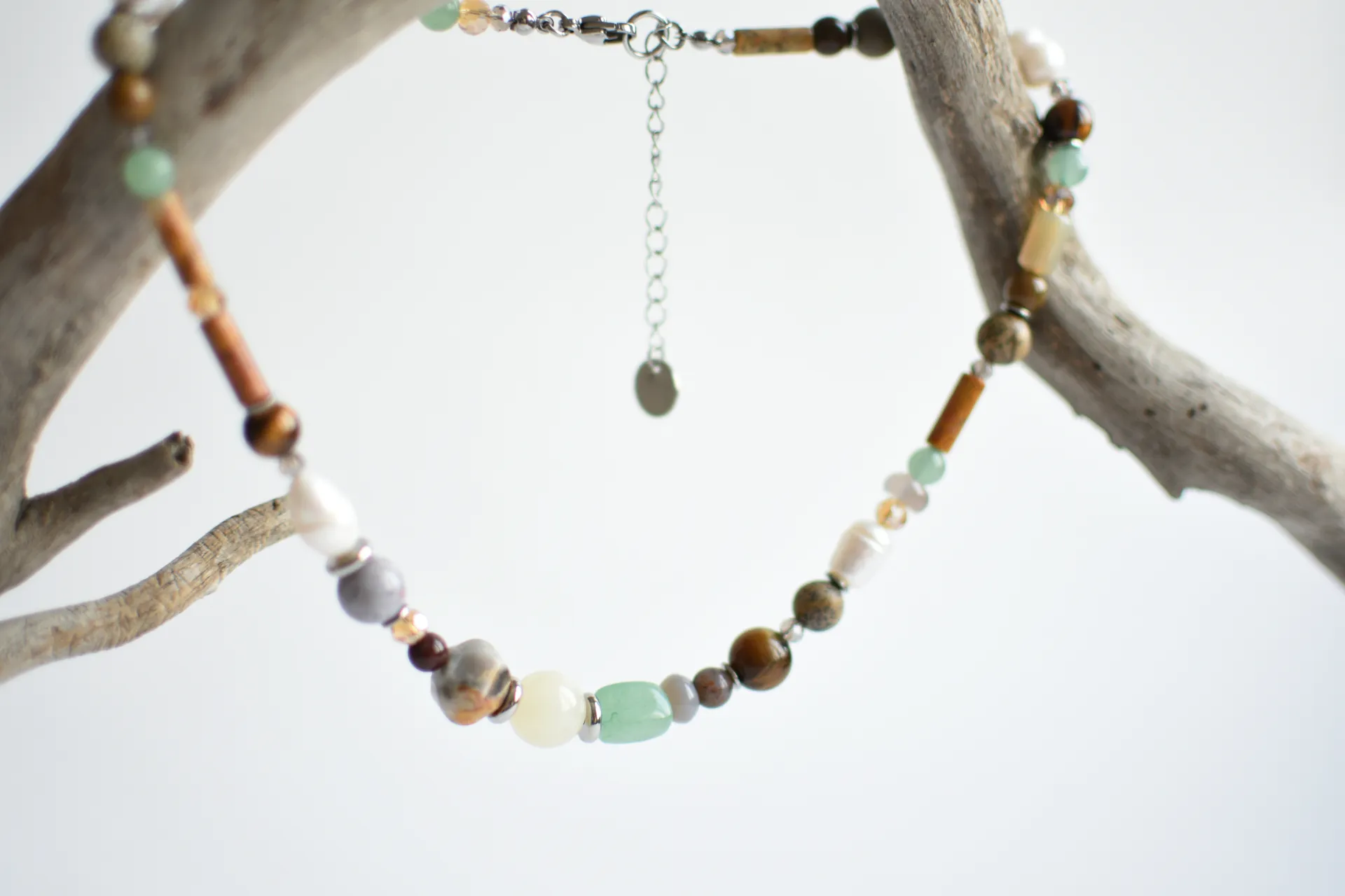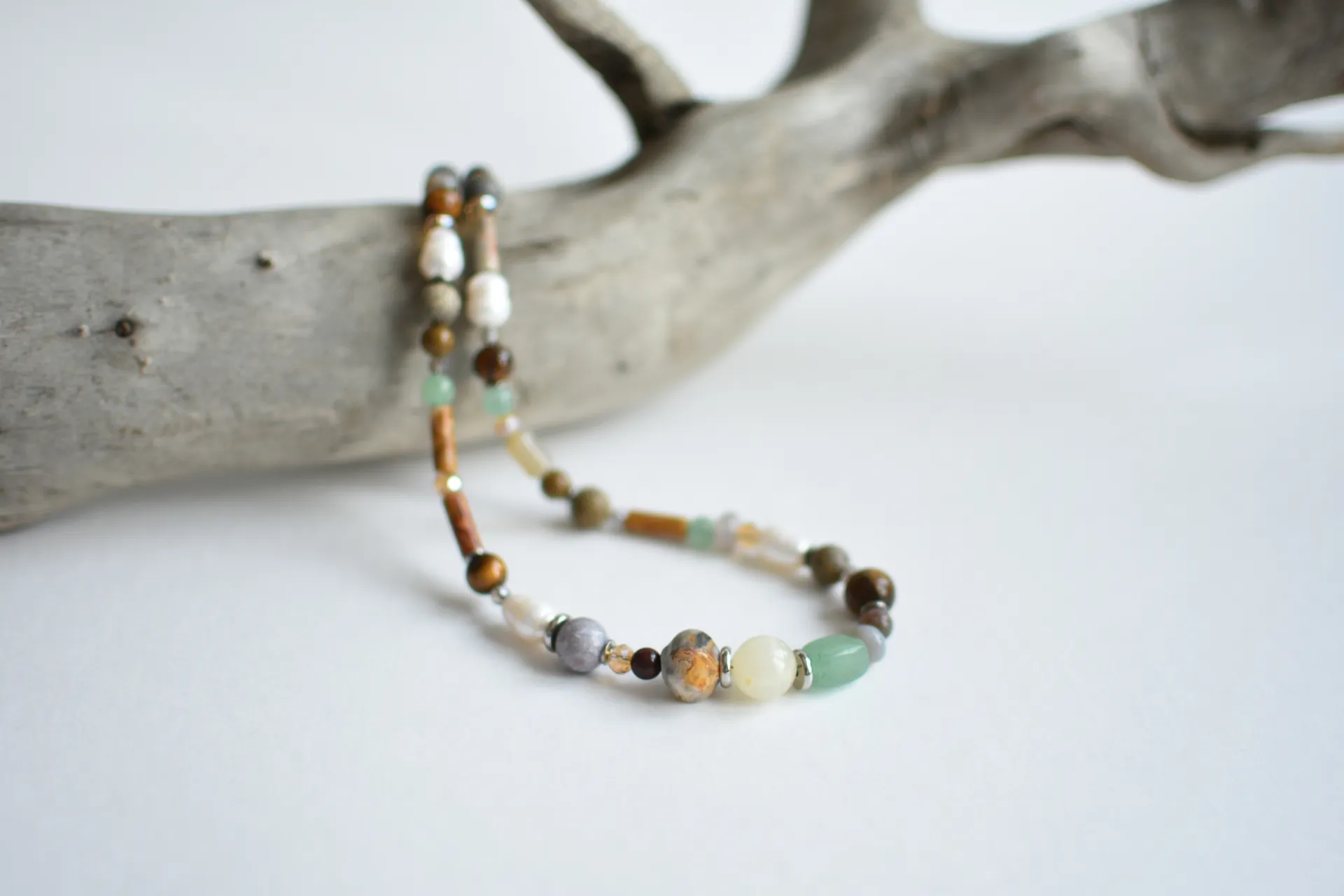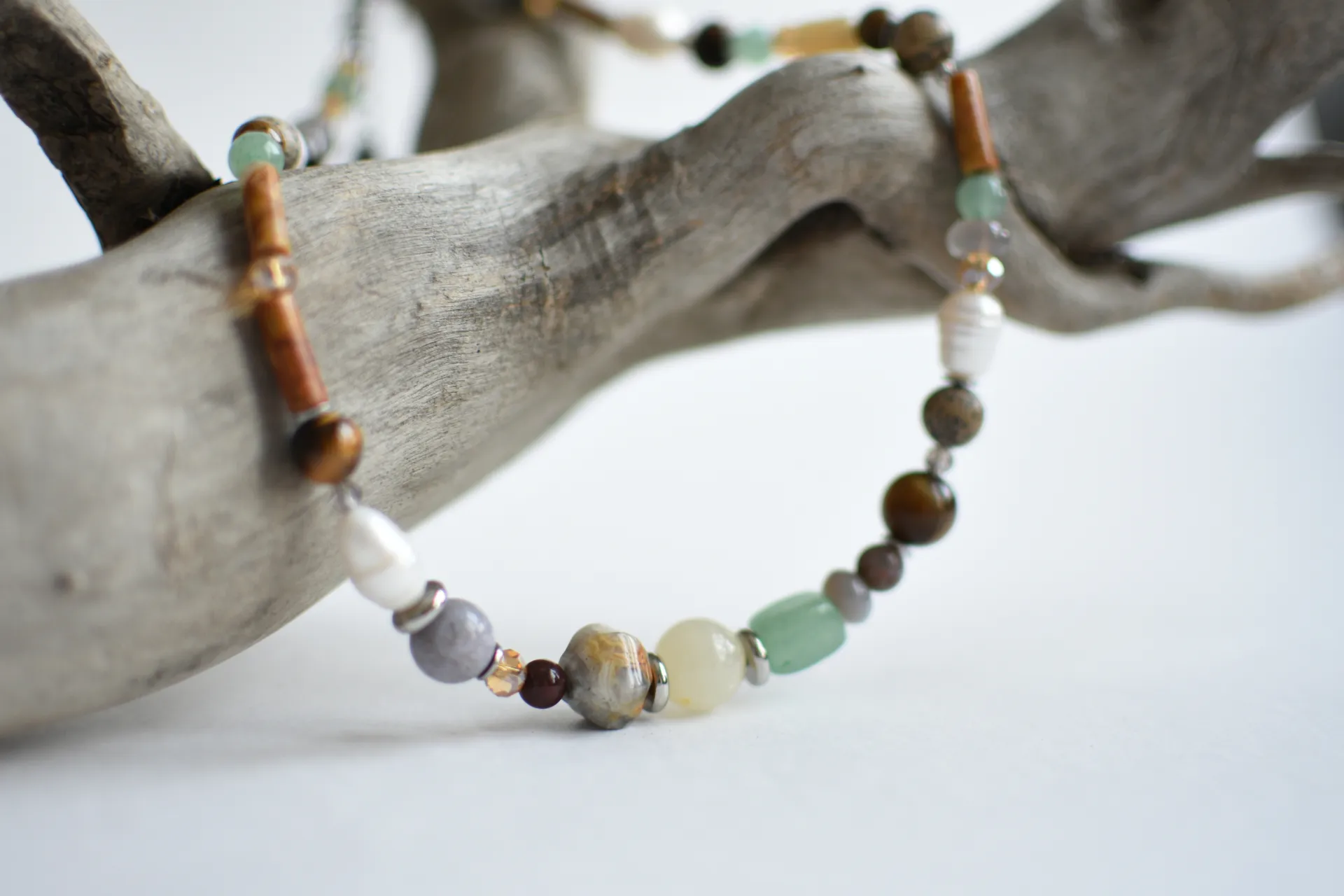 Браслет в природных тонах с различными камнями.