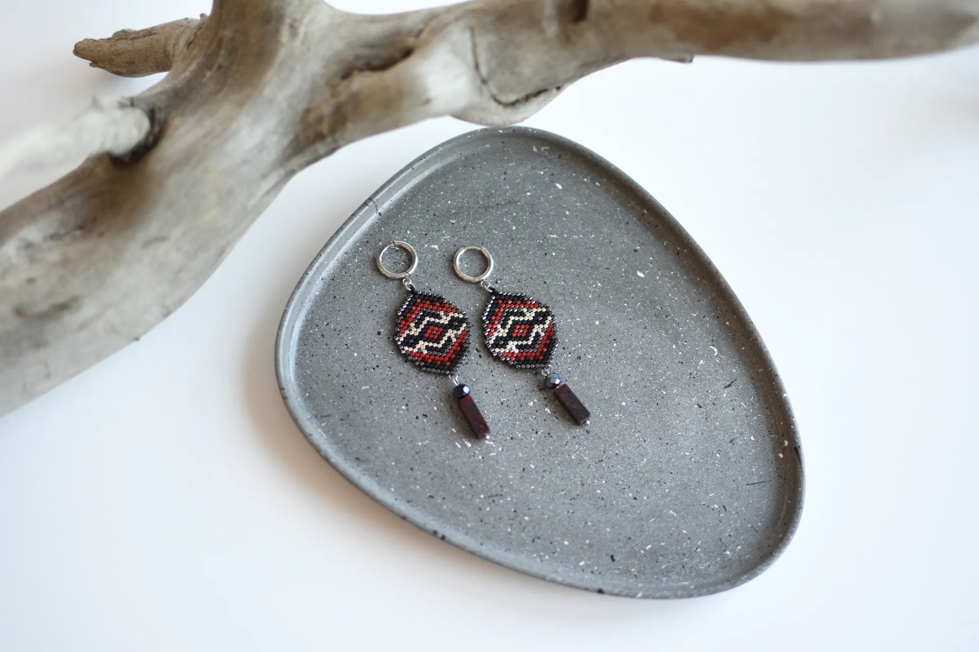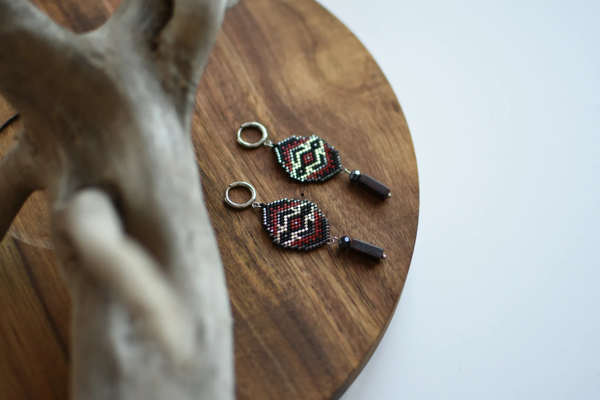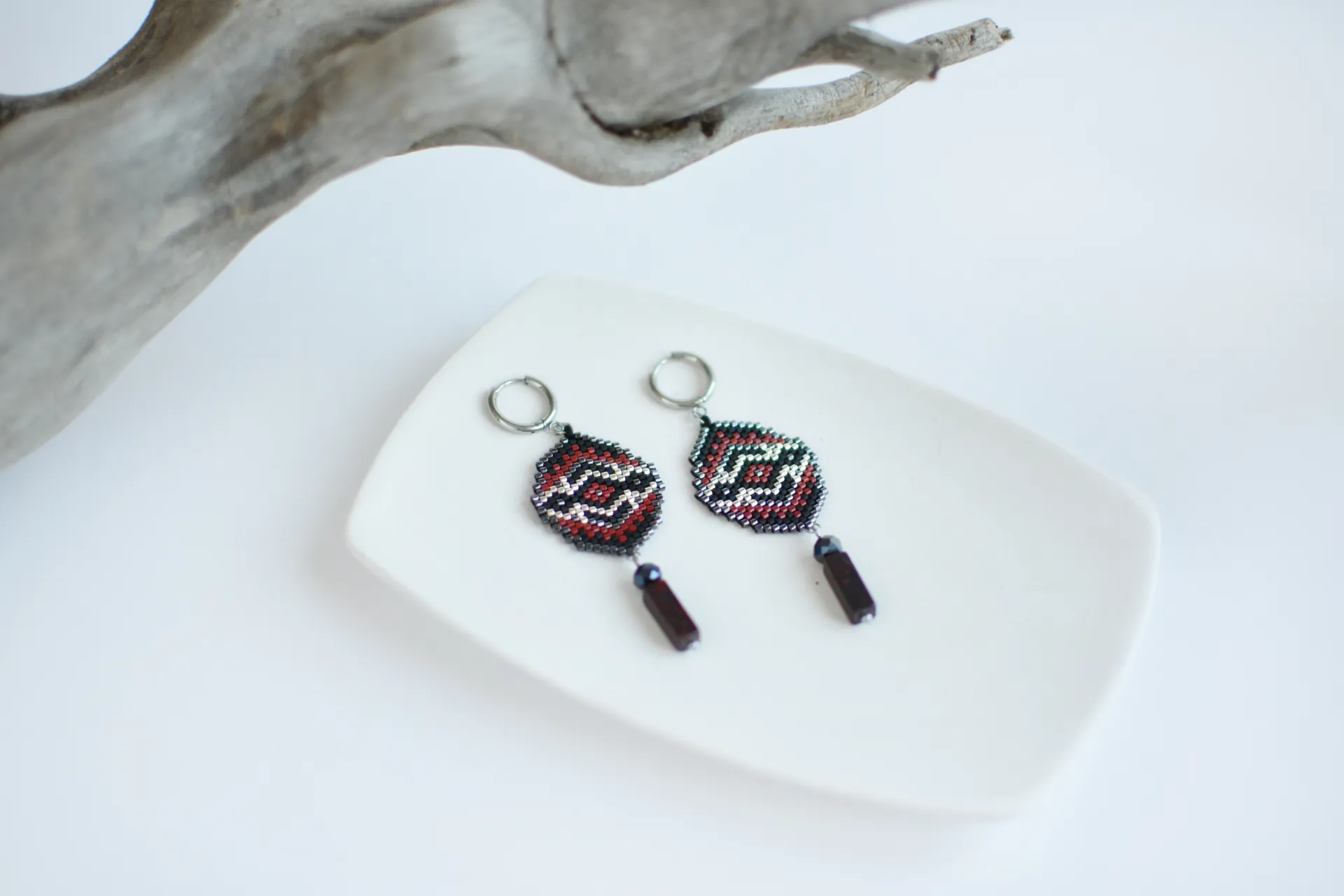 Серьги в тёмный цветах с тёмно-красной яшмой.