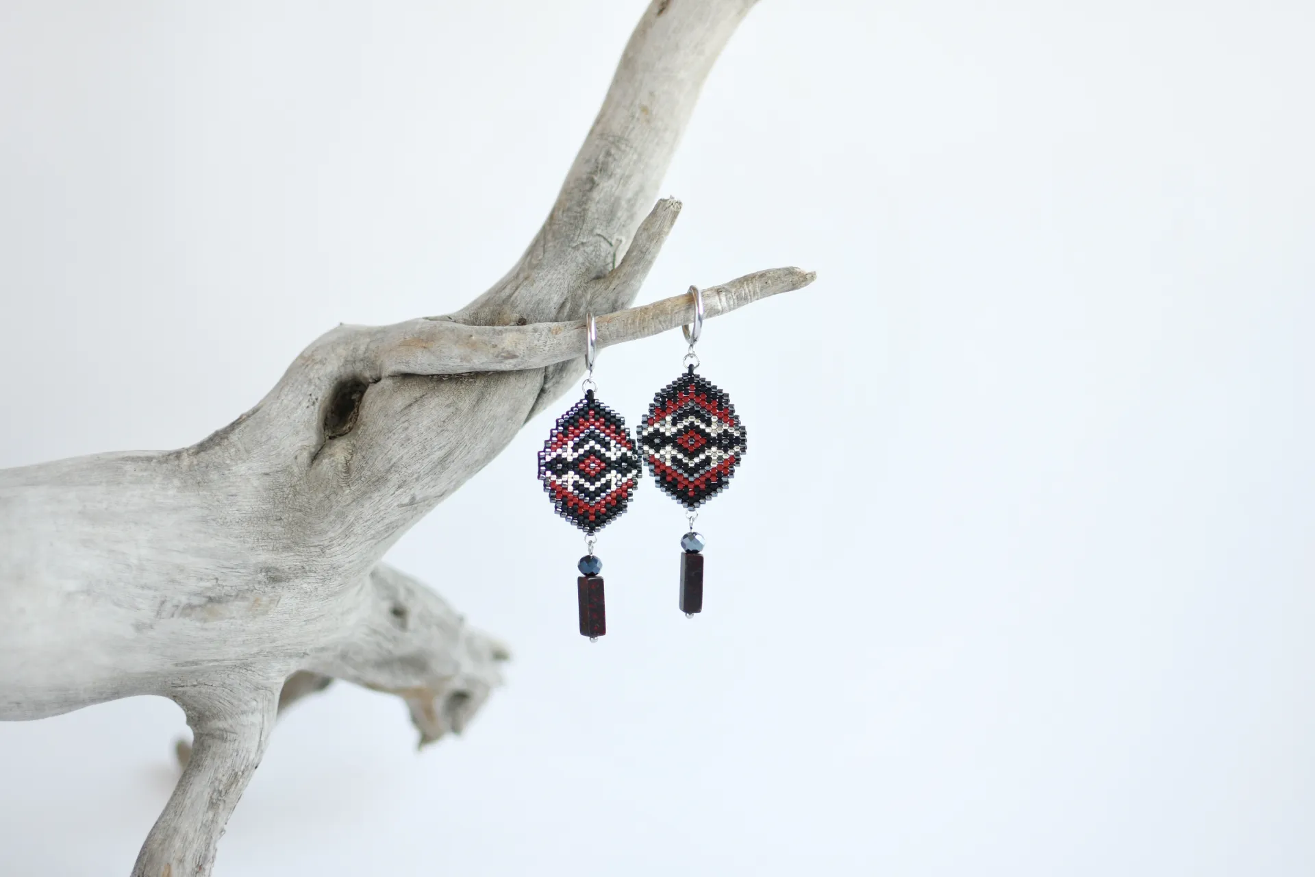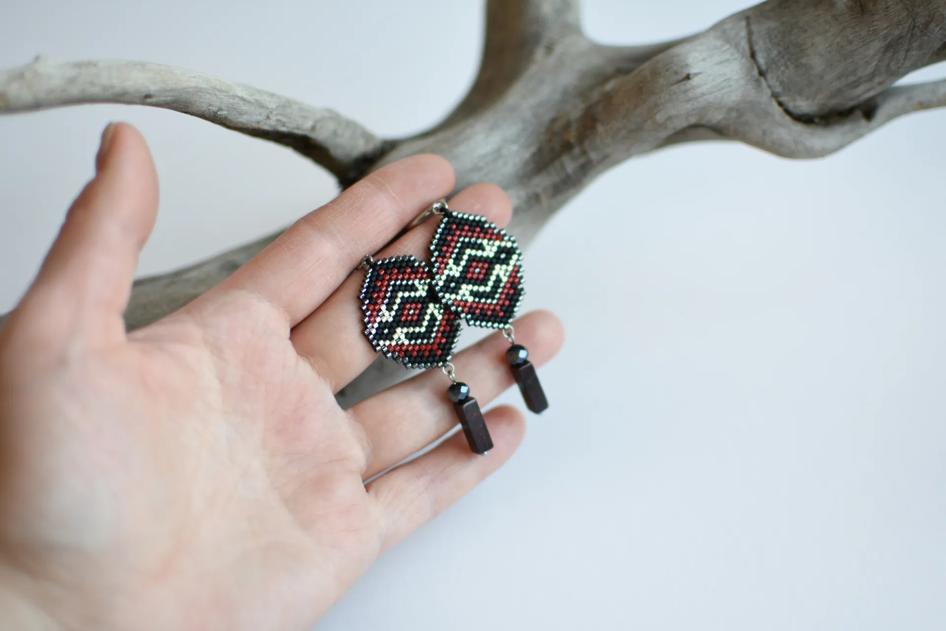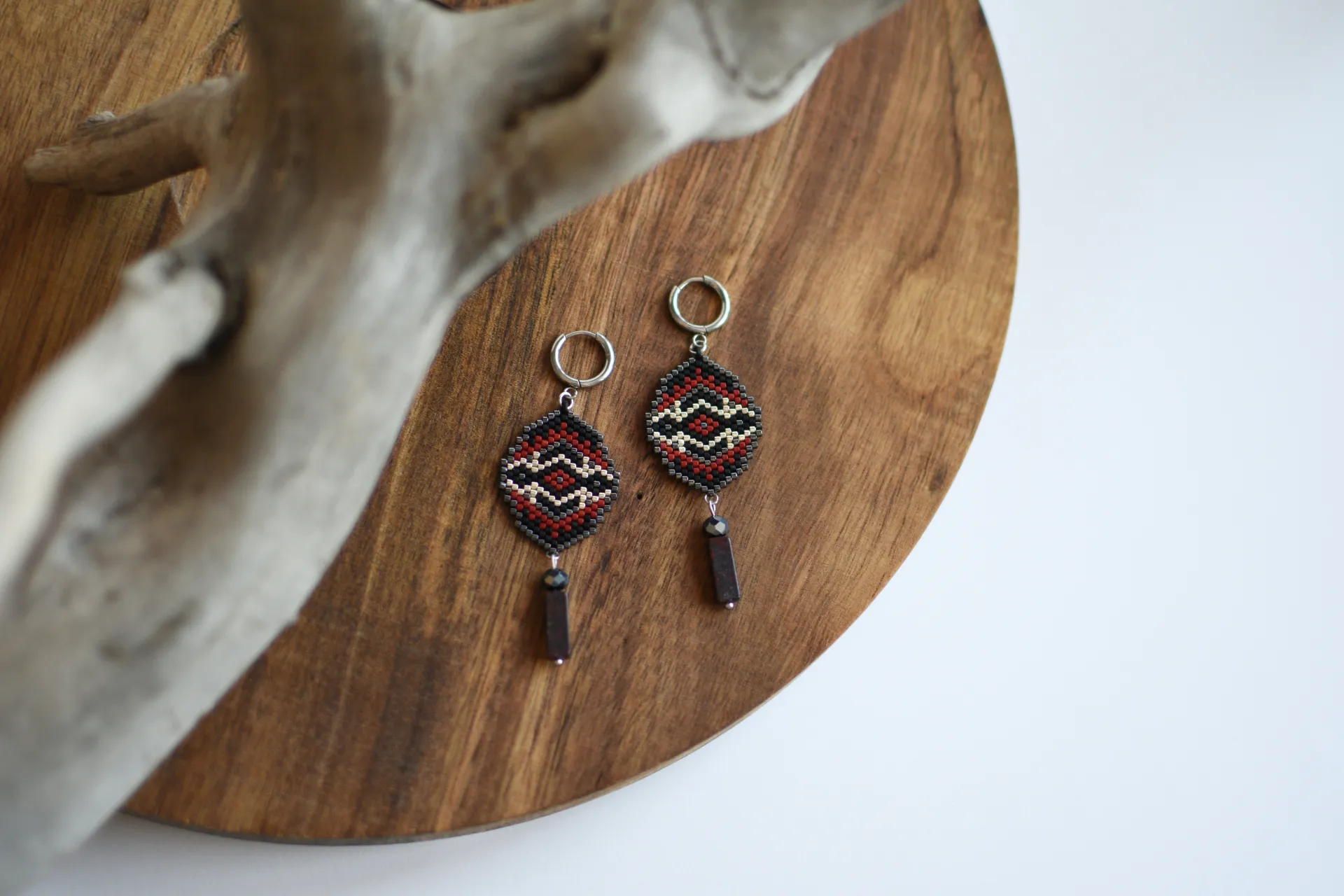 Серьги в тёмный цветах с тёмно-красной яшмой.