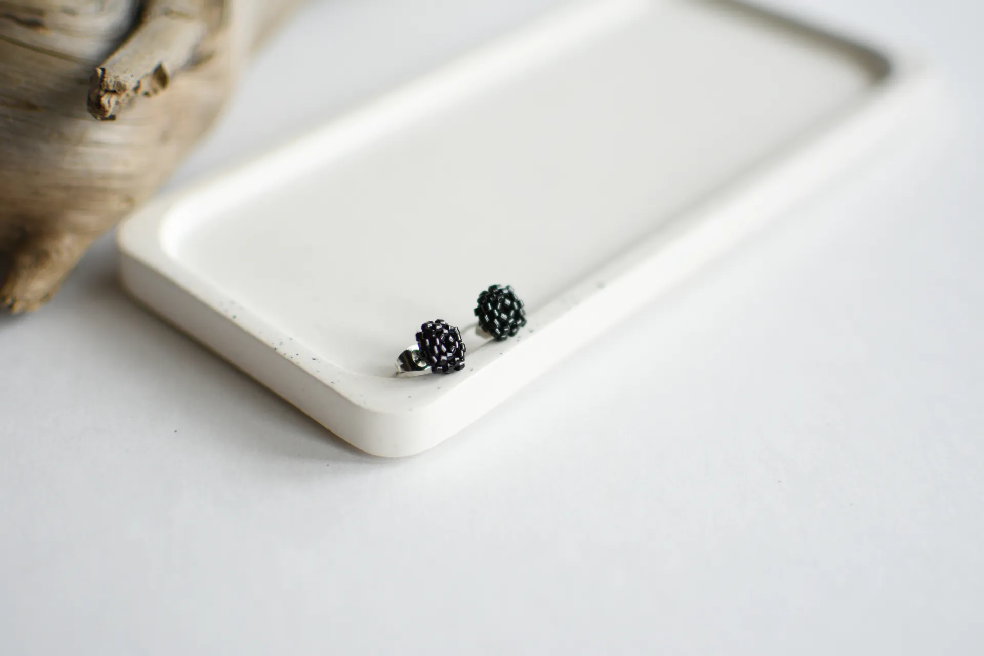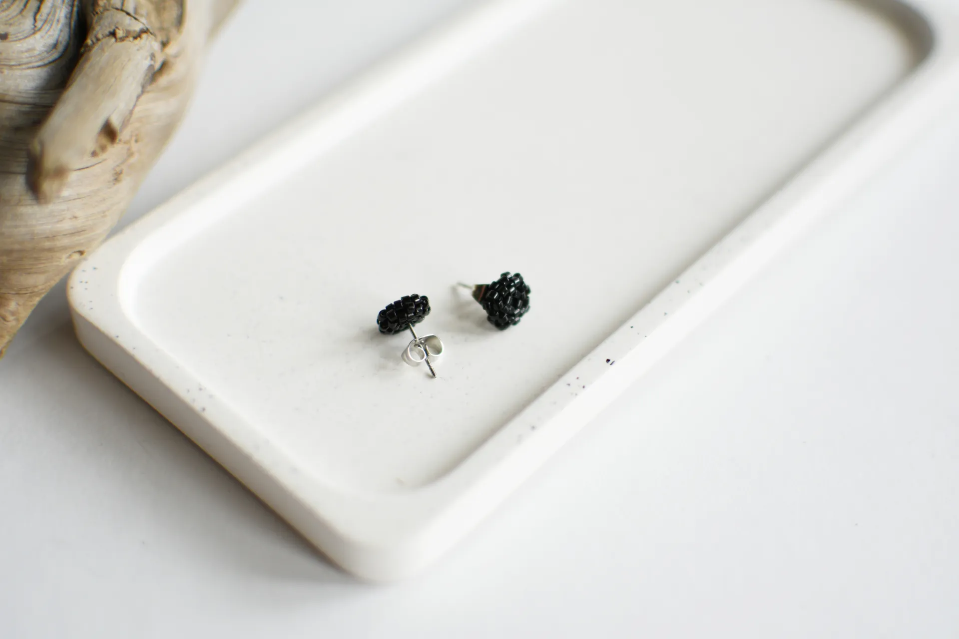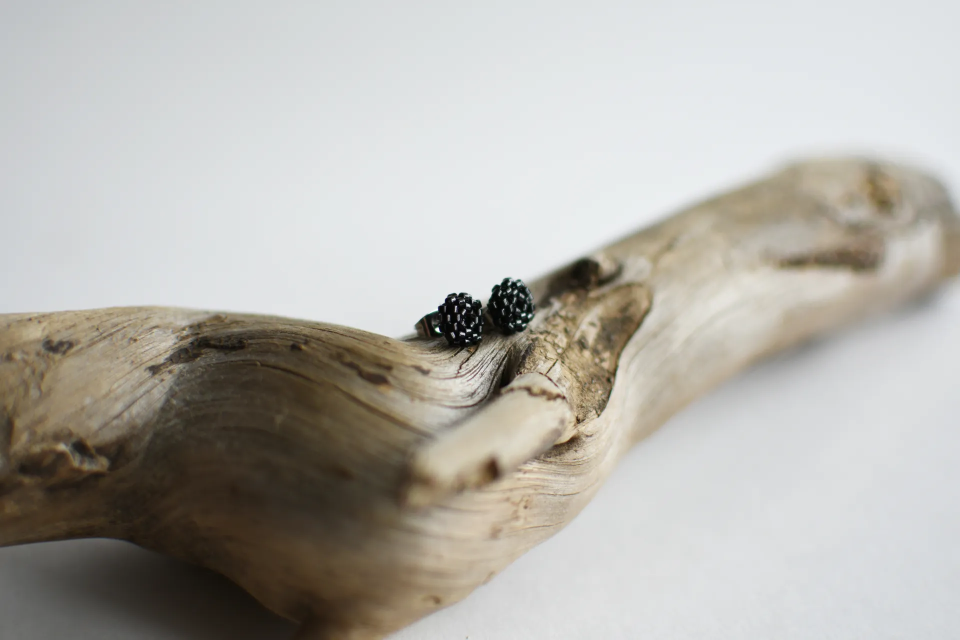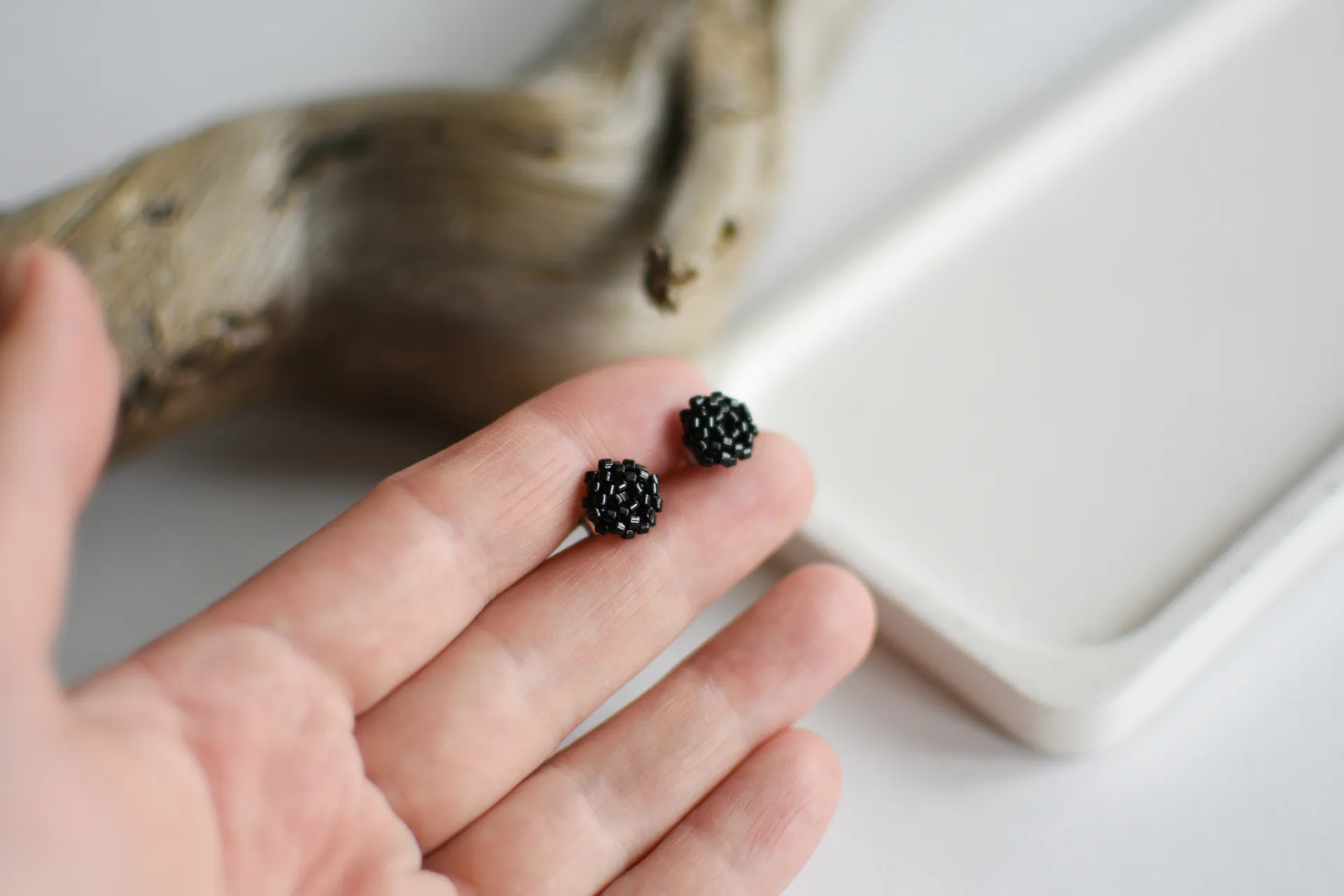 Миниатюрные серьги пуссеты из черного блестящего бисера.