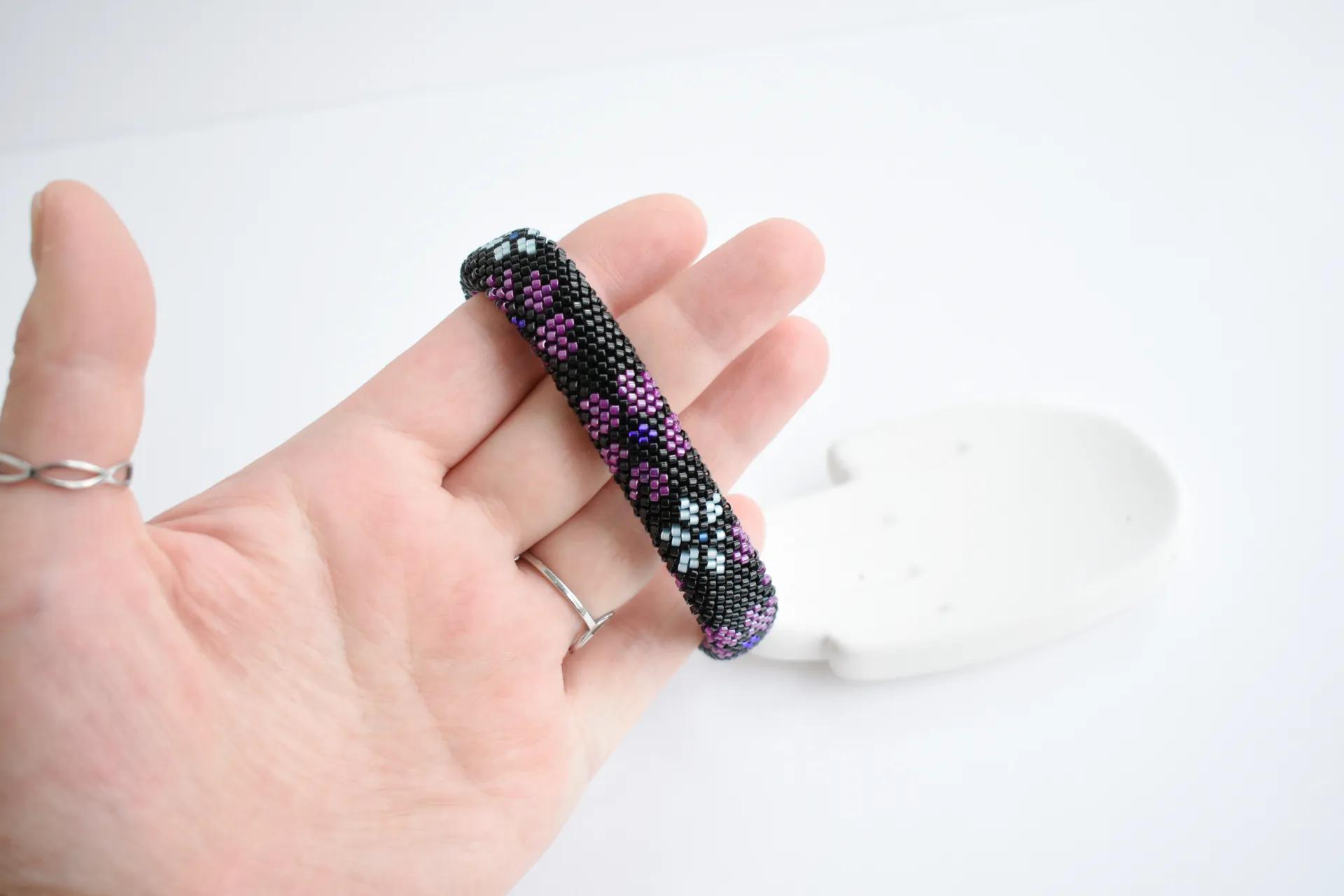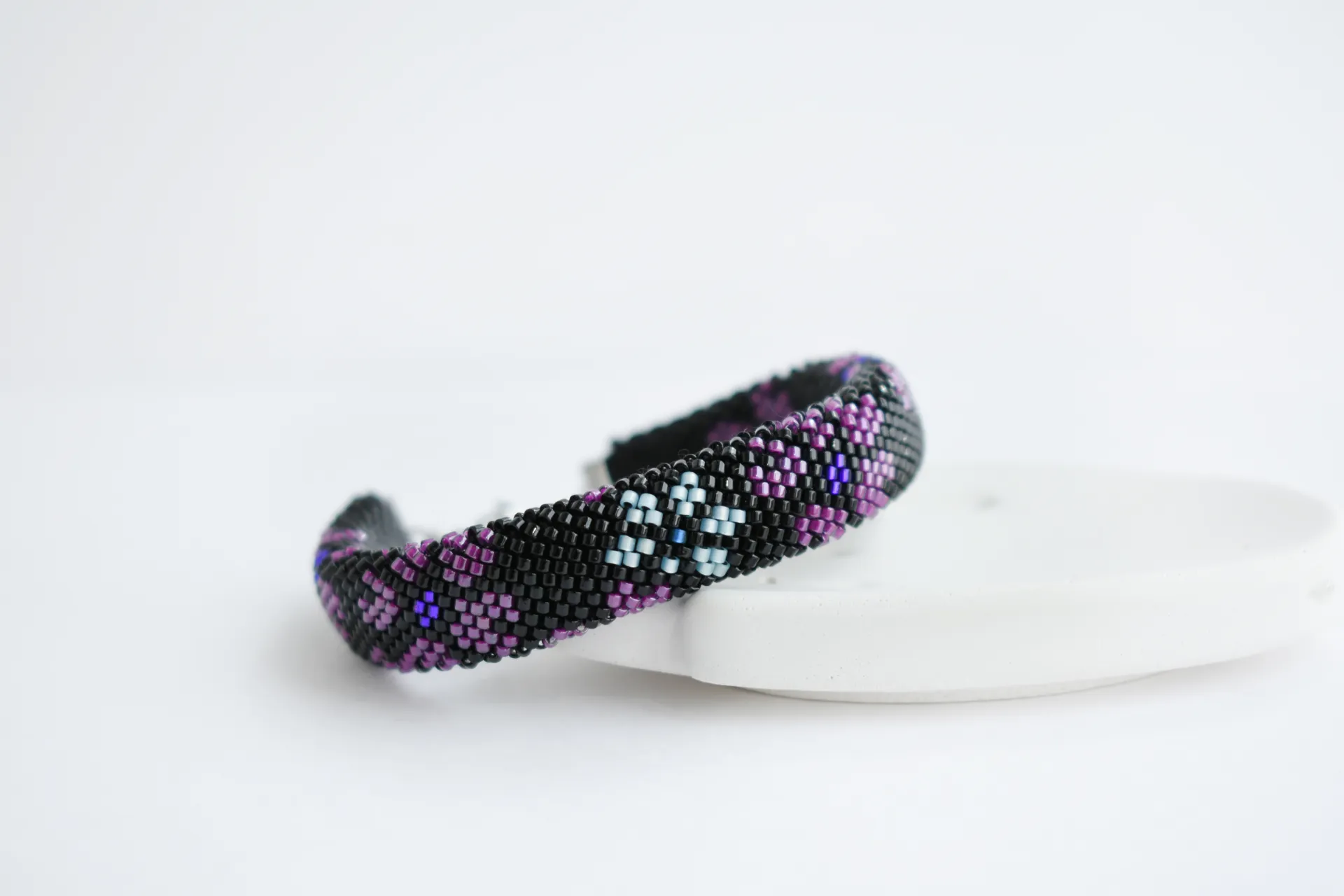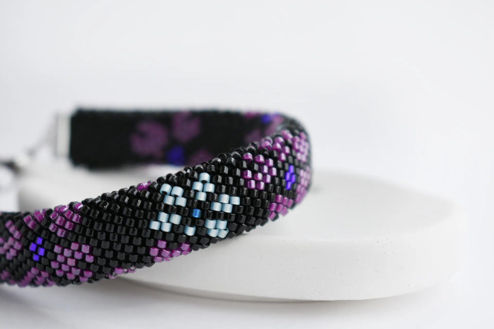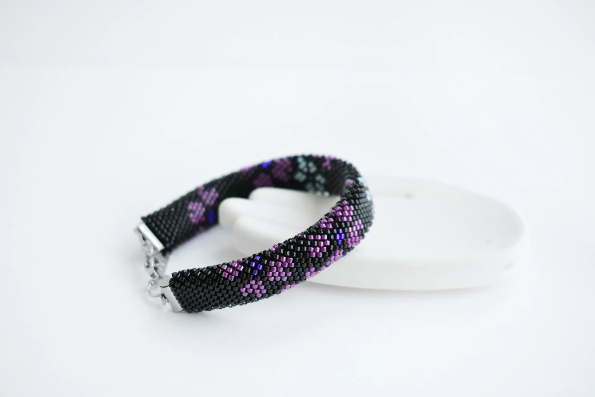 Стильный браслет с рисунком фиолетовых и голубых цветов