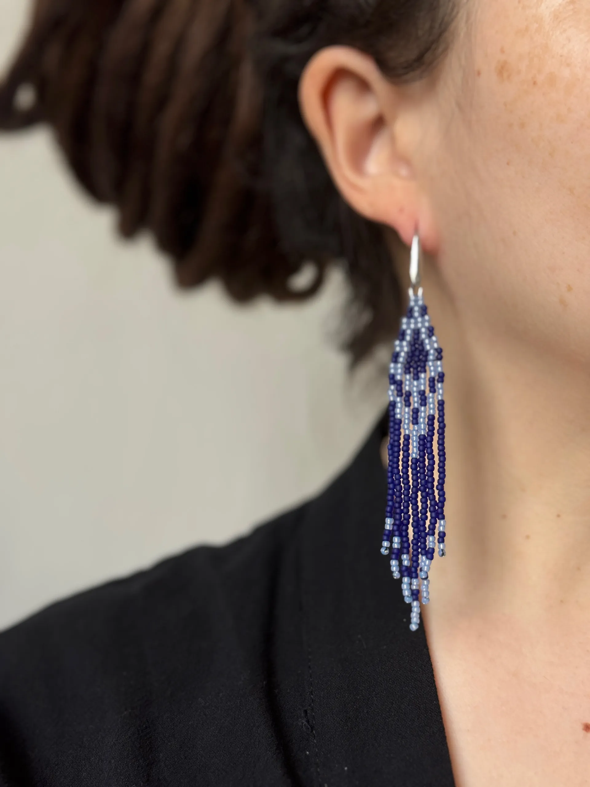 Изящный плетёный браслет из бисера молочно-голубого цвета.