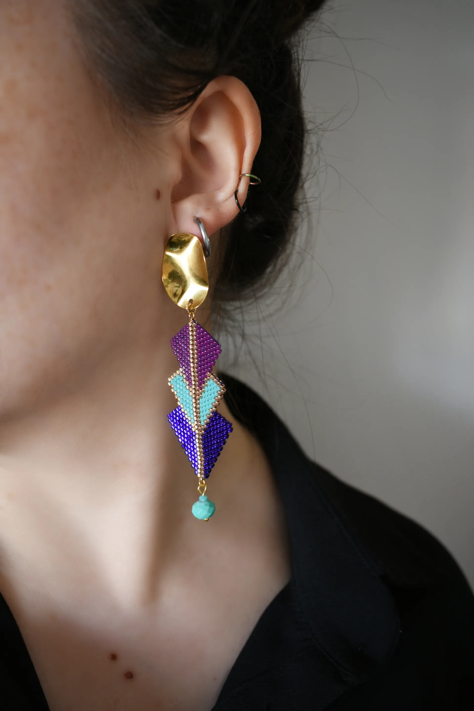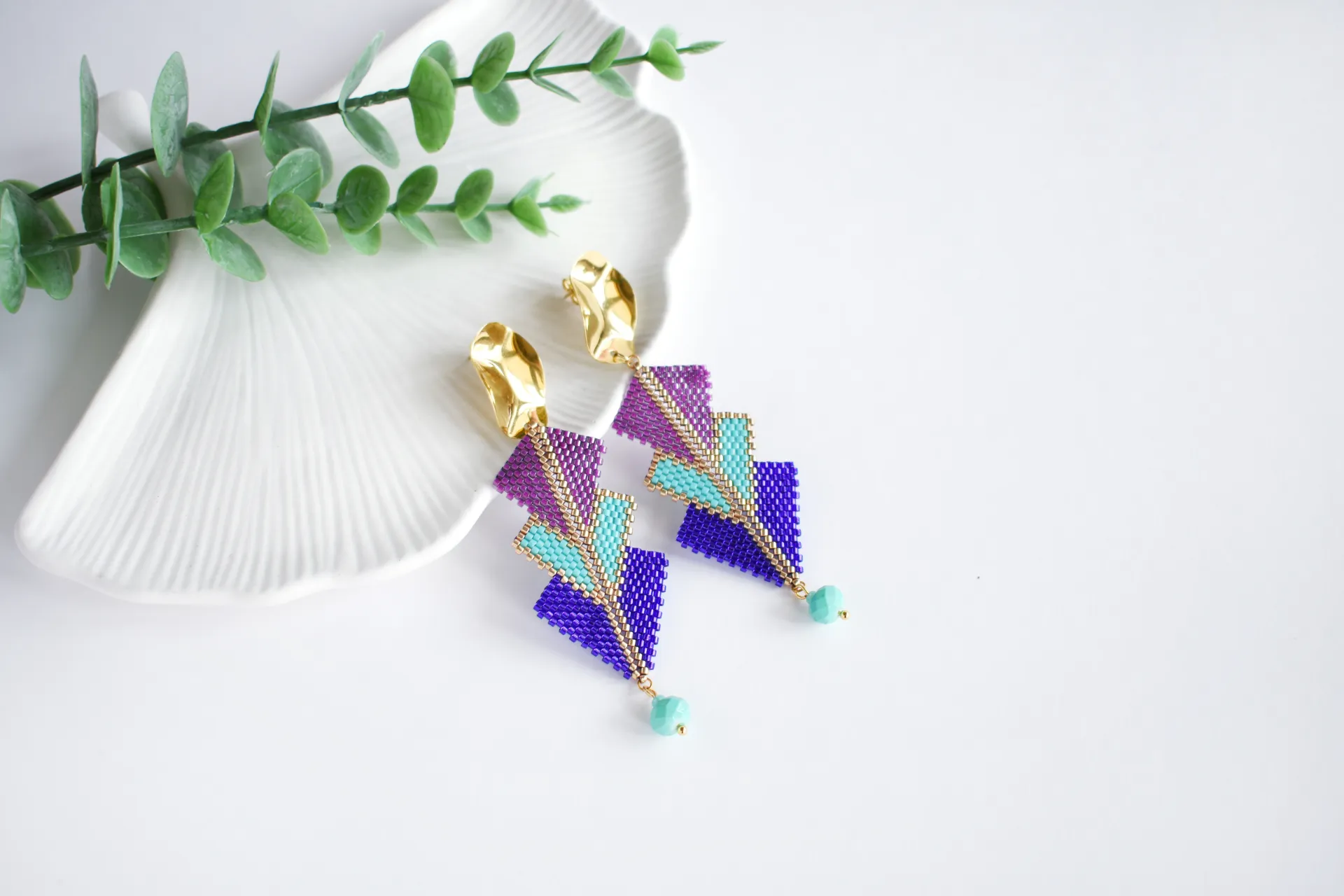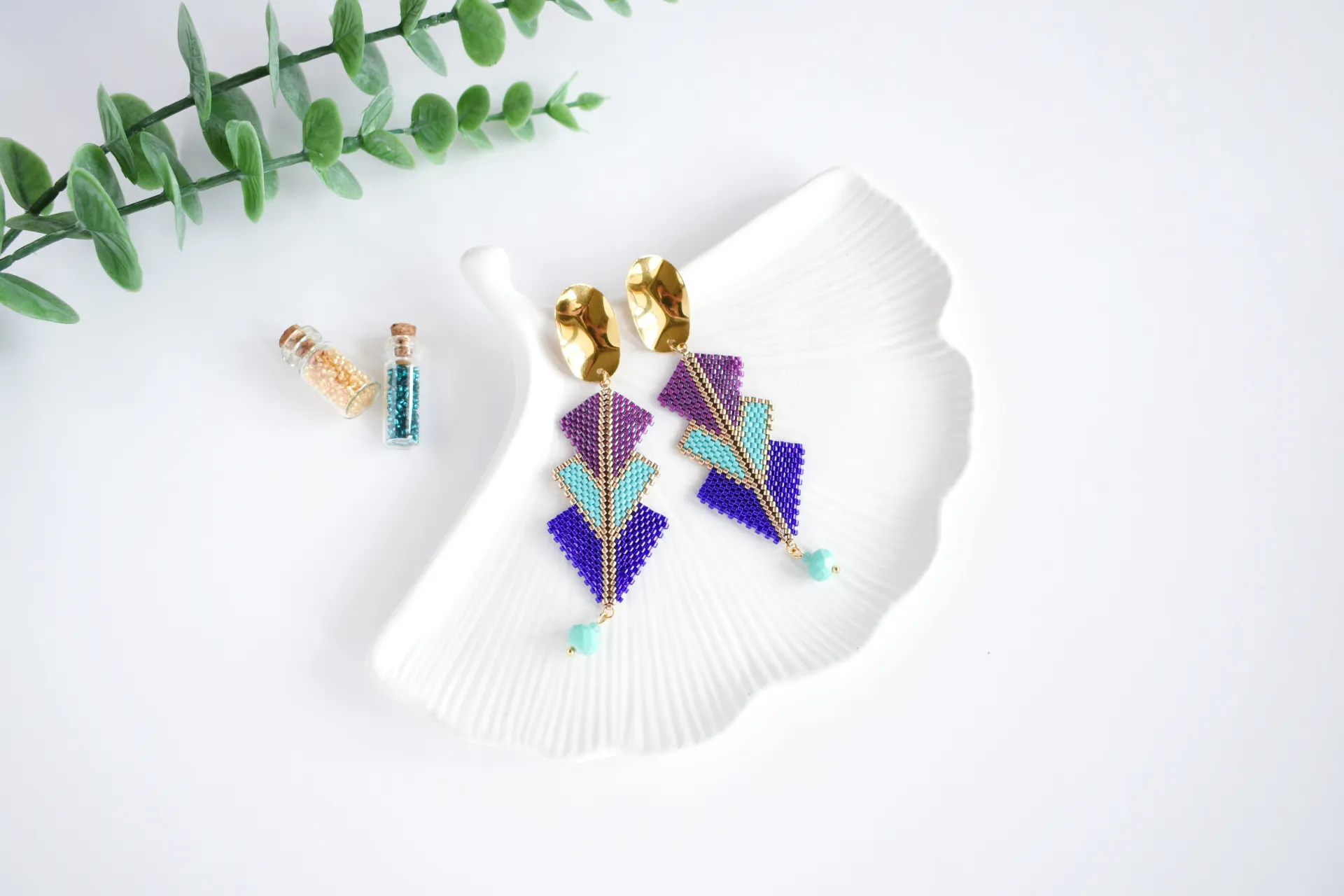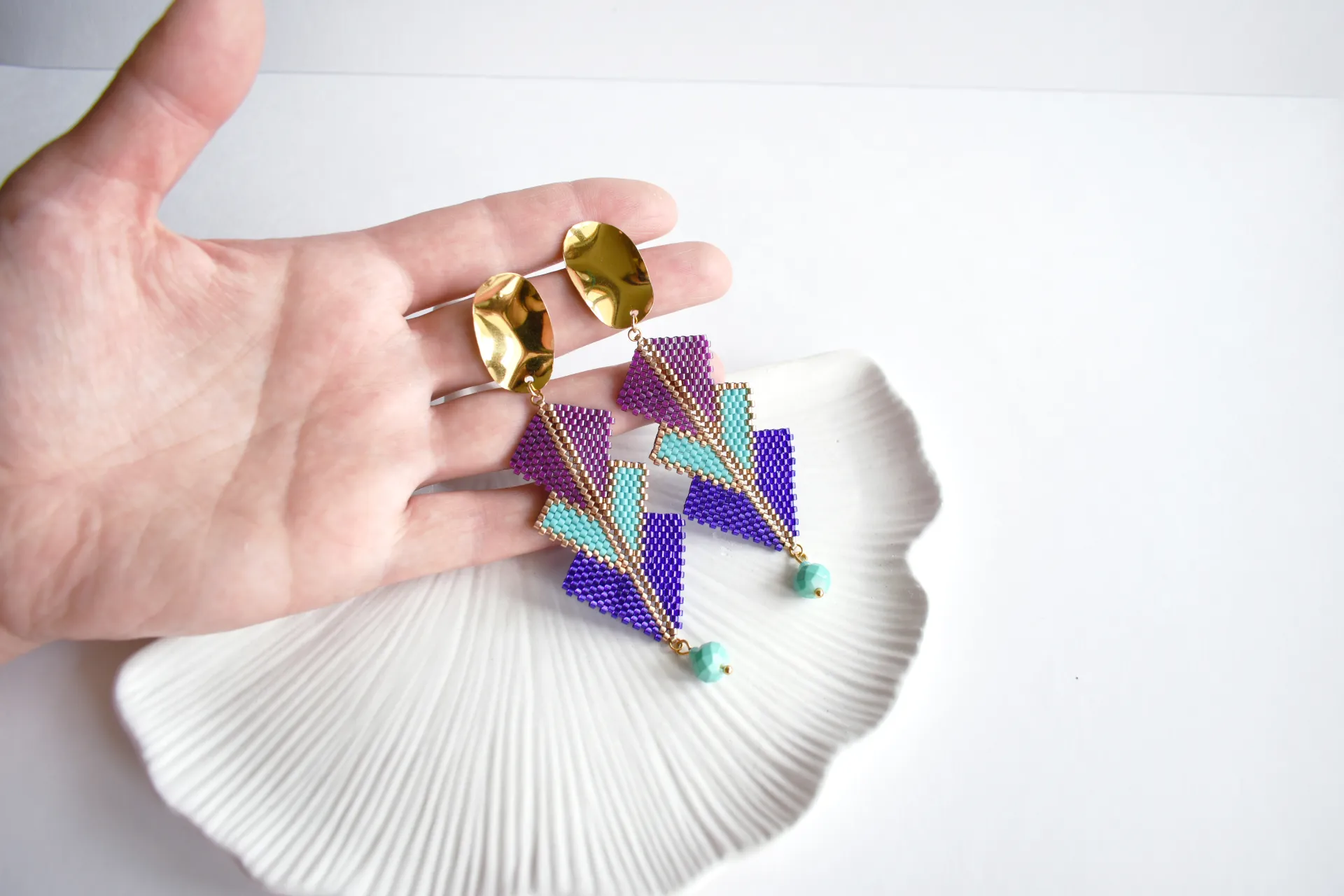 Яркие серьги из японского цилиндрического бисера и нержавеющей стали.