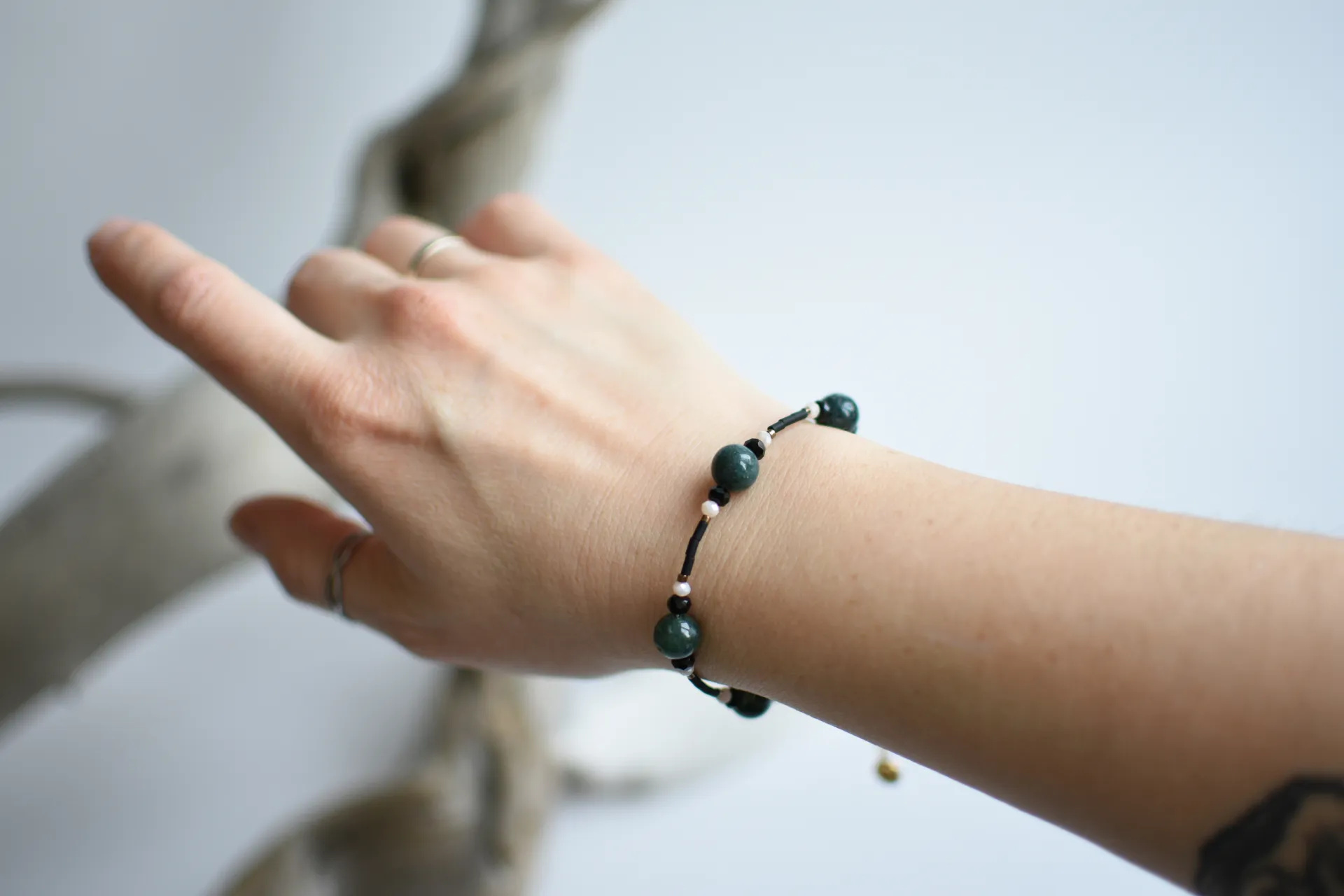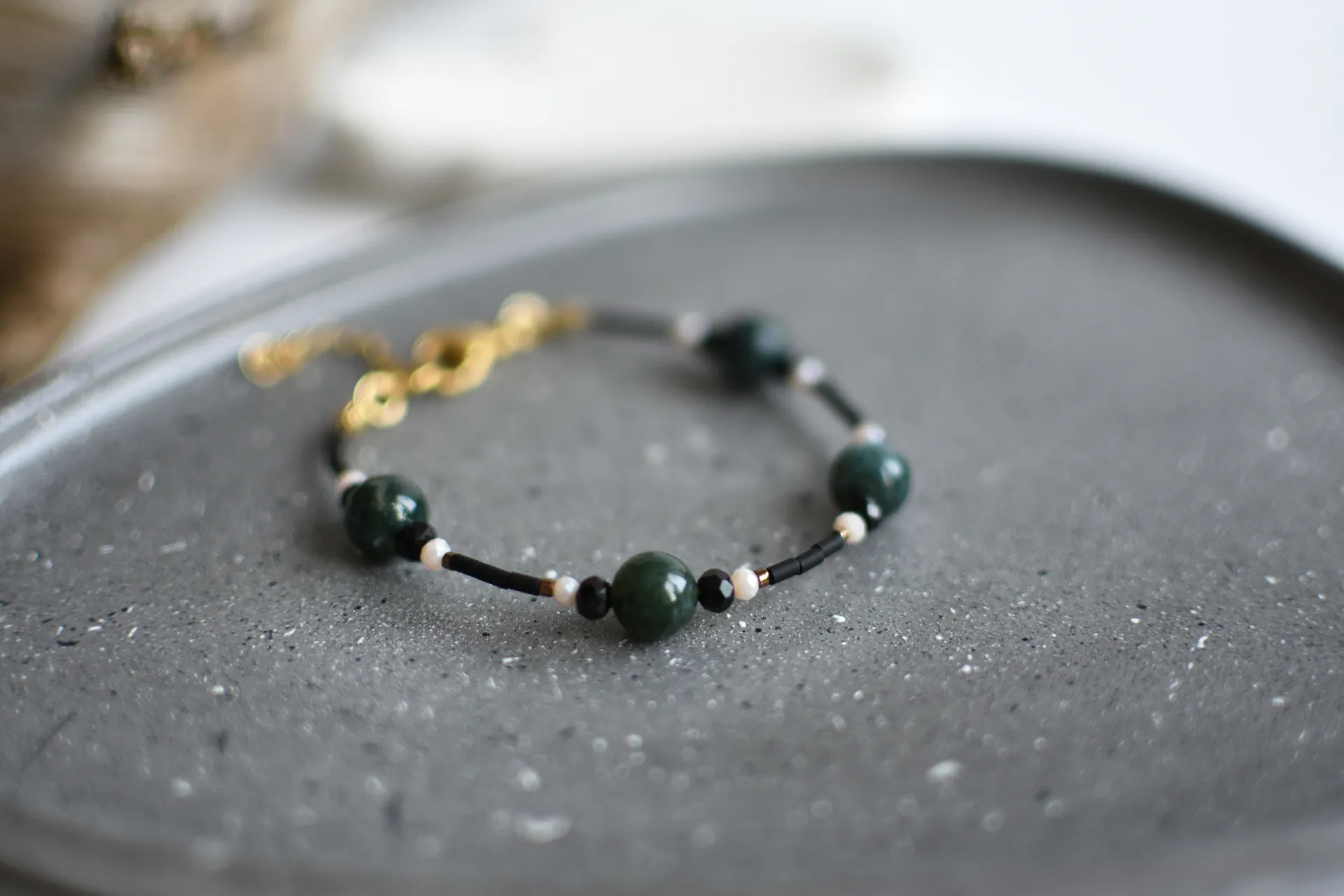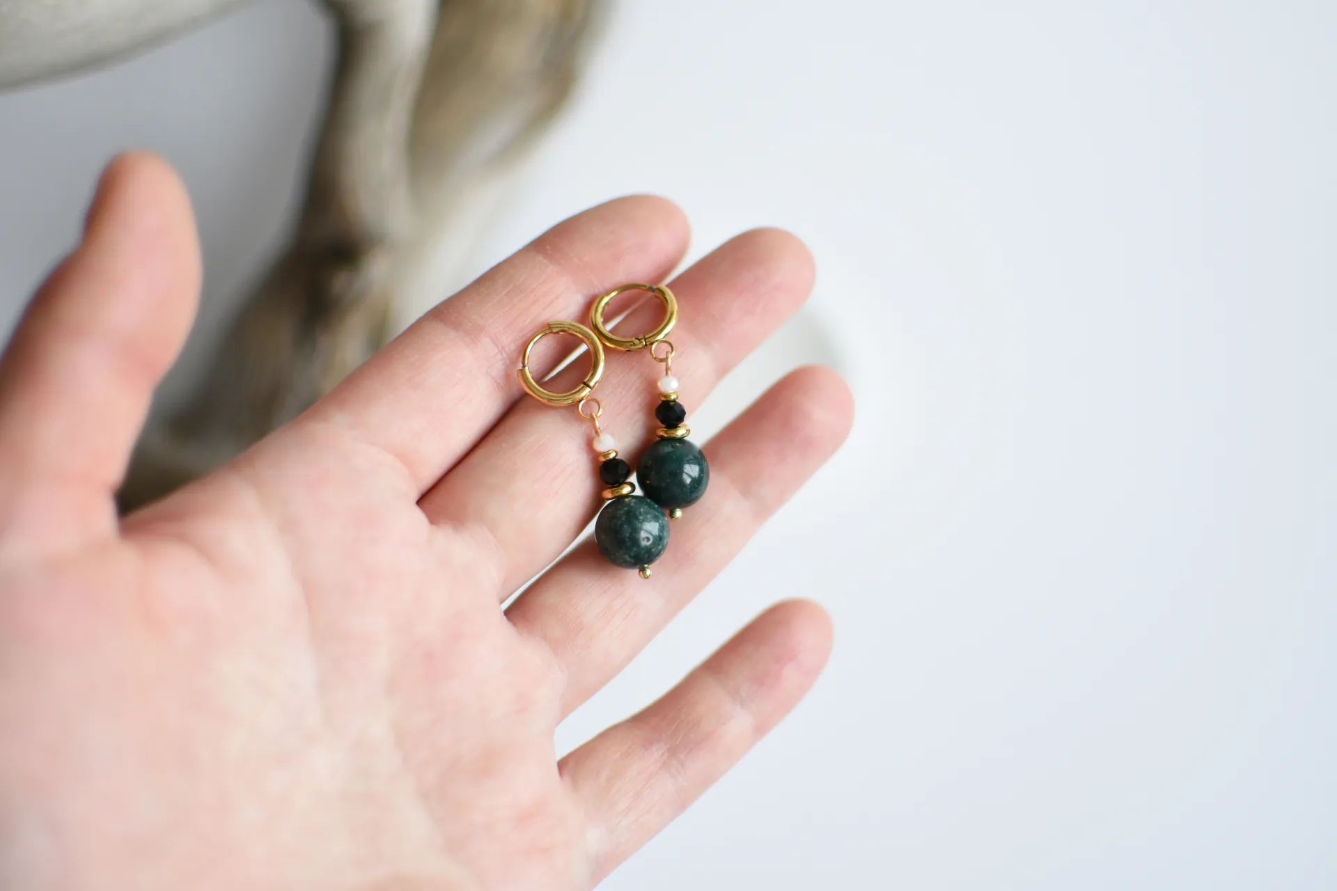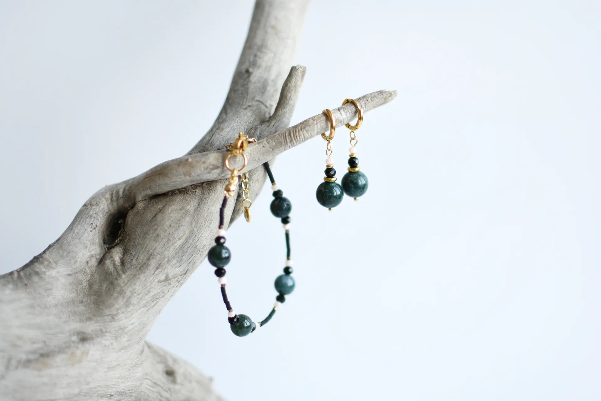 Универсальный комплект из небольших серёжек и браслета с бусинами халцедона.