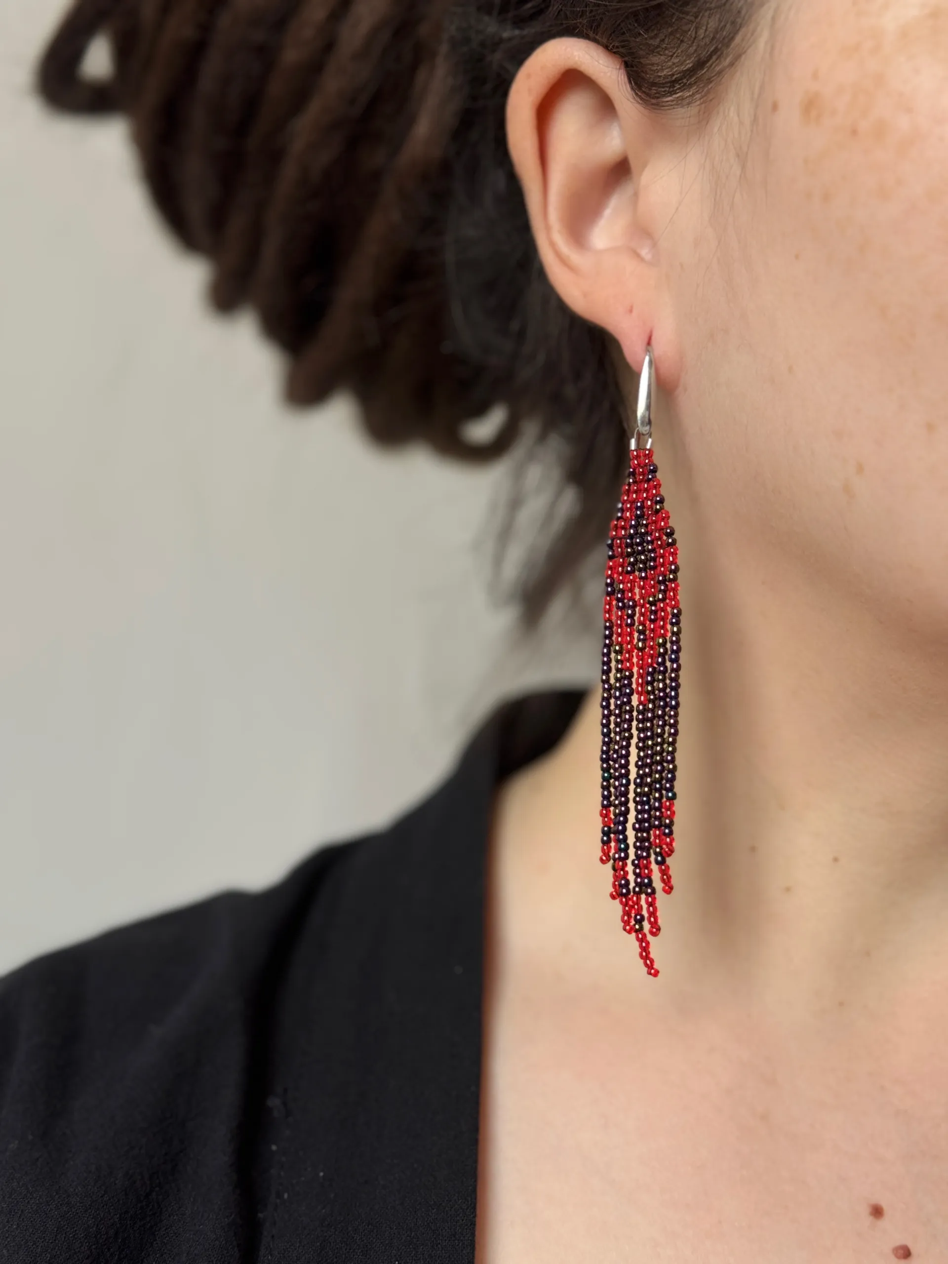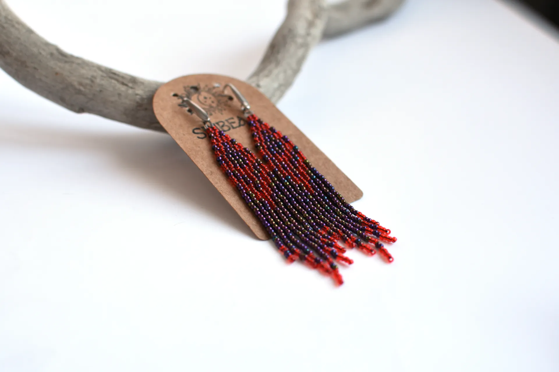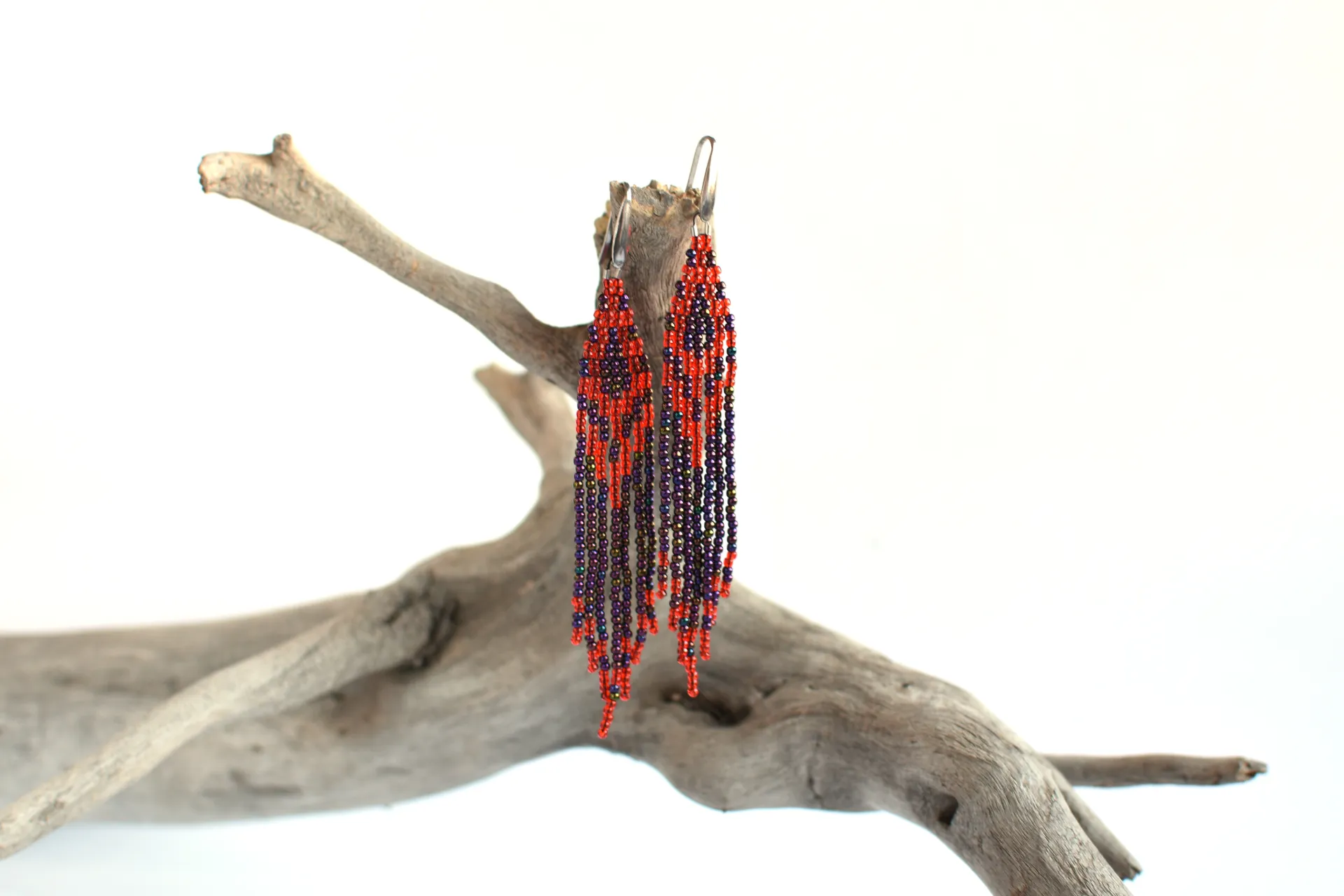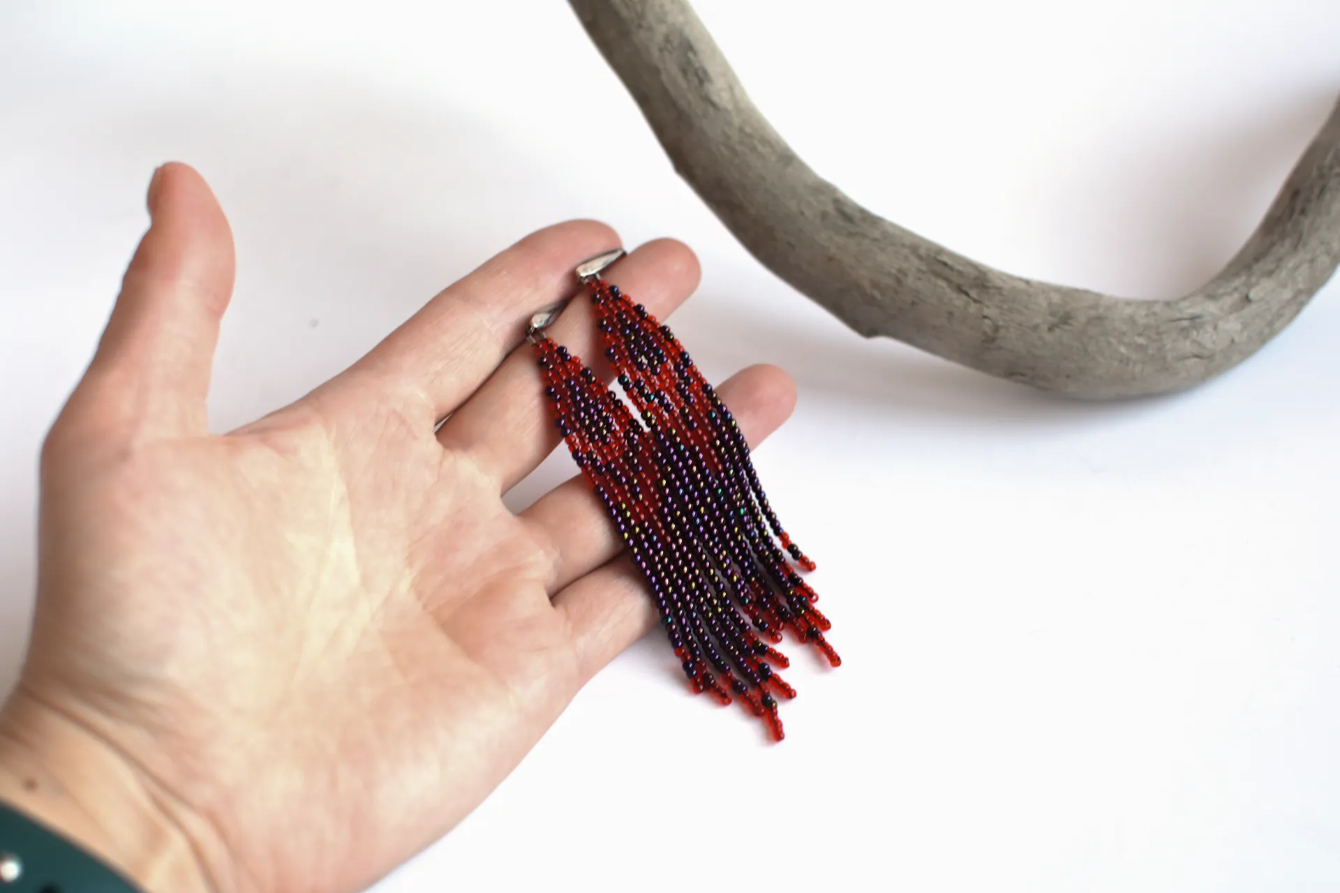 Тонкий плетёный браслет из фиолетового бисера с радужным отливом.