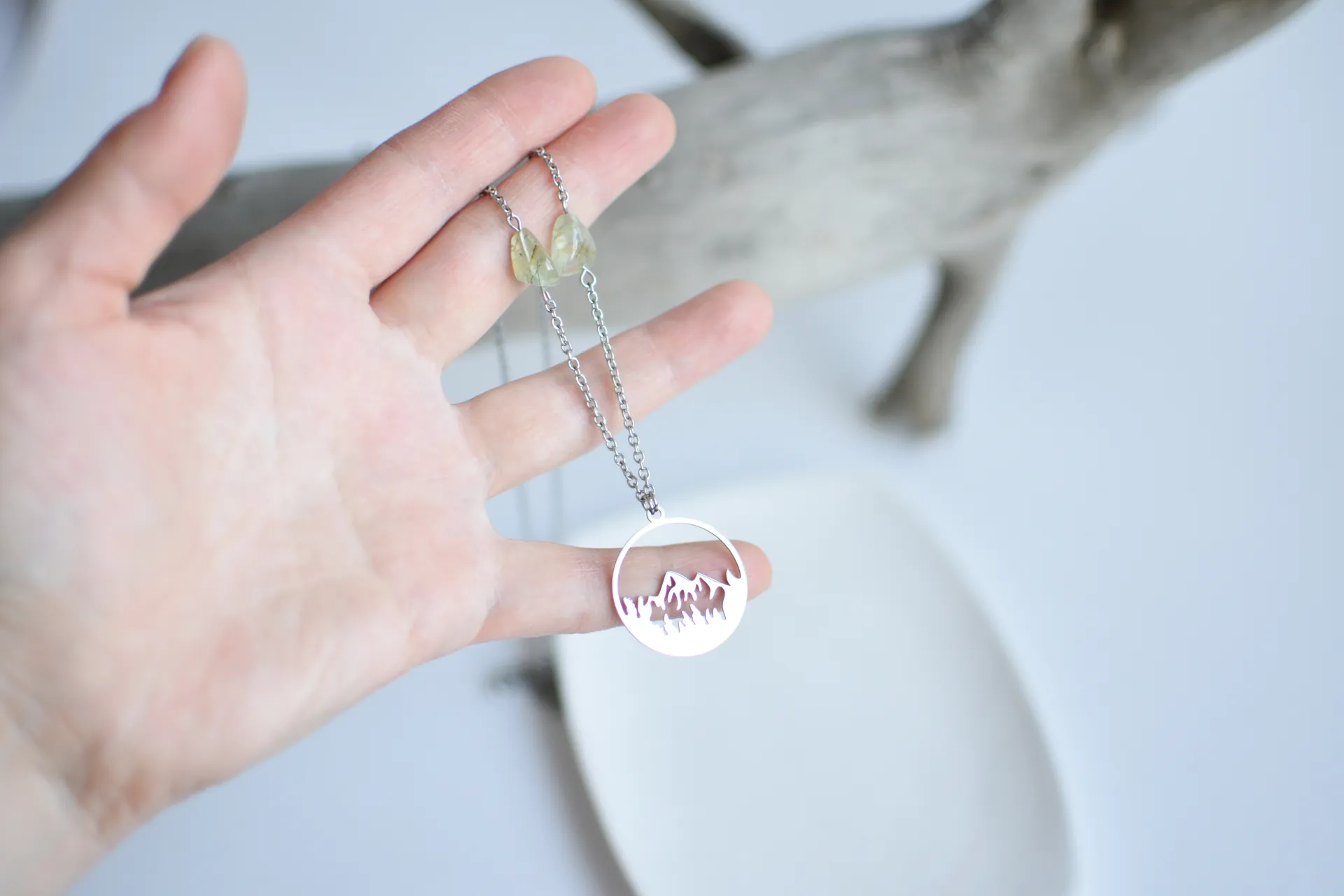 Серьги с подвесками для любителей гор и походов с натуральными бусинами пренита.