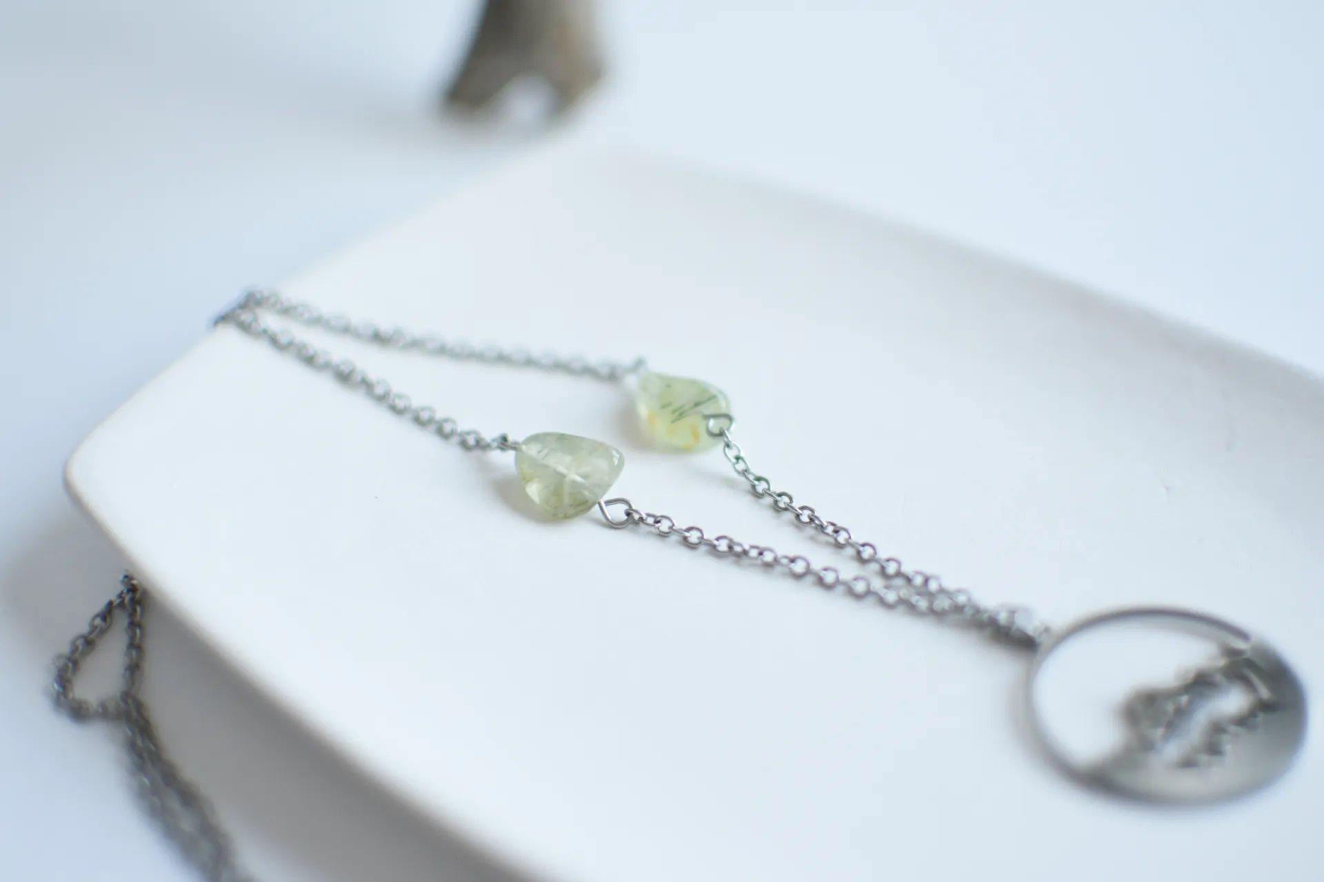 Браслет для любителей минимализма - одна акцентная бусина пренита на тонкой цепочке.