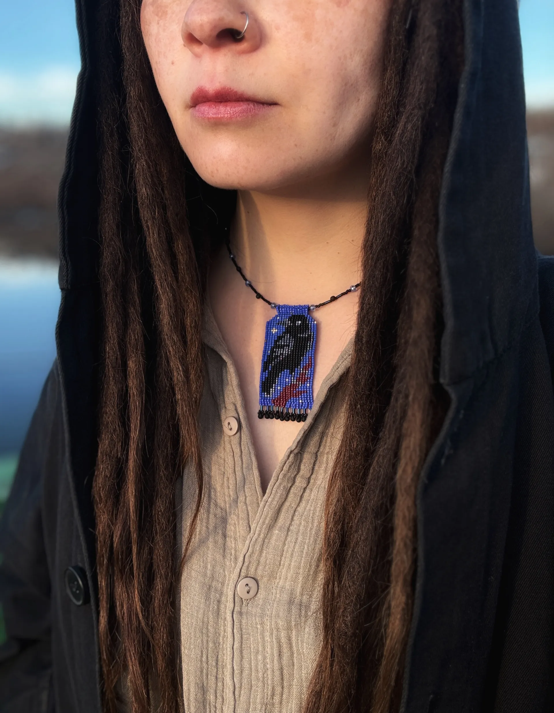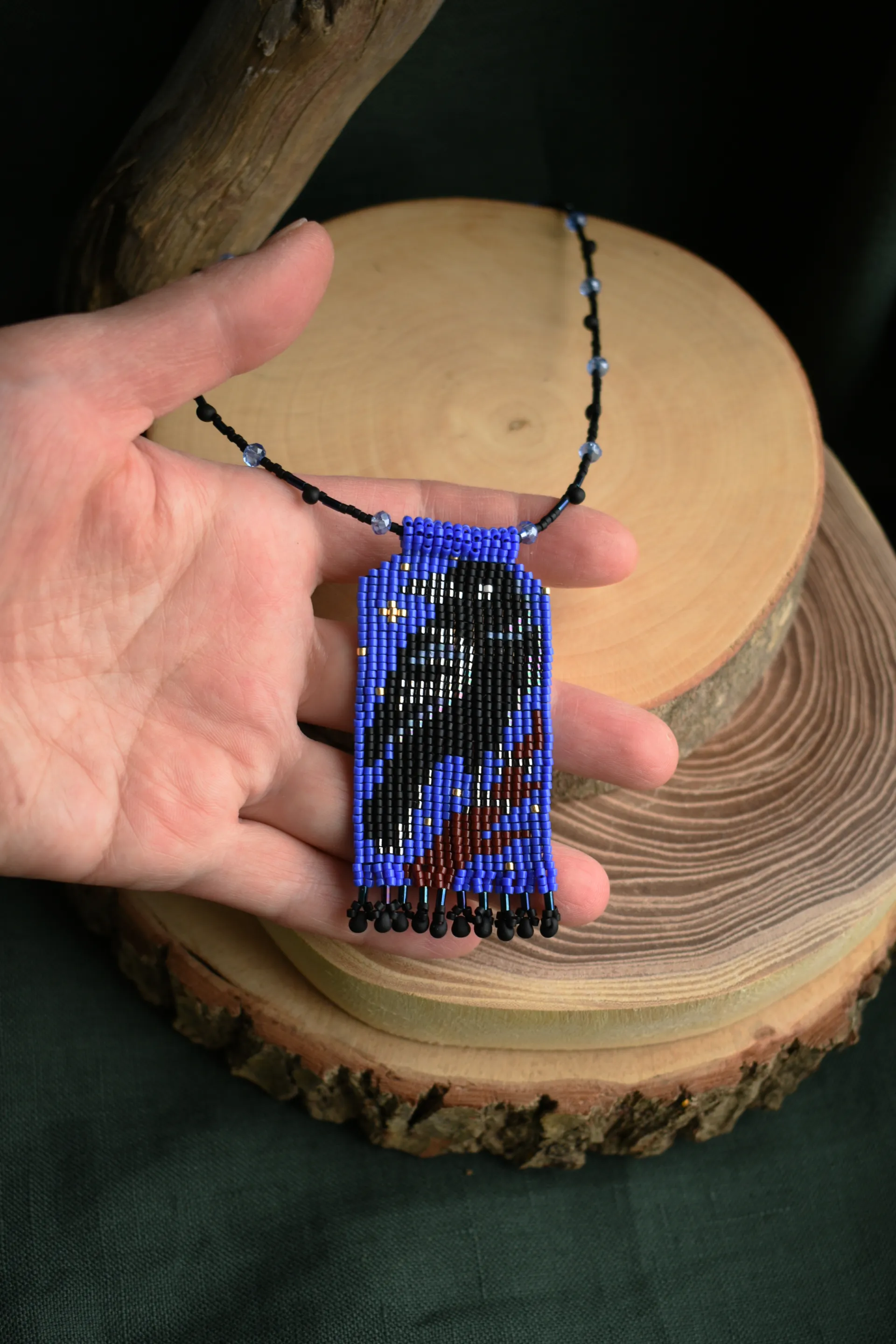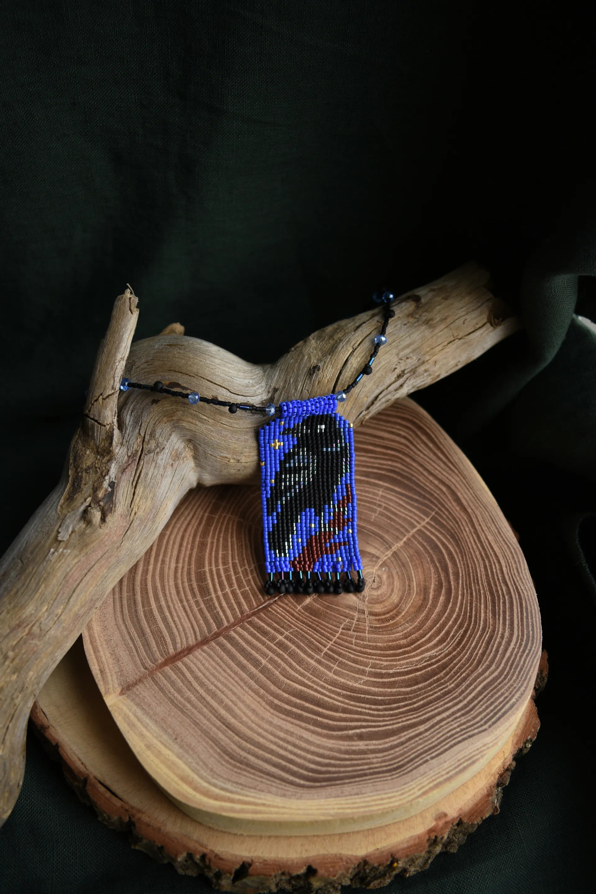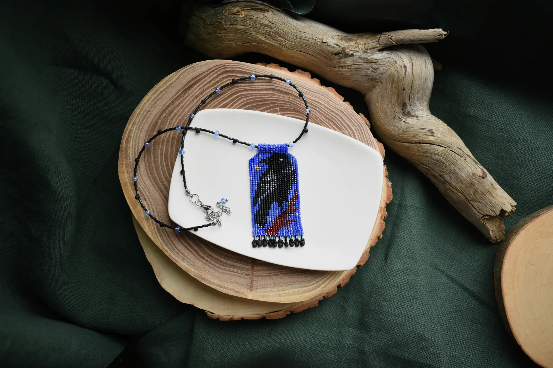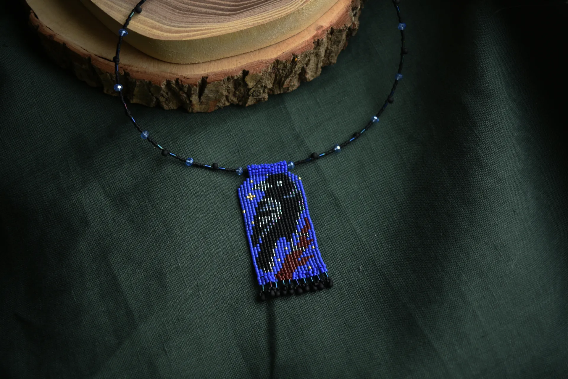 Плетеный кулон с черным матовым вороном. Кулон не съемный.