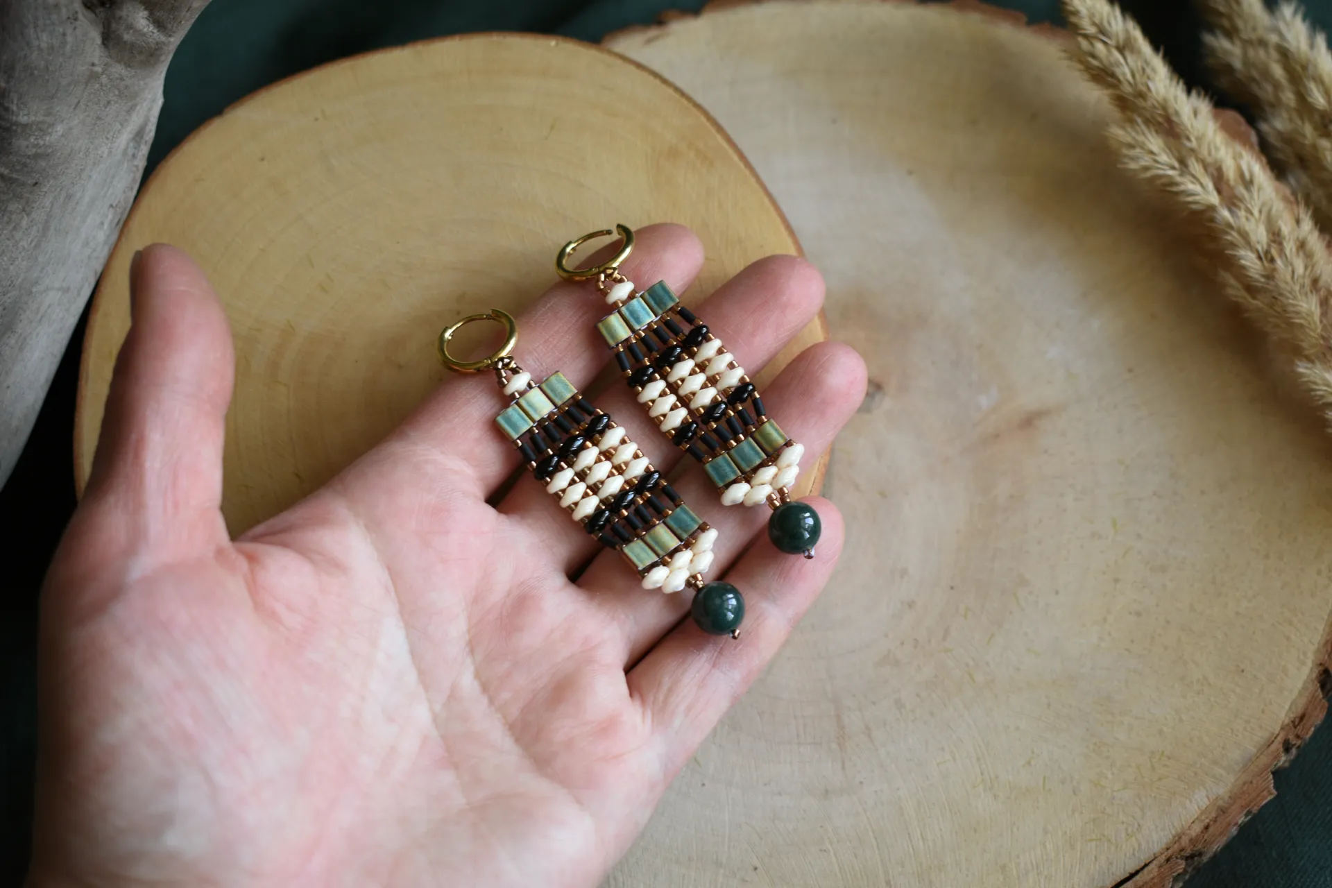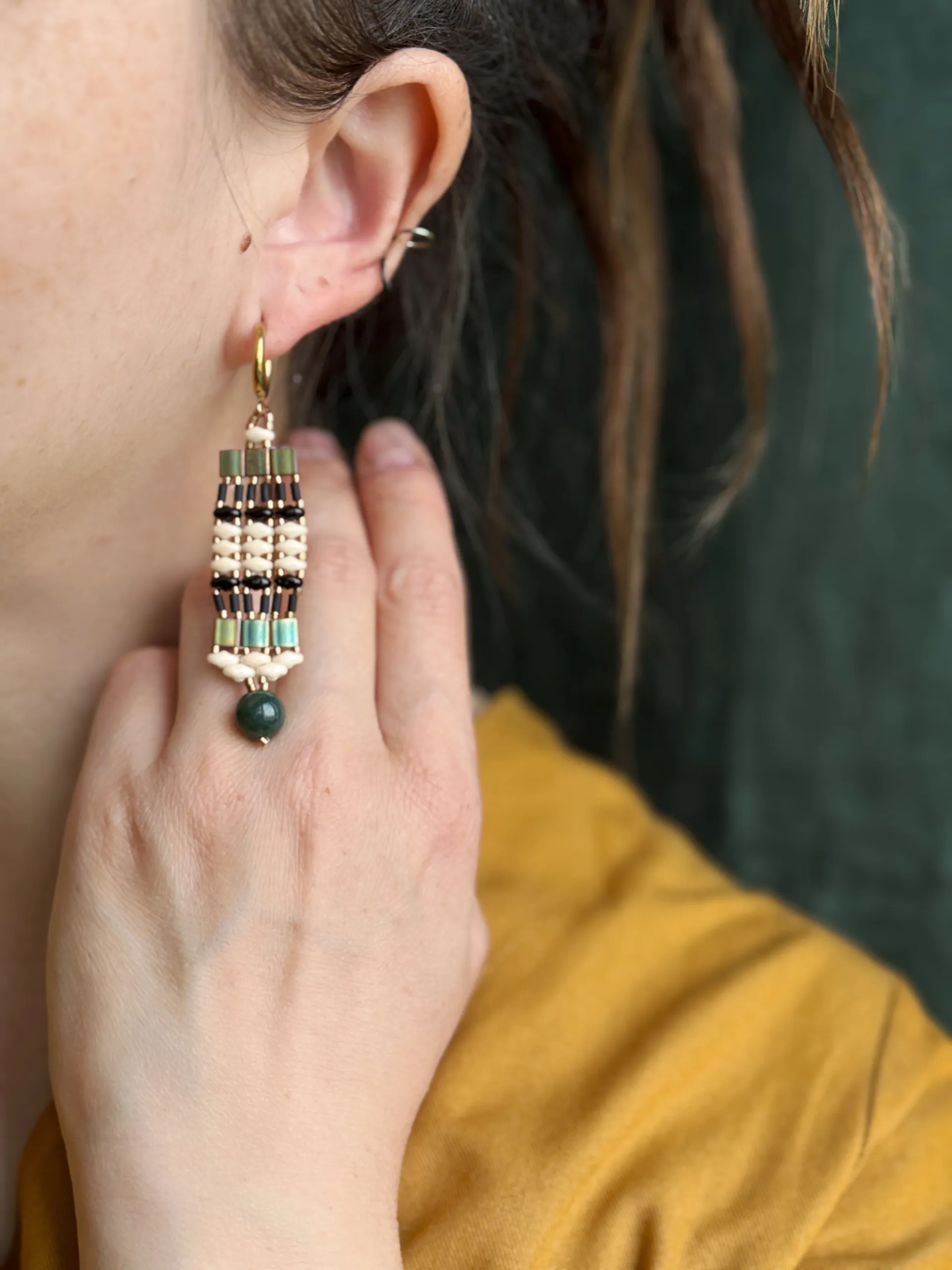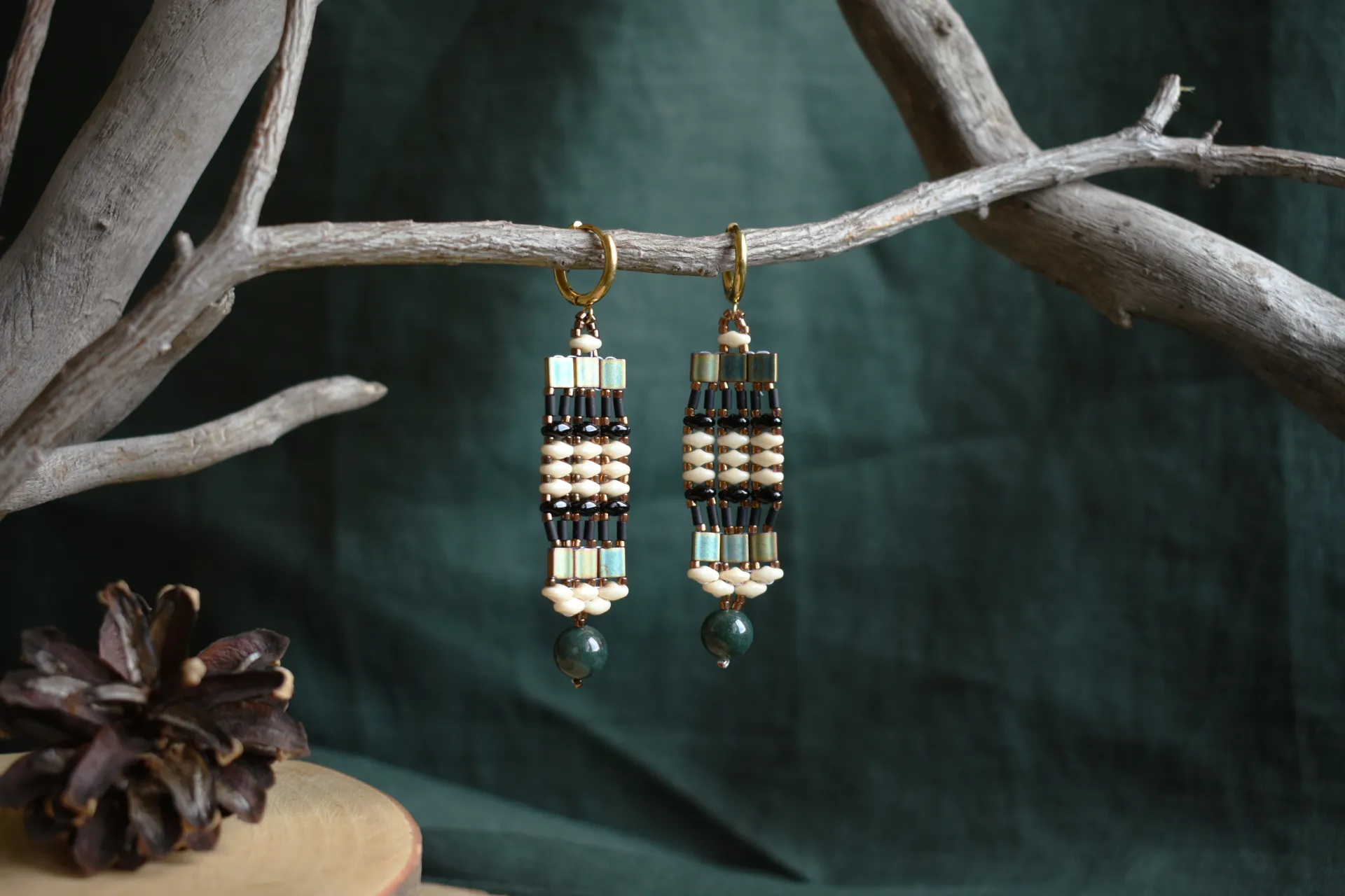 Серьги из бисера разной формы и бусиной индийского агата - полная импровизация.