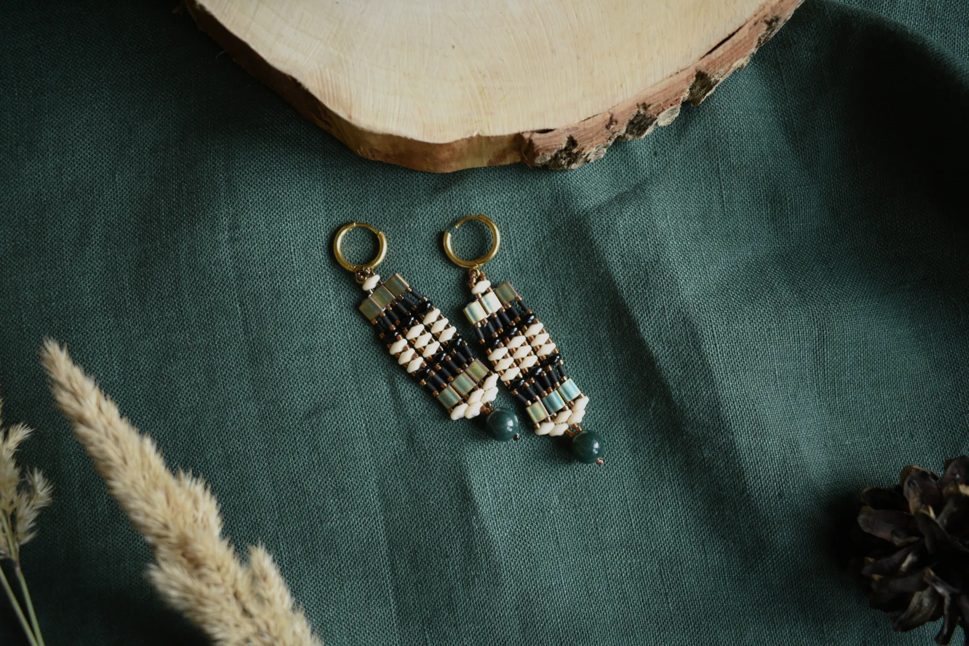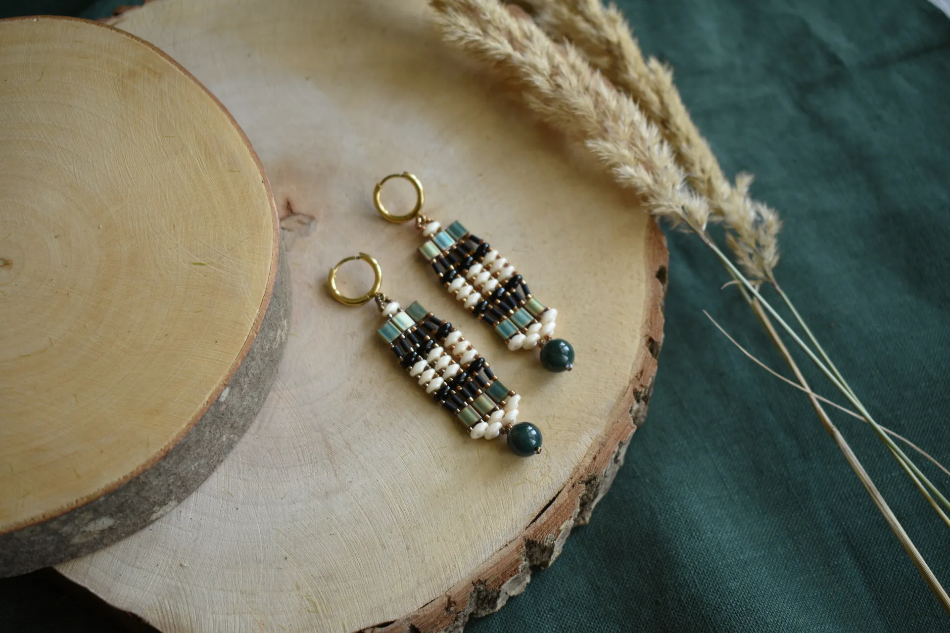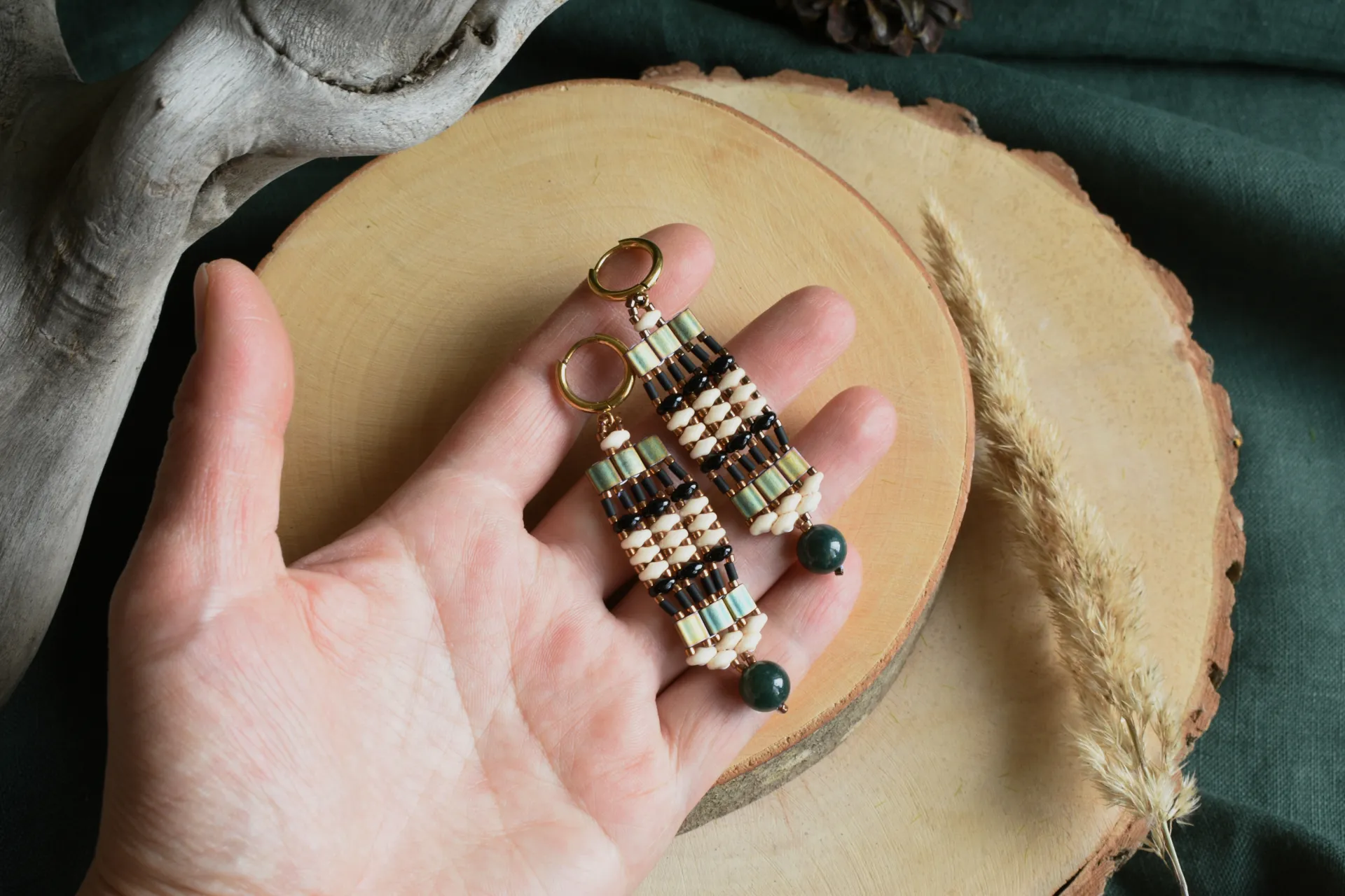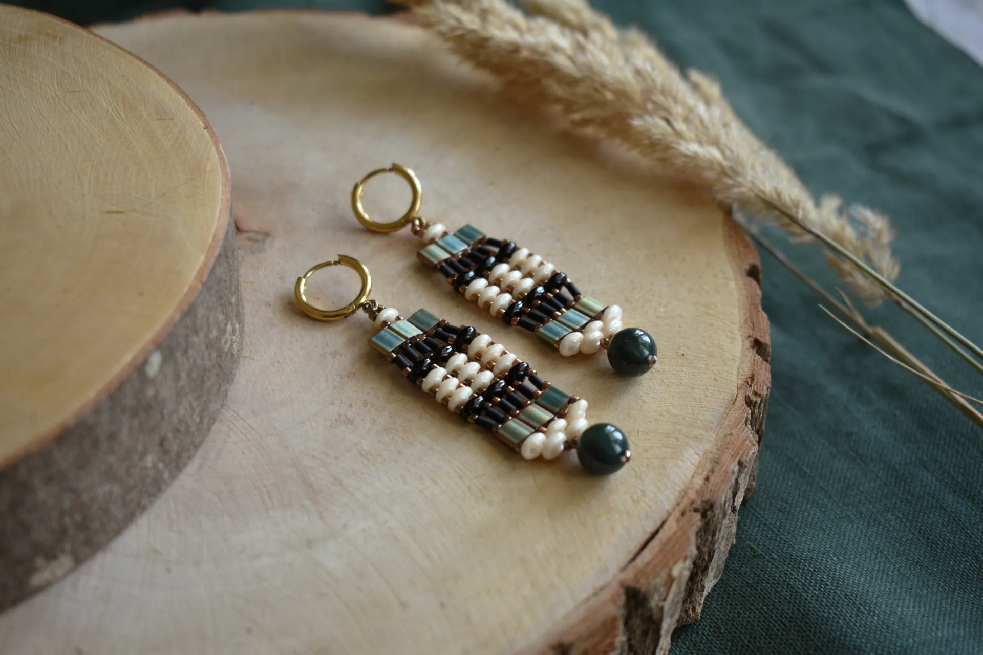 Серьги из бисера разной формы и бусиной индийского агата - полная импровизация.