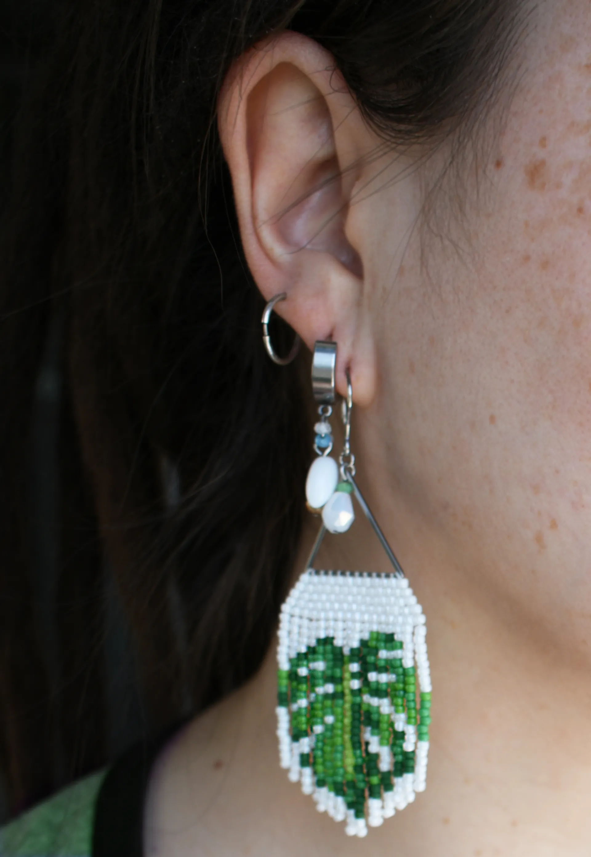 Выполнены по авторской схеме из японского бисера, стеклянных бусин и нержавеющей стали.