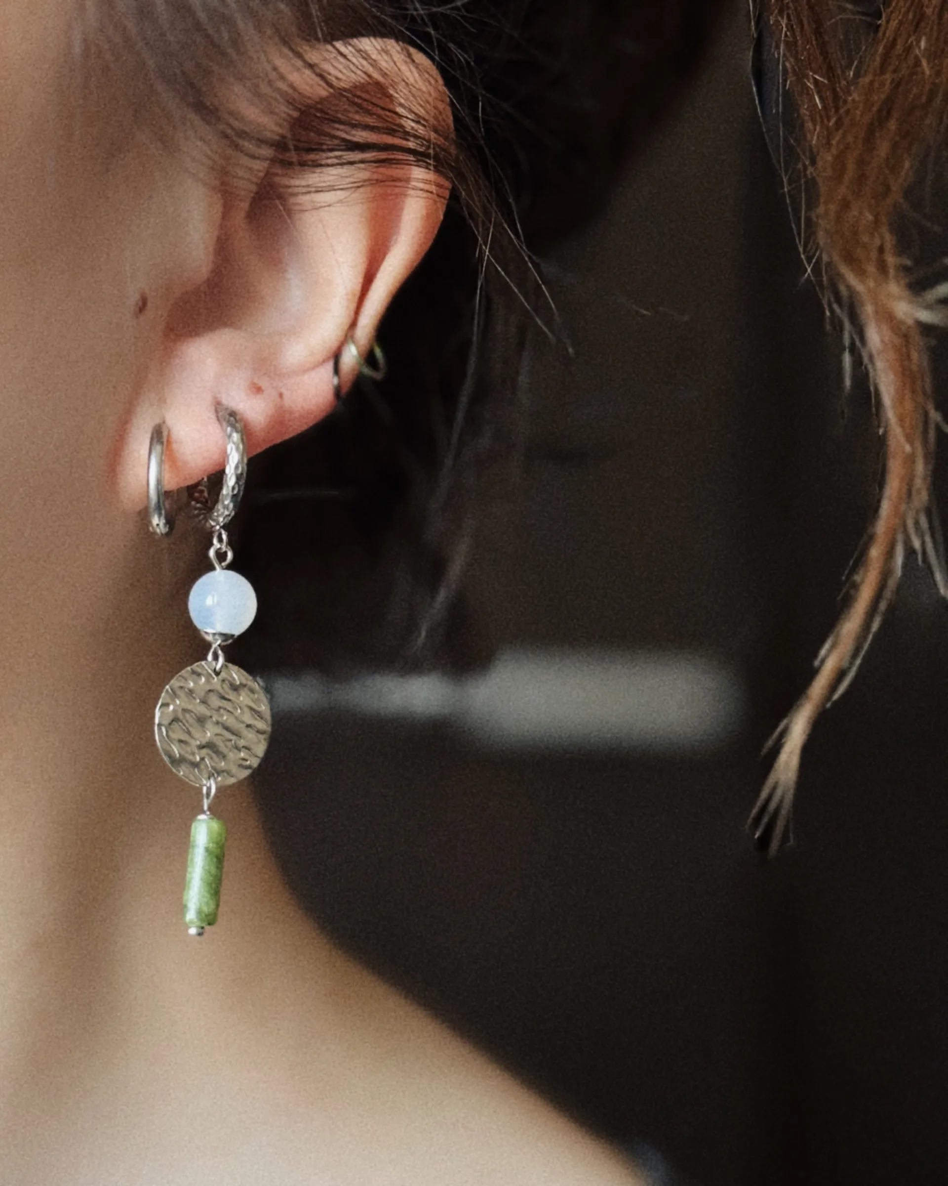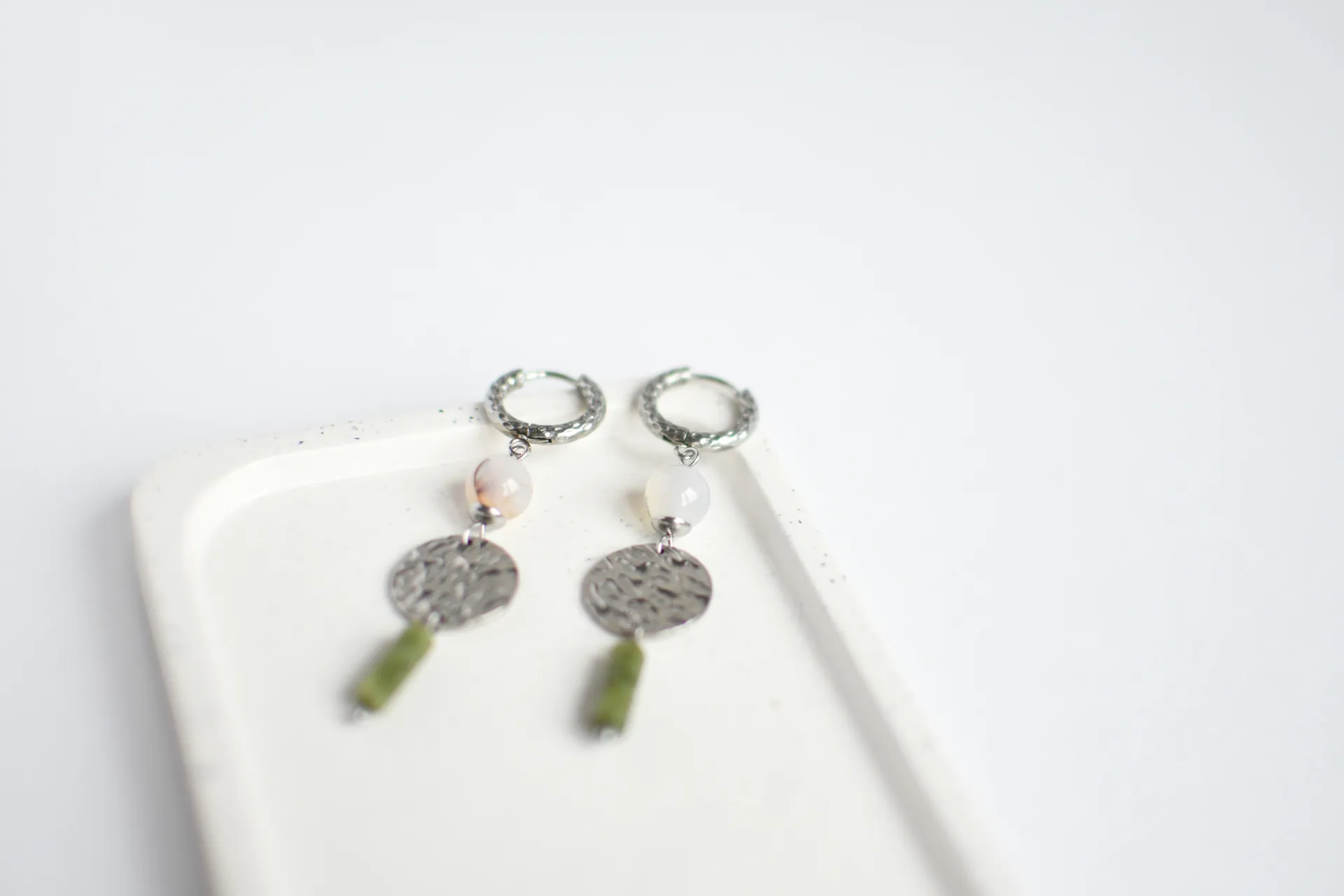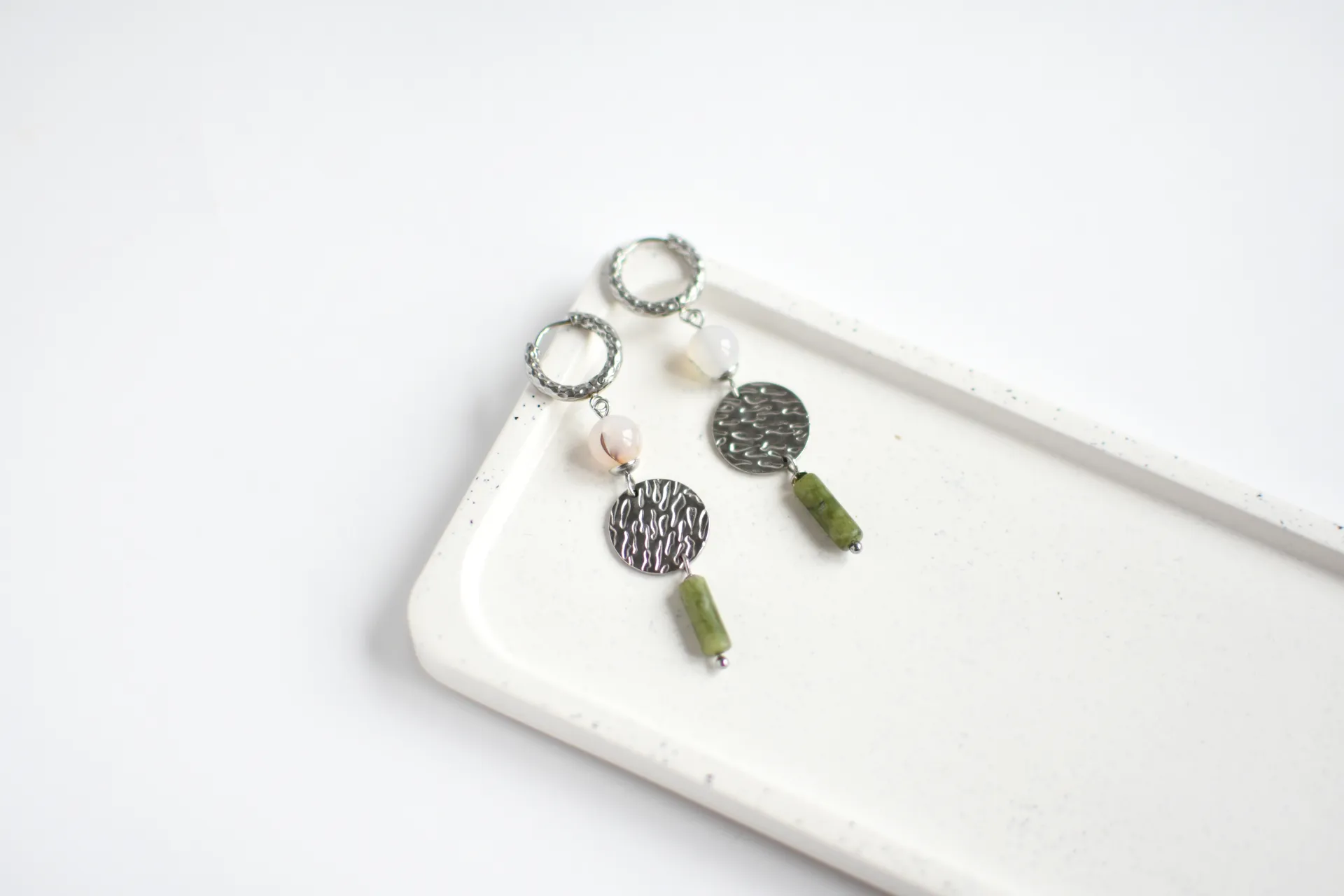 Серьги с натуральными камнями на фактурных швензах-колечках.