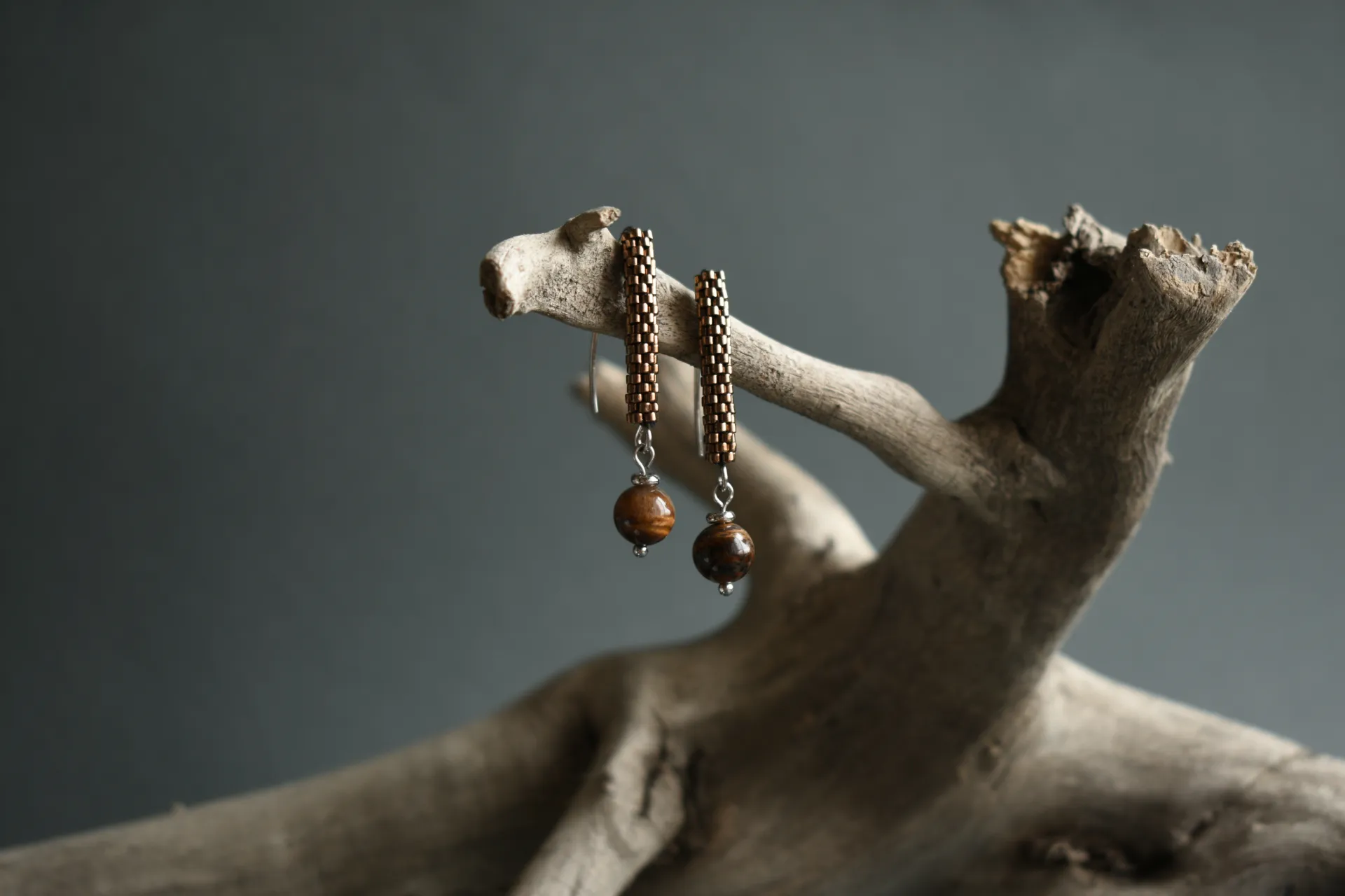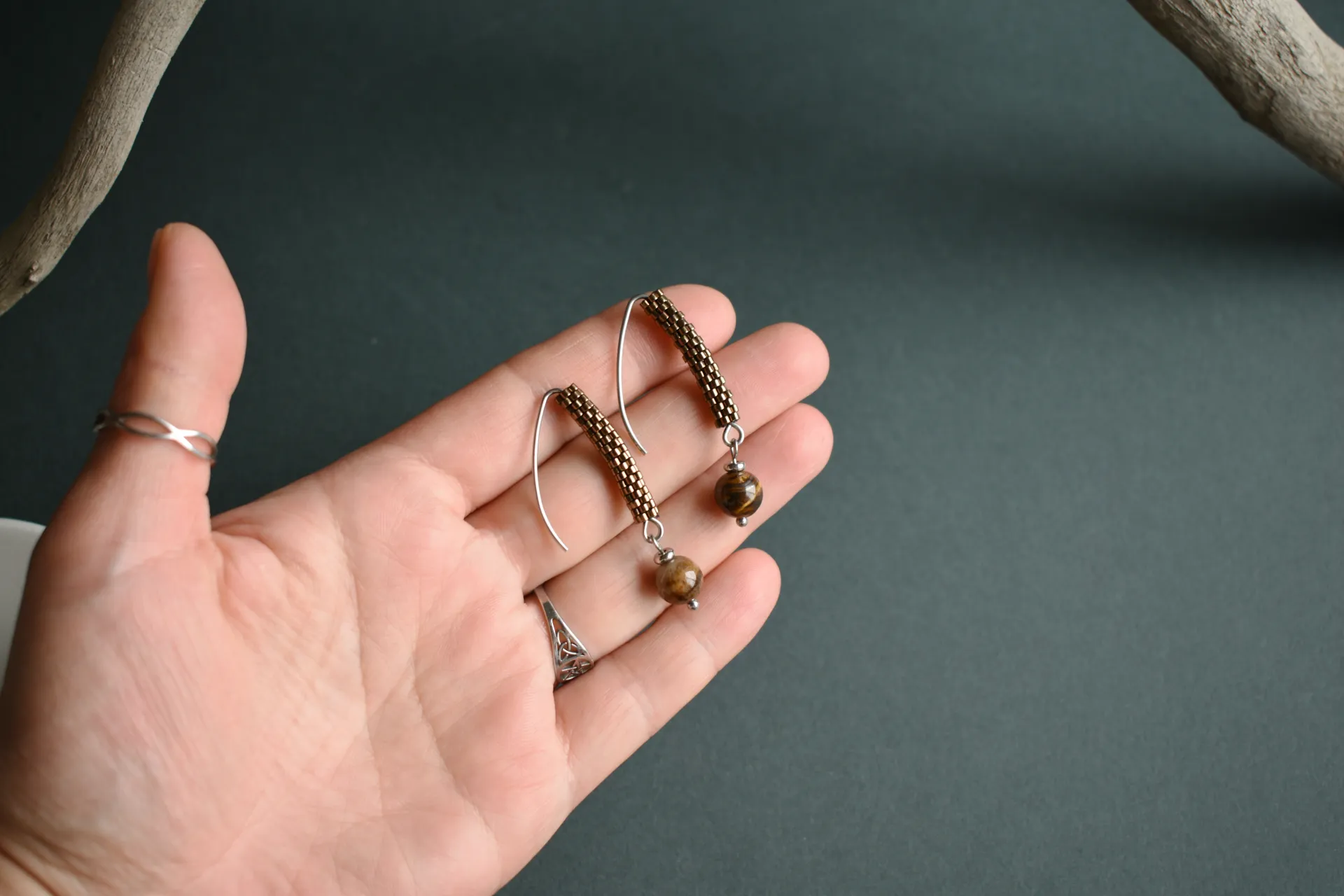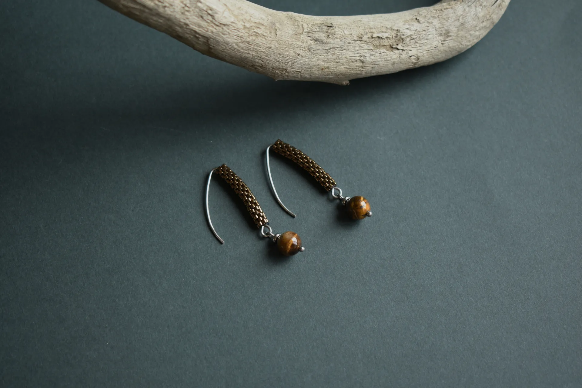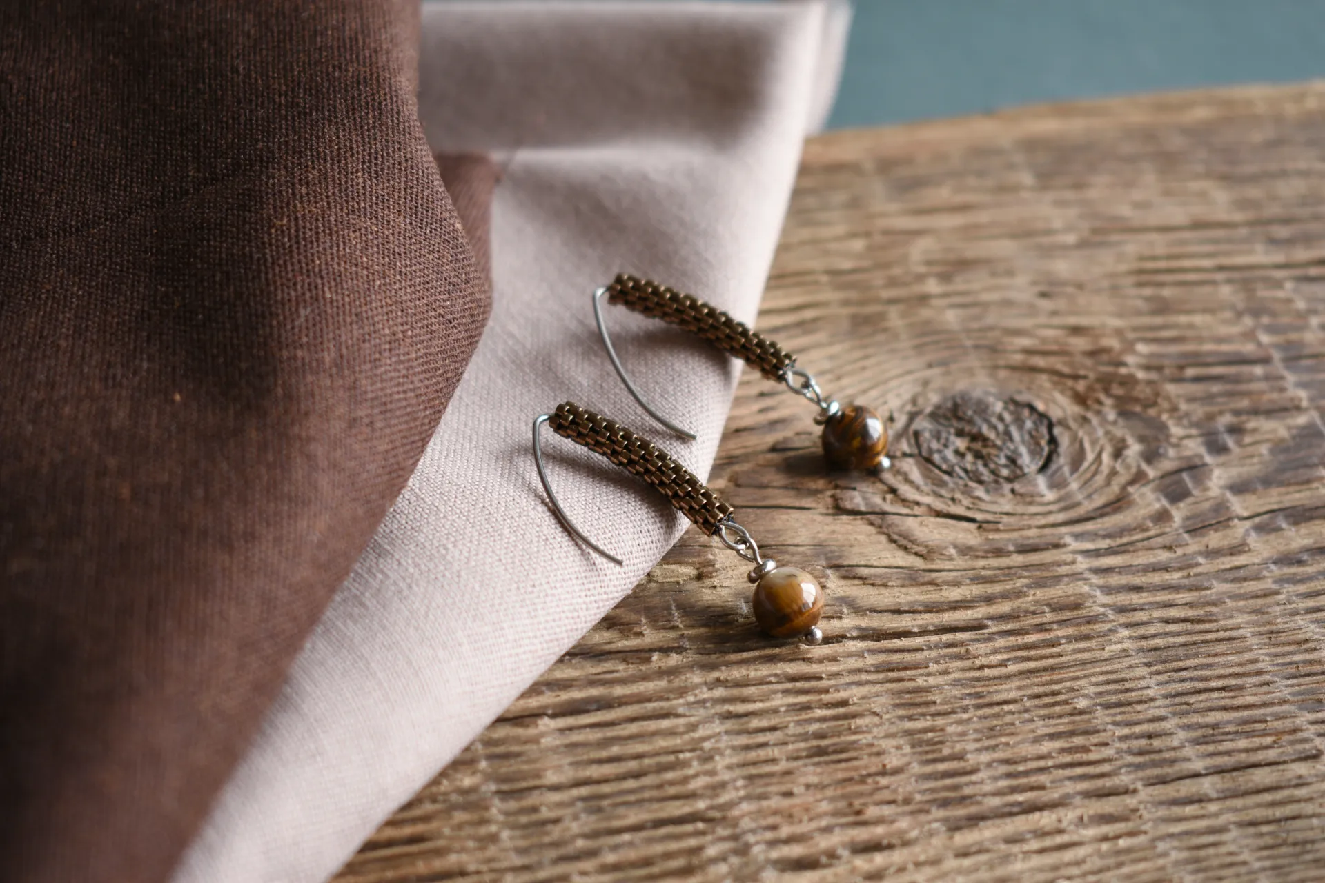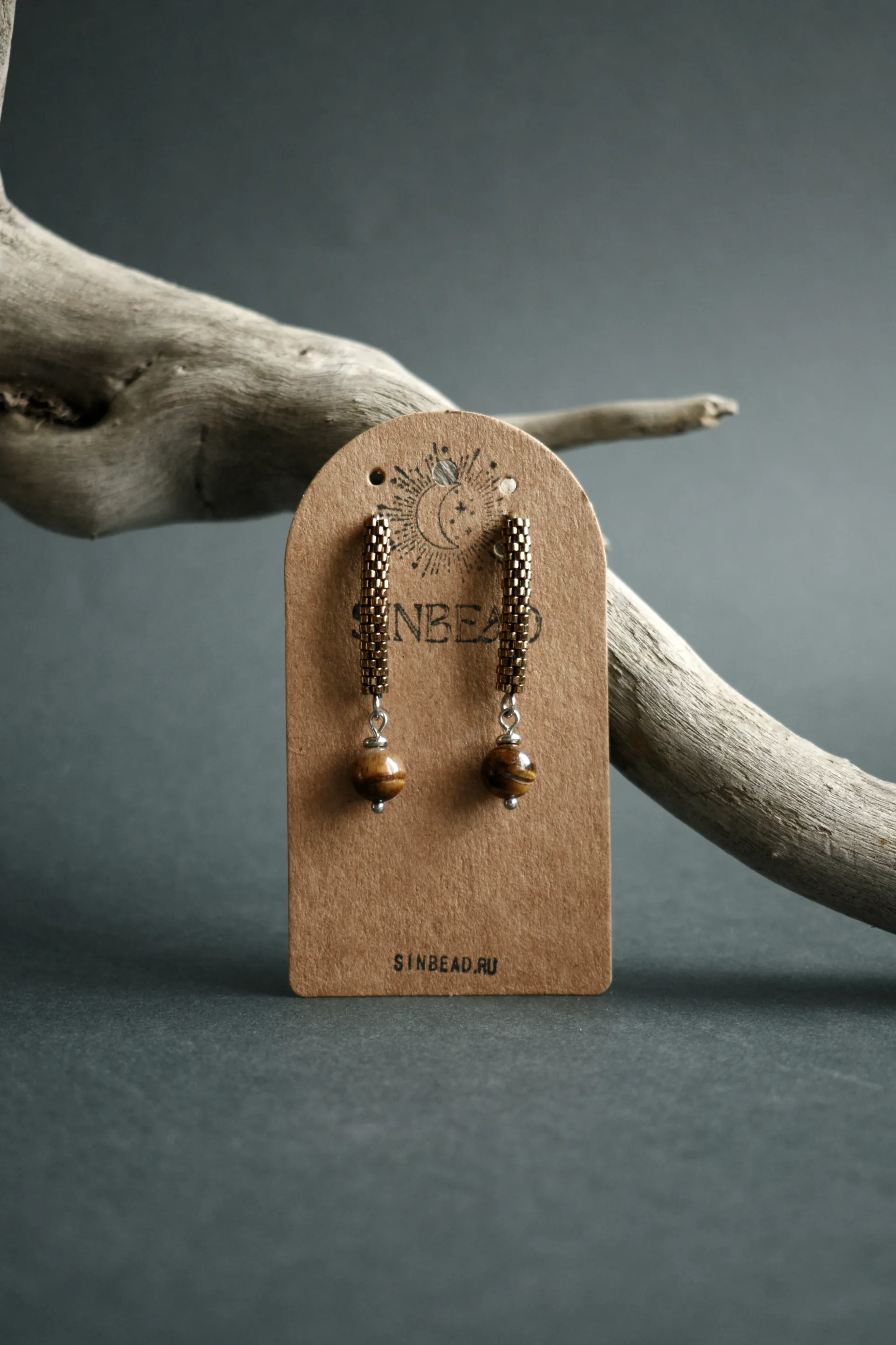 Тёплый бронзовый бисер и камень силы - тигровый глаз.