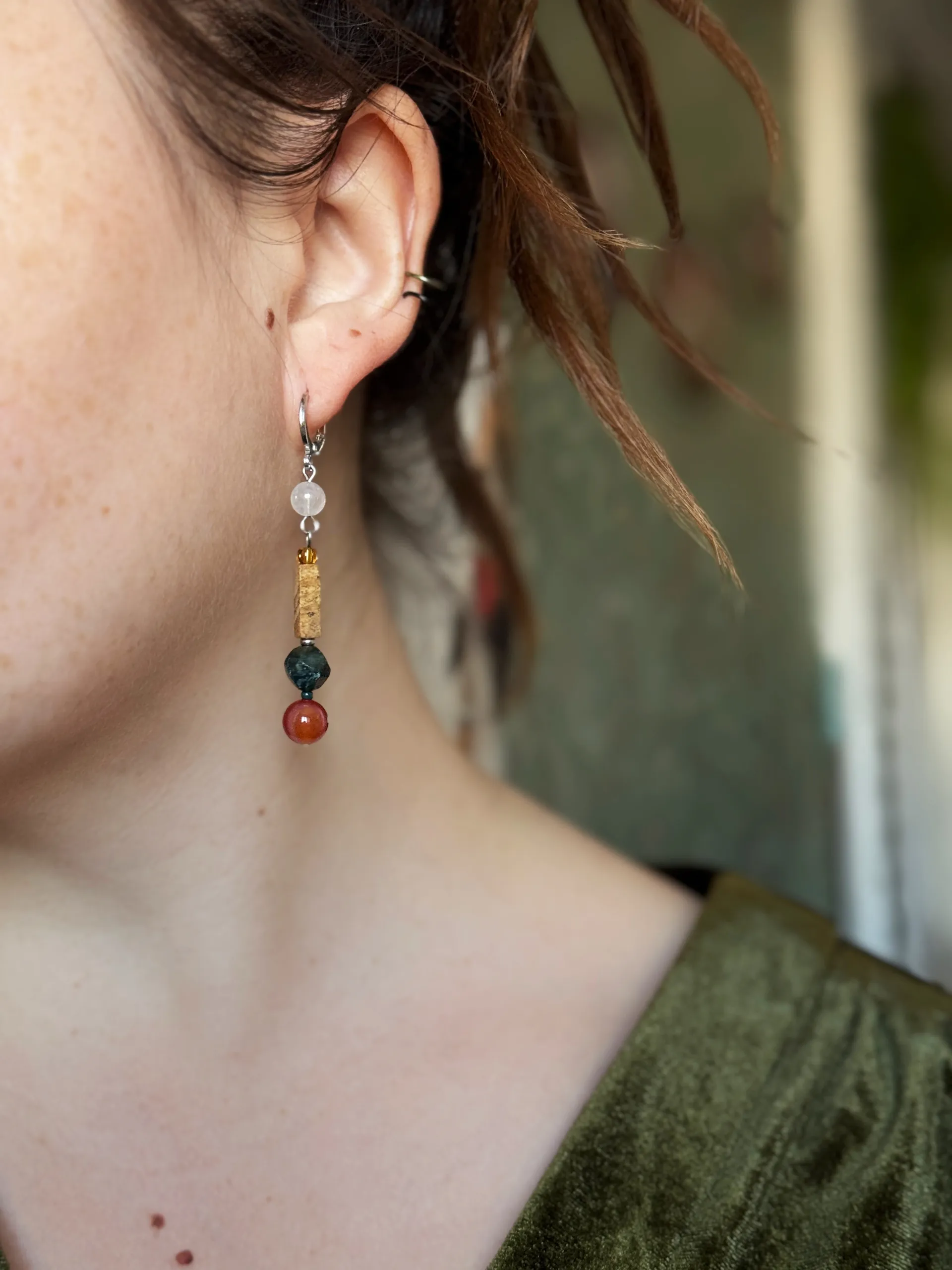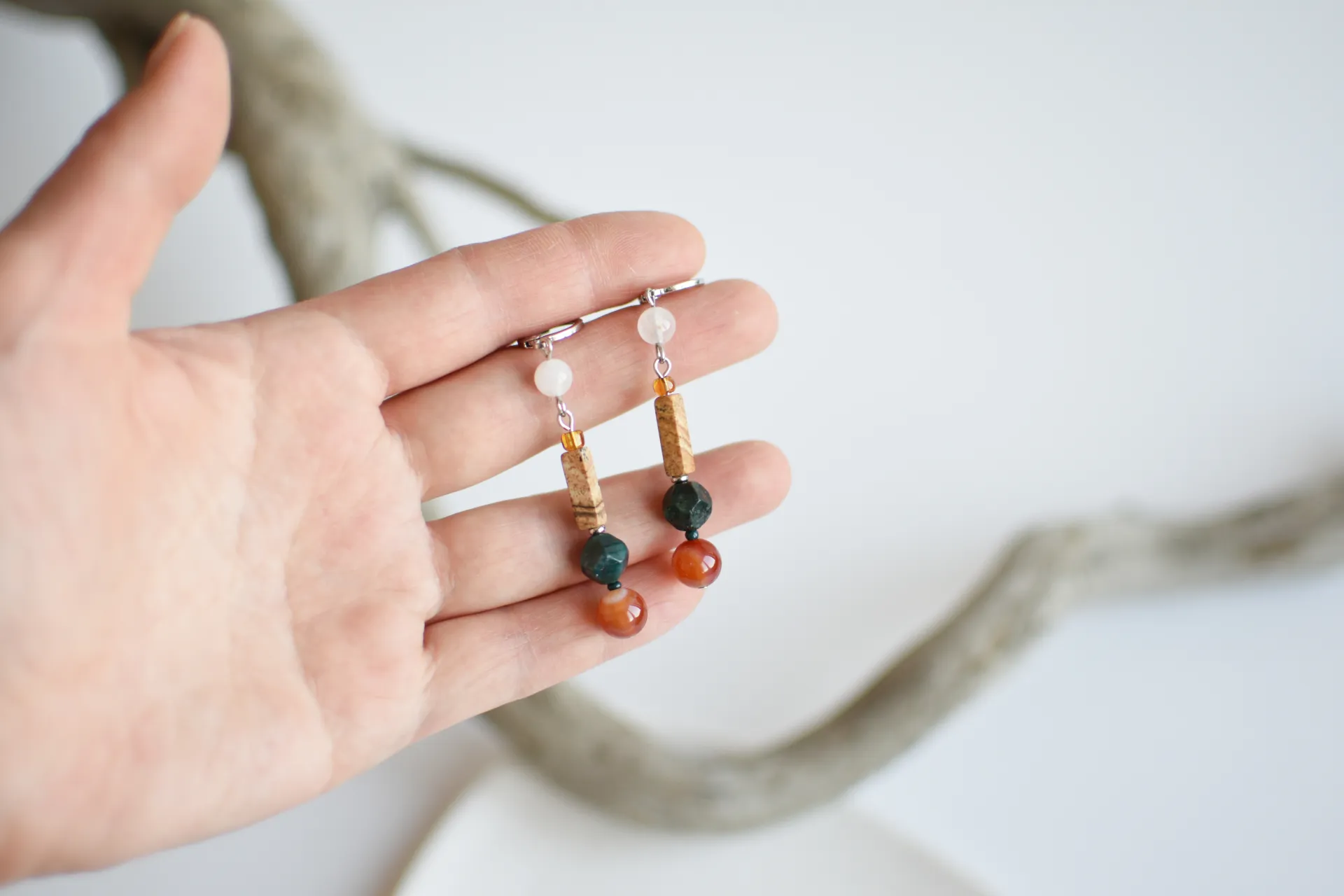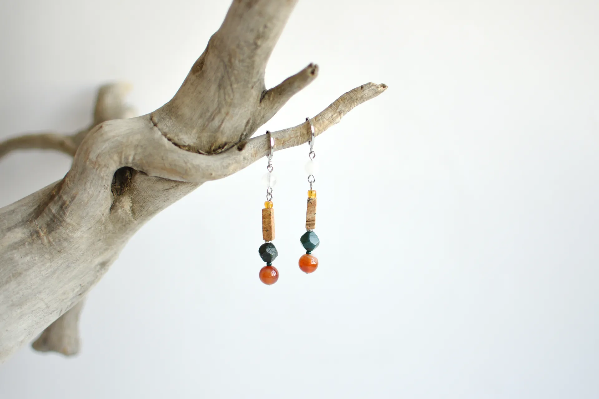 Длинные серьги с натуральными камнями.