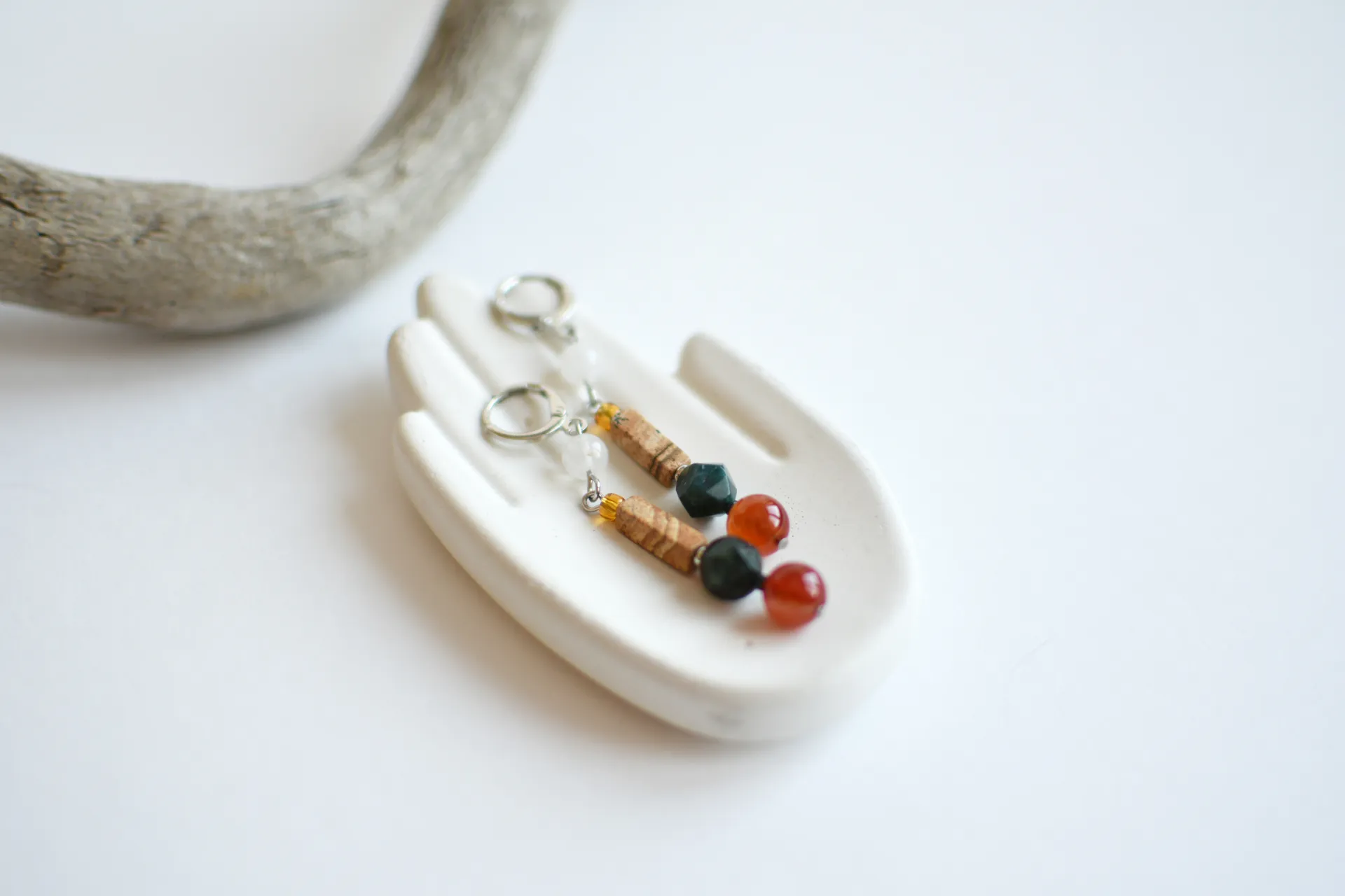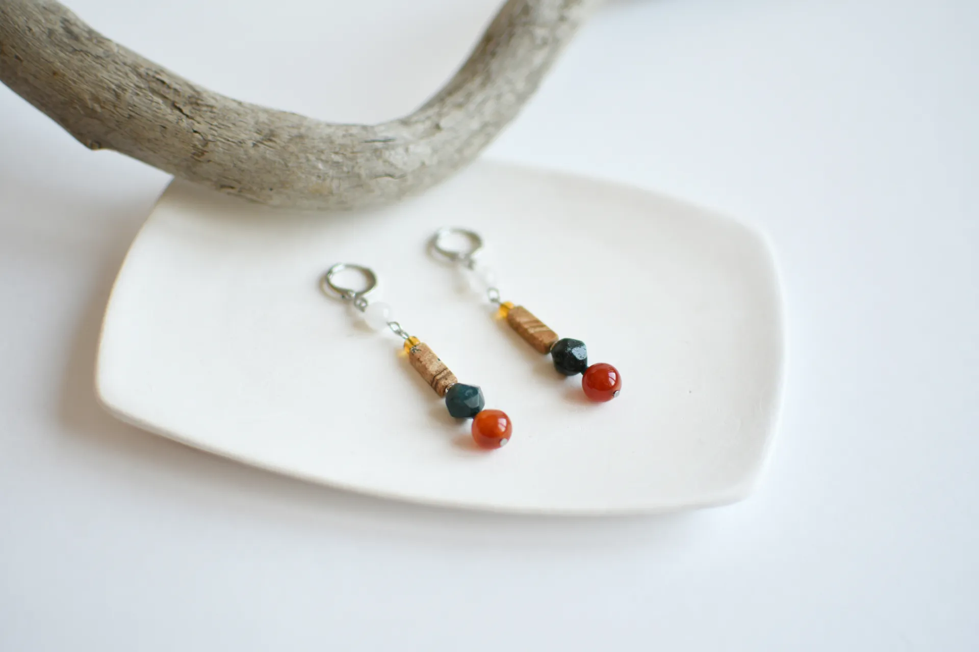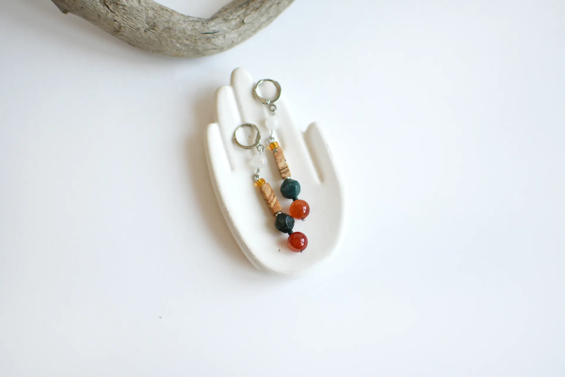 Длинные серьги с натуральными камнями.