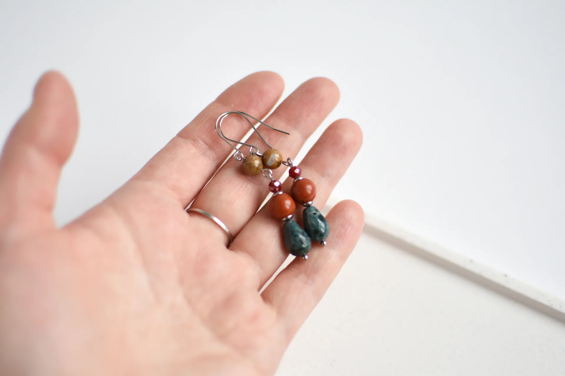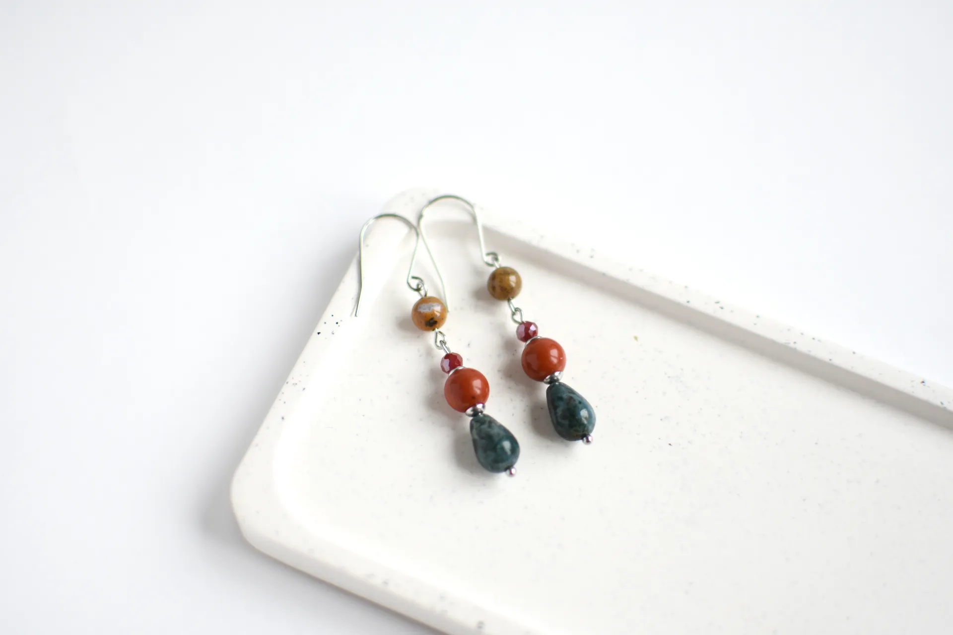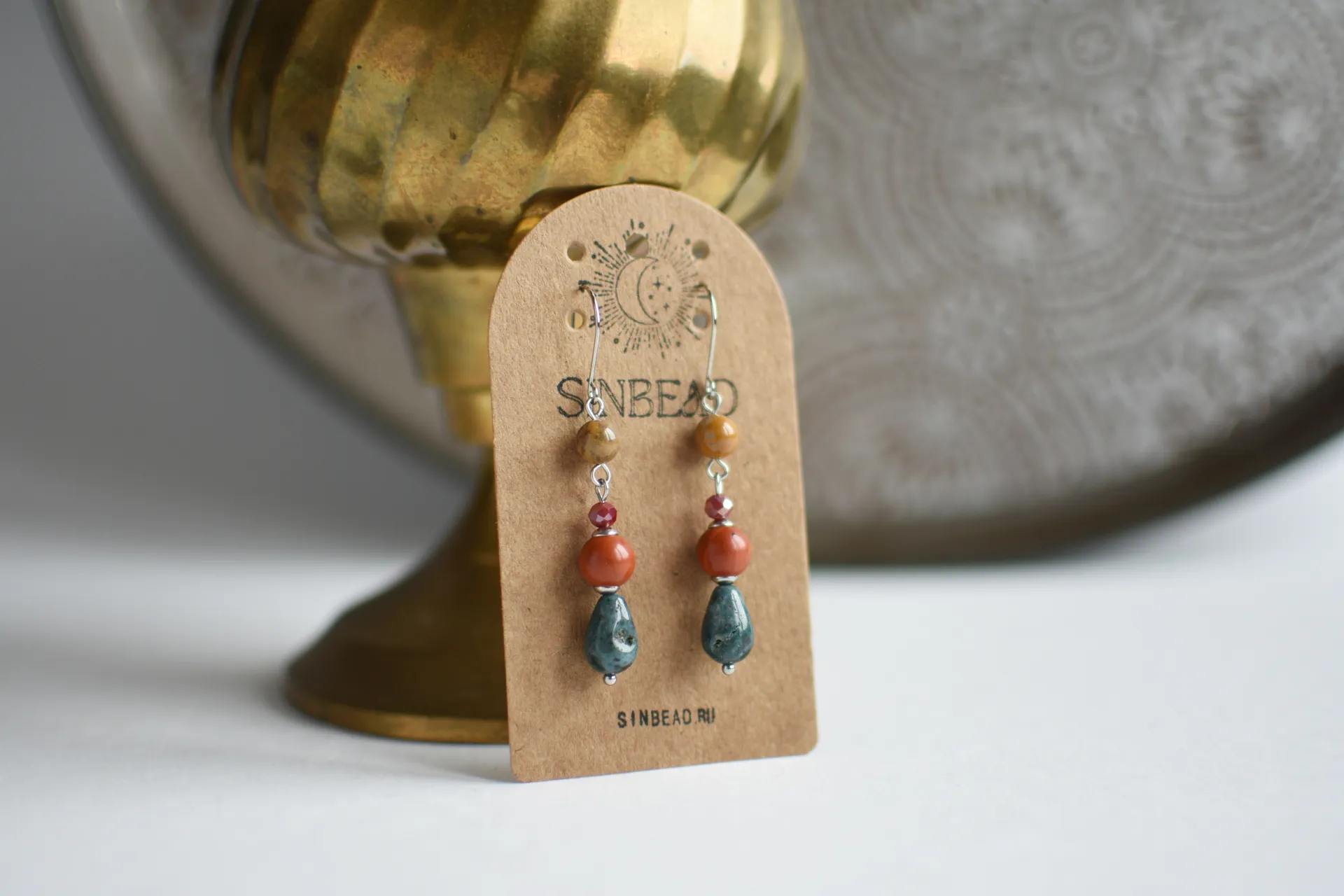 Серьги с различными видами яшмы.