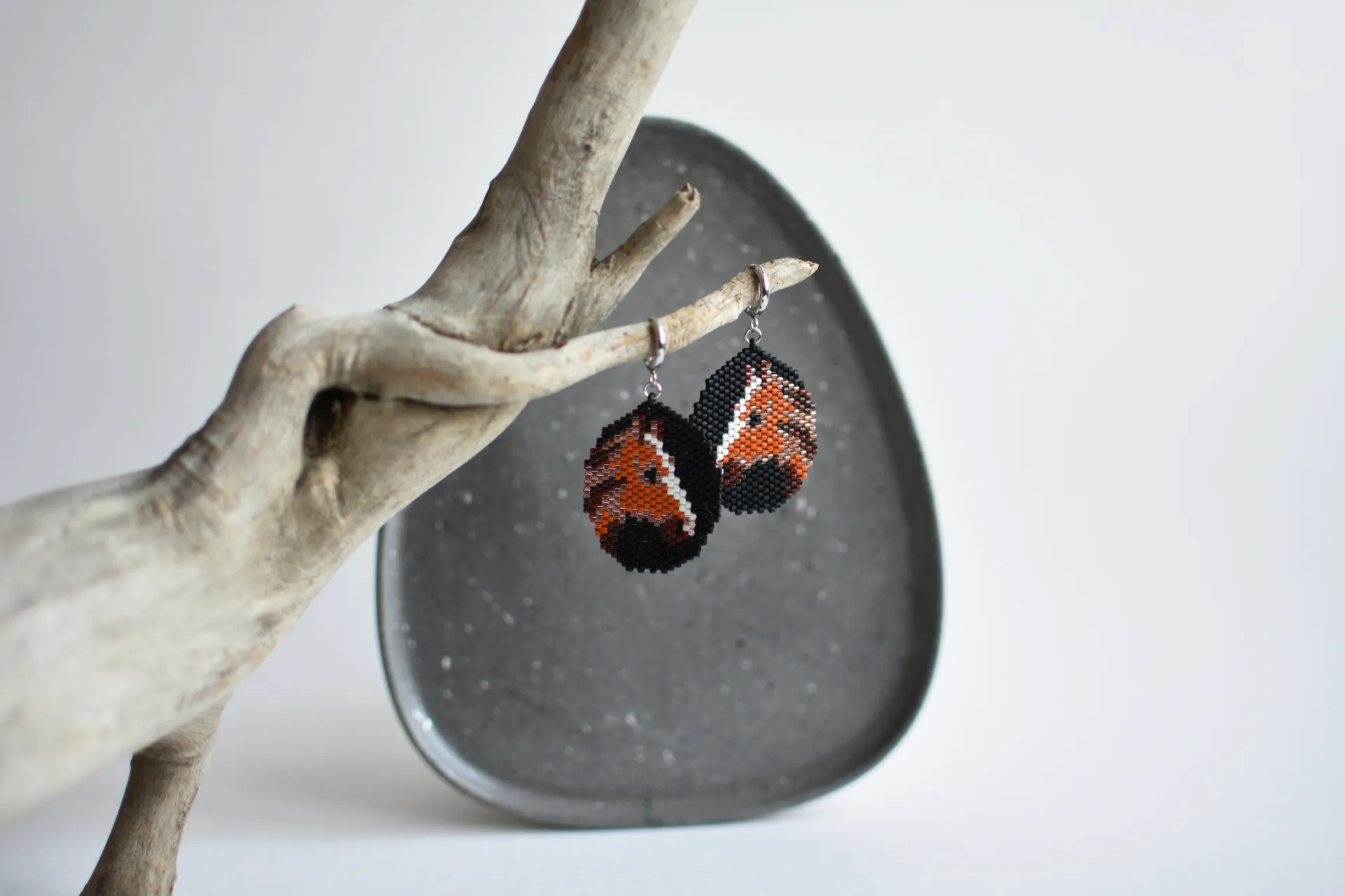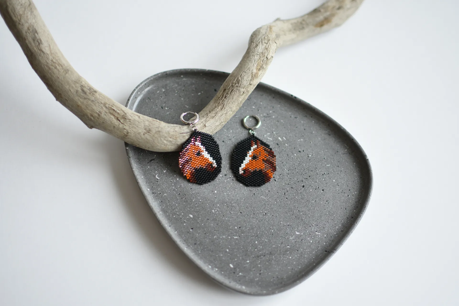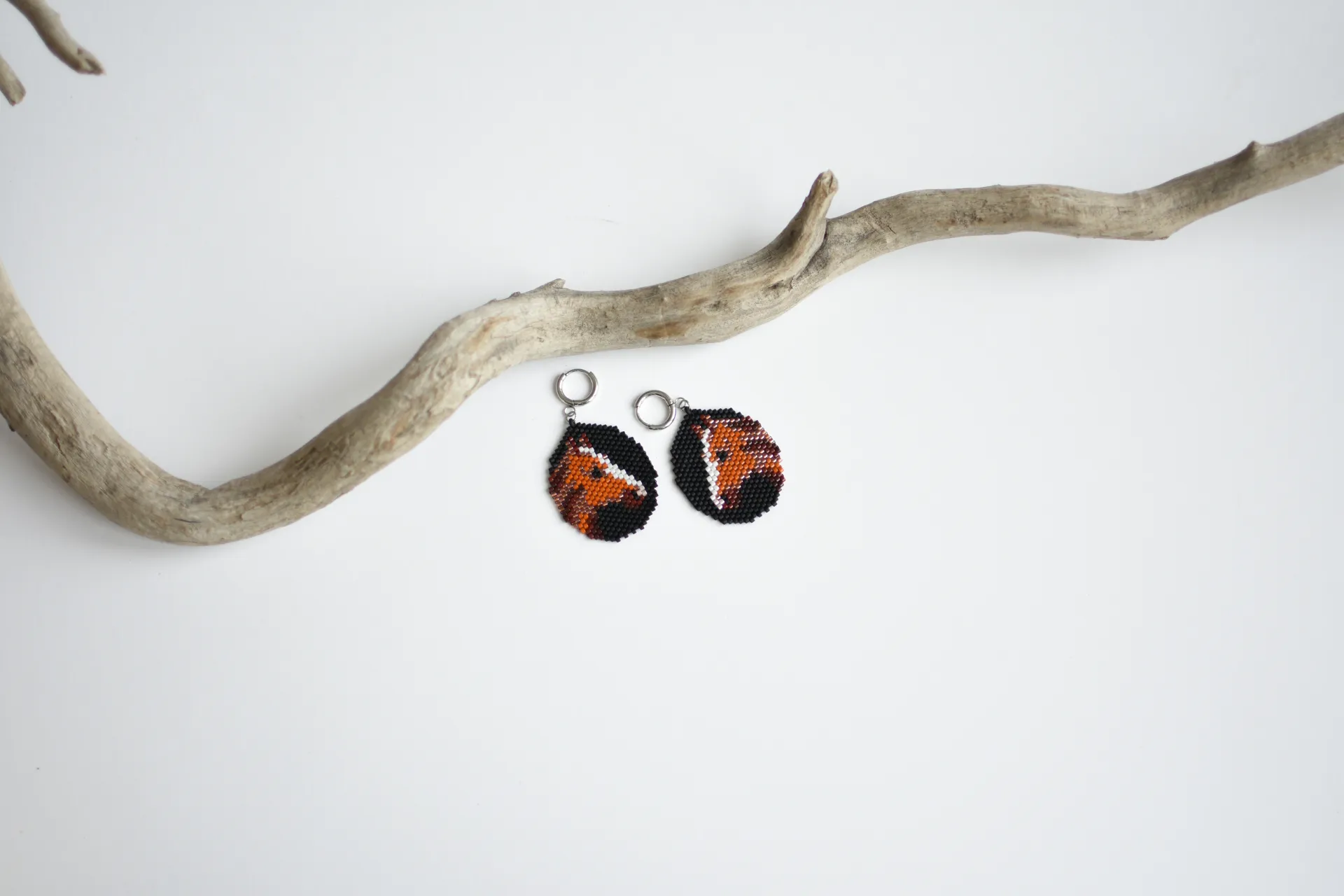 Серьги с символом 2026 года. Выполнены по авторской схеме, на удобных швензах-колечках.