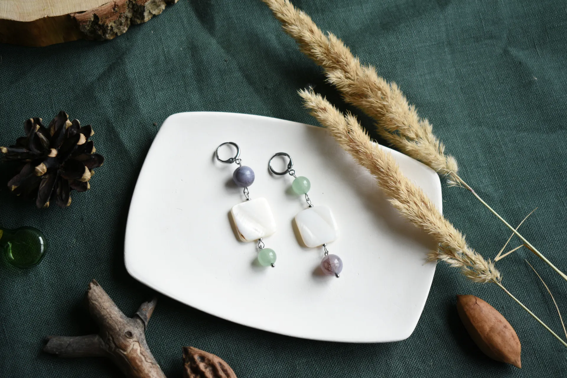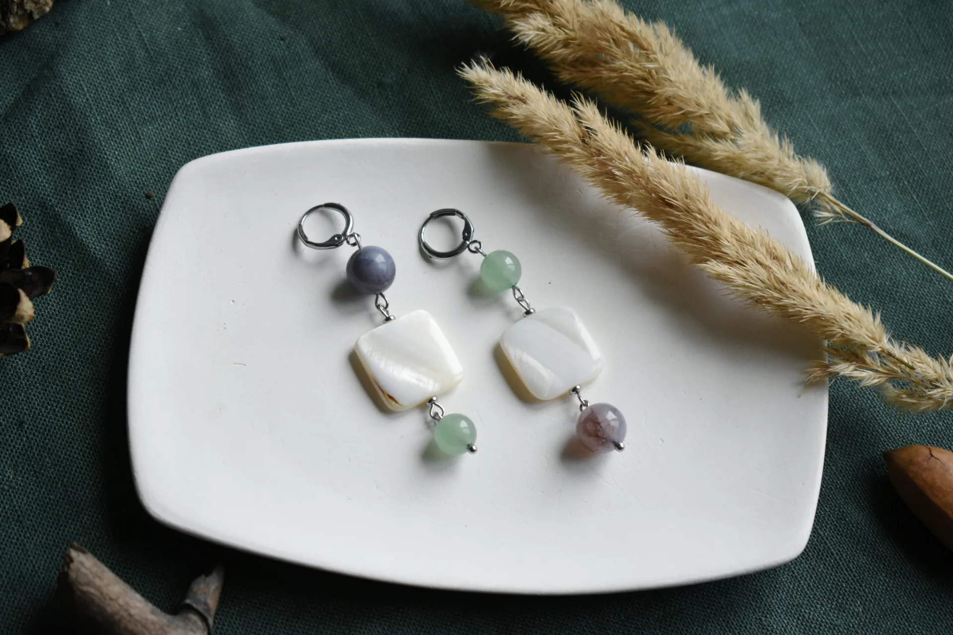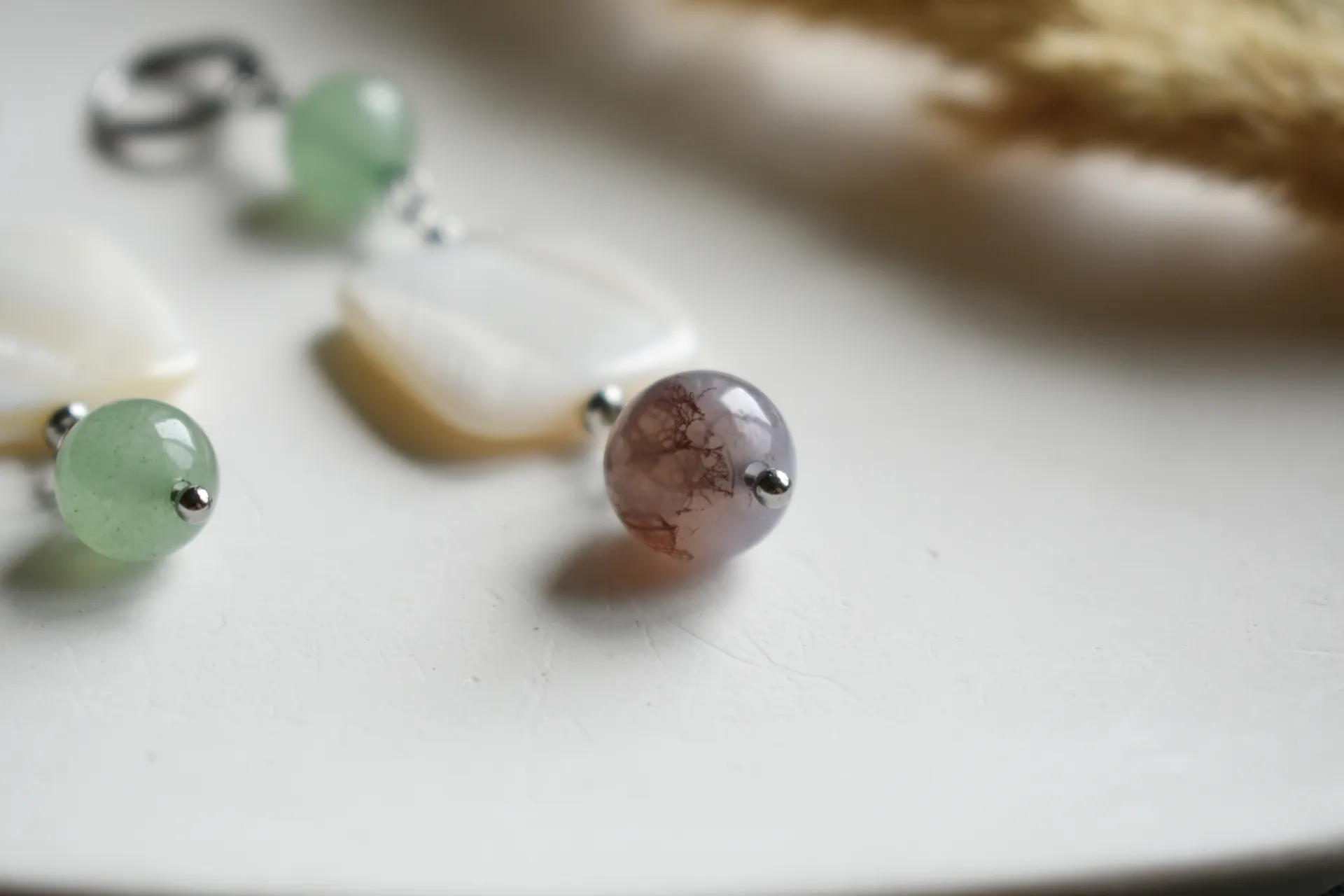 Крупные ассиметричные серьги из натуральных камней на швензах-колечках.