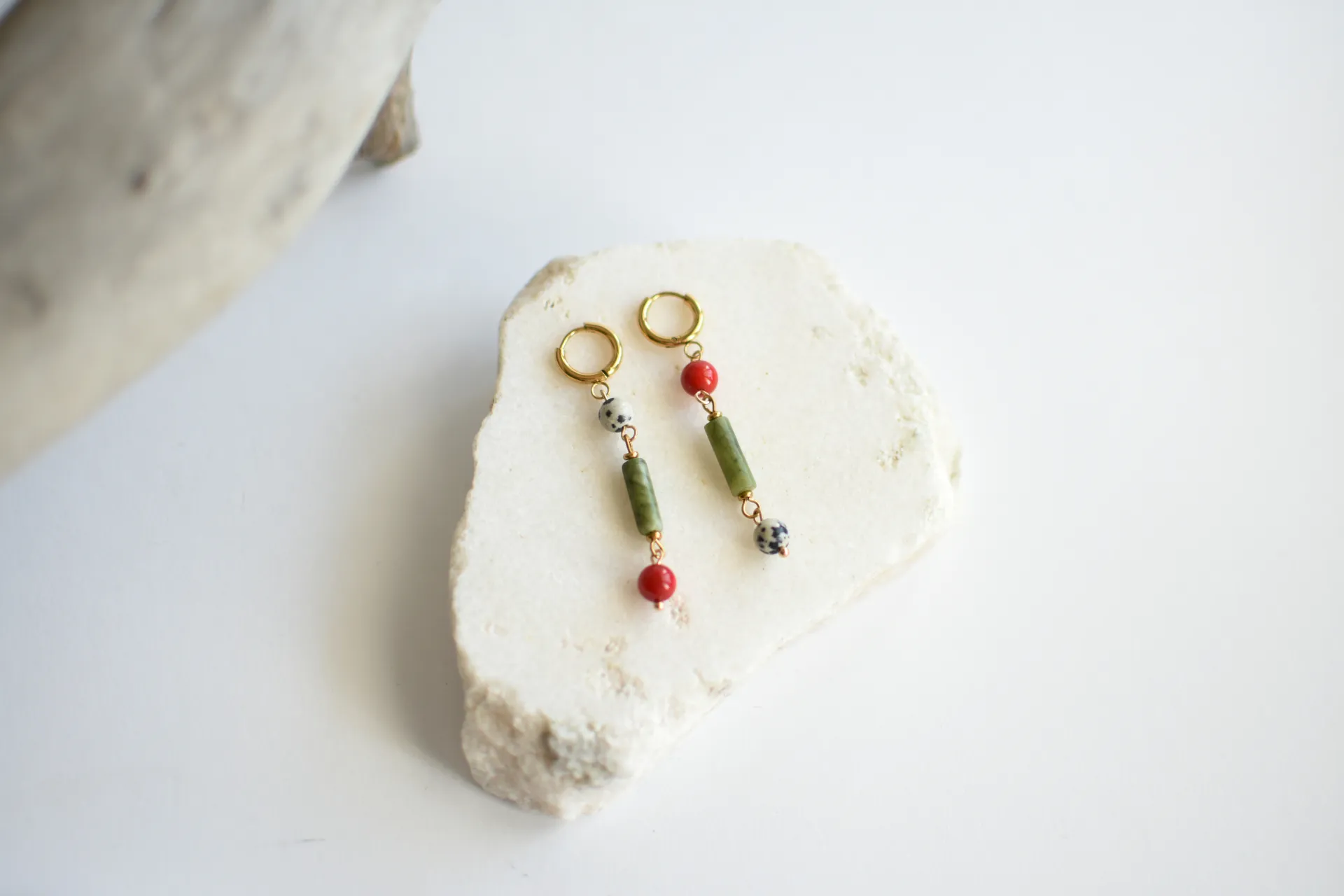 Асимметричные серьги с натуральными камнями.