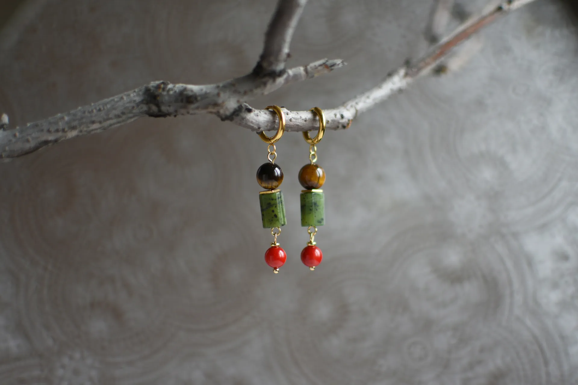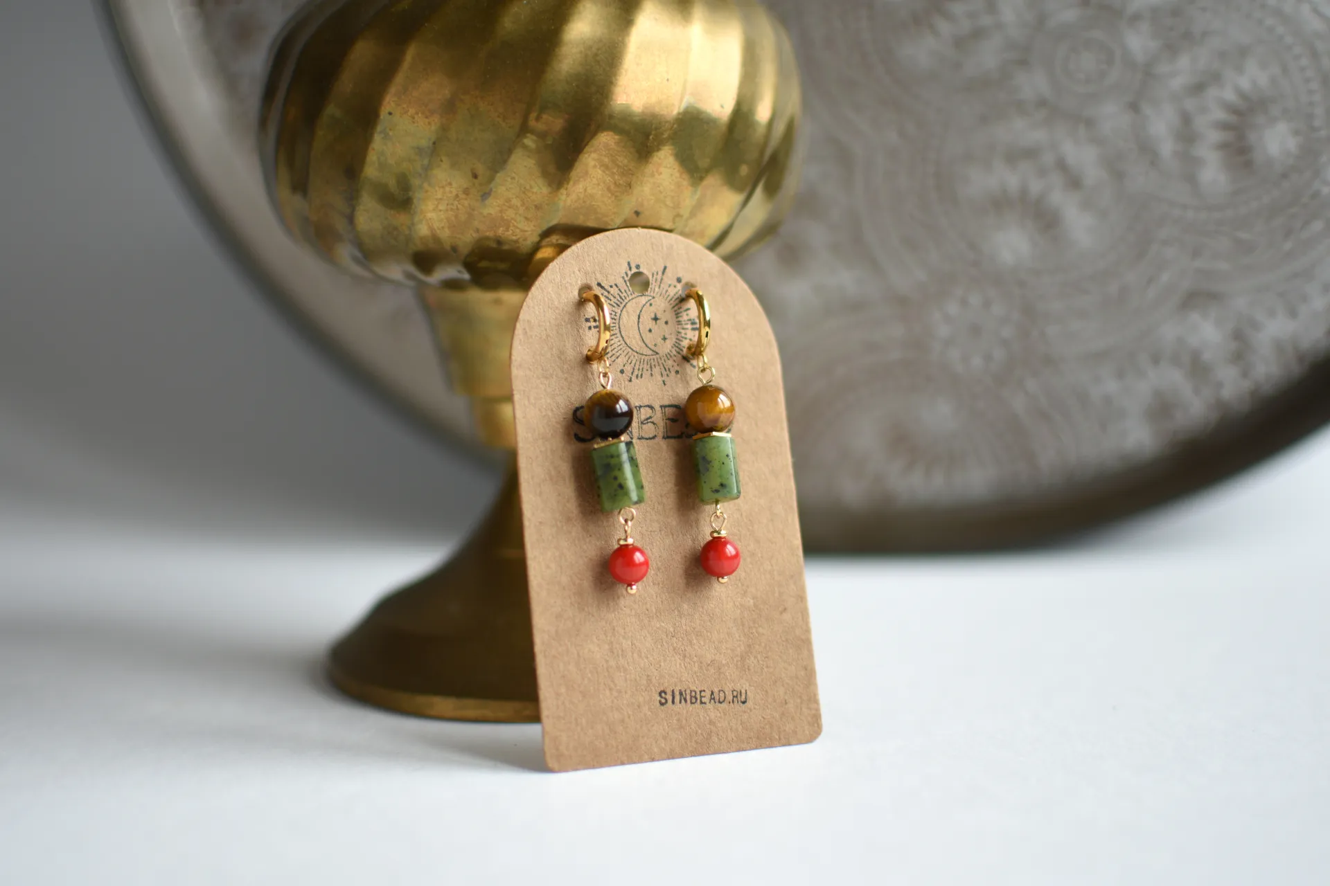 Небольшие серьги с натуральными камнями.