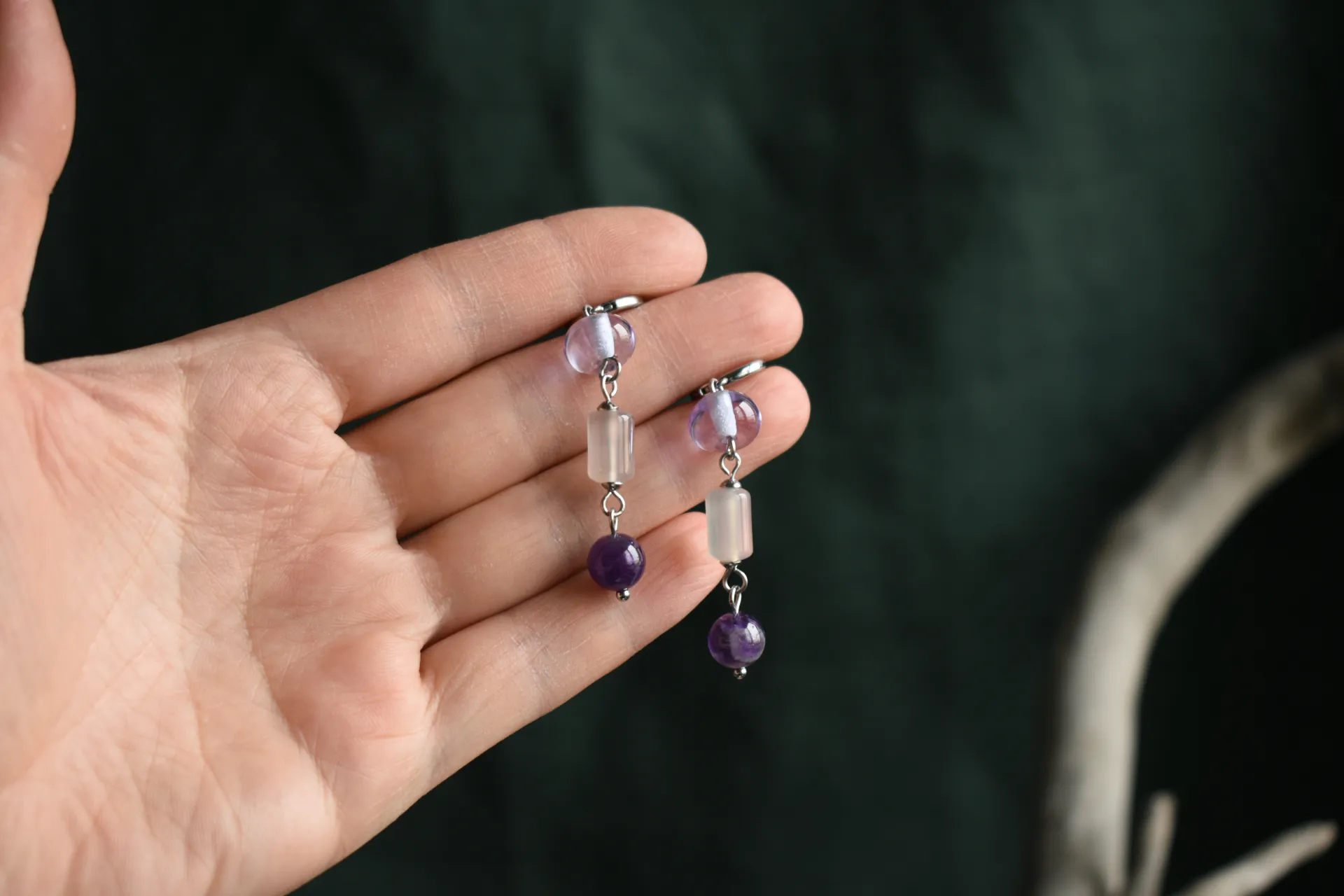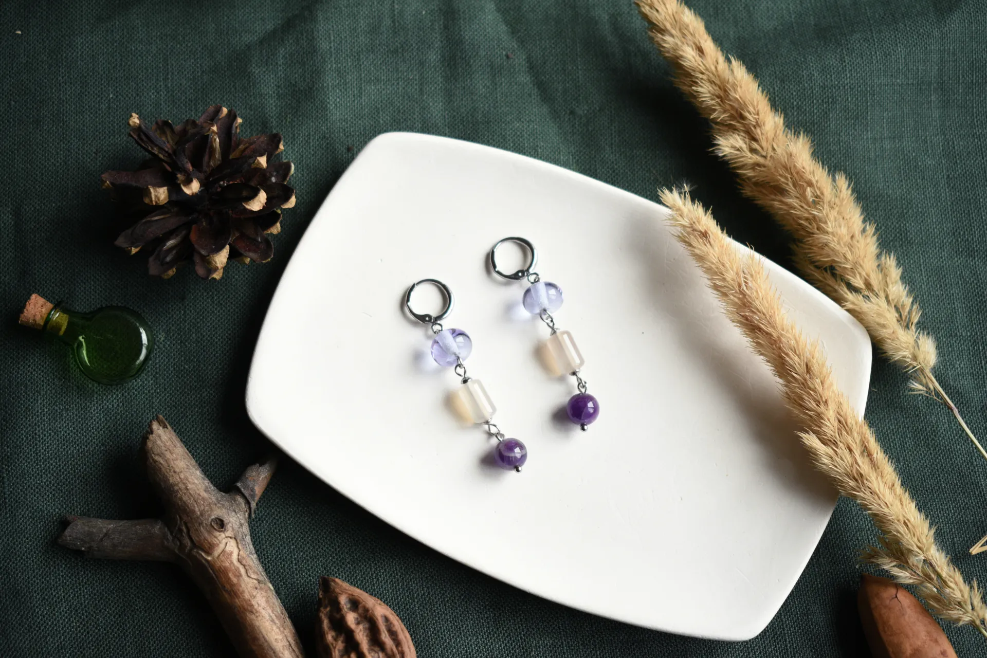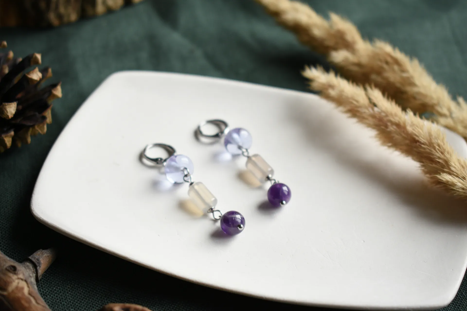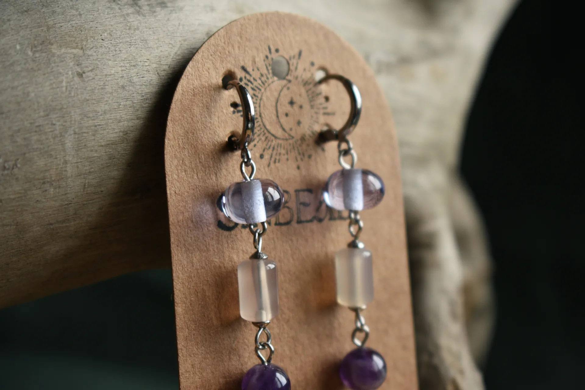 Нежные серьги с натуральными камнями и стеклом ручной работы на удобных швензах-колечках.
