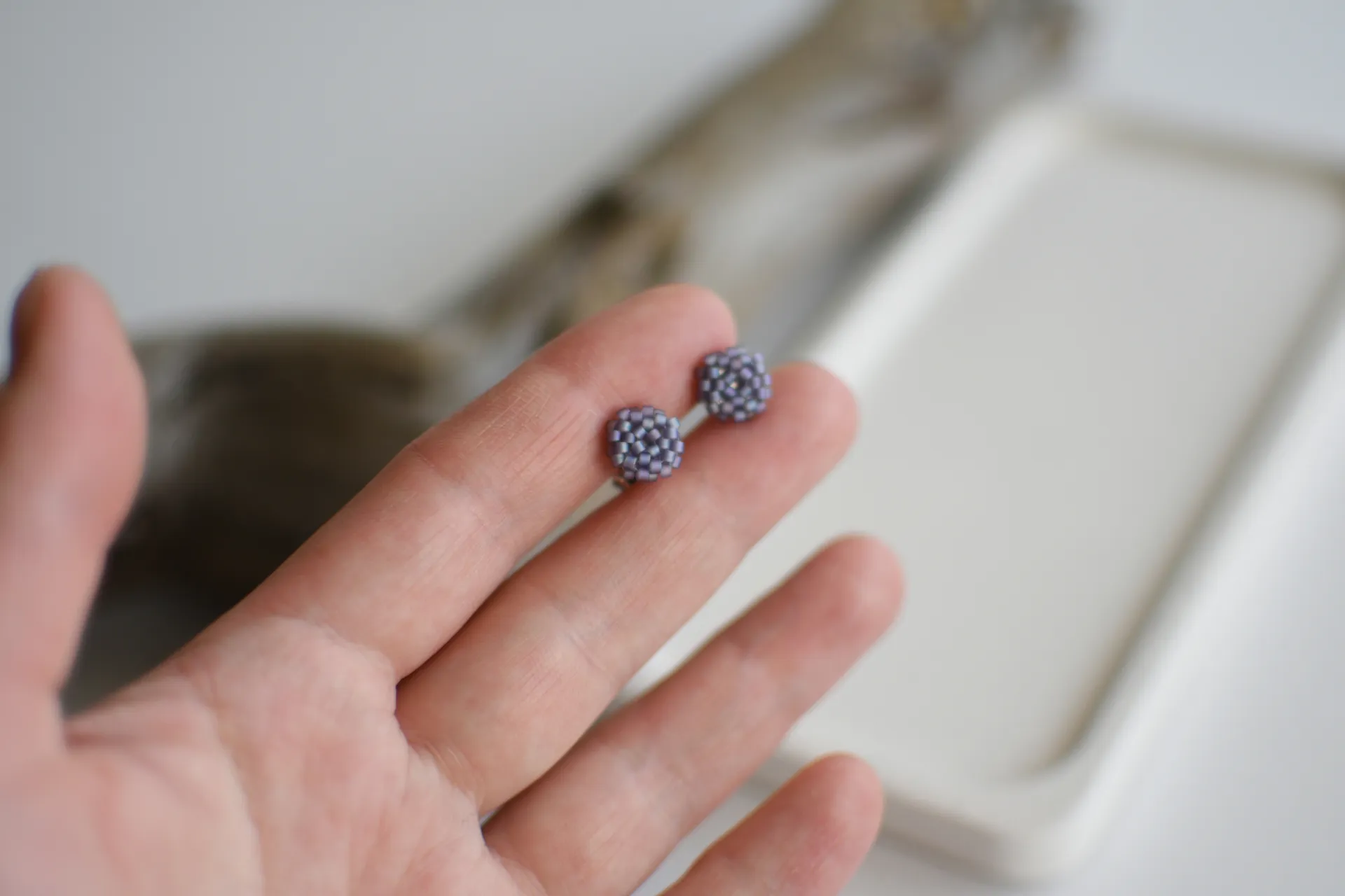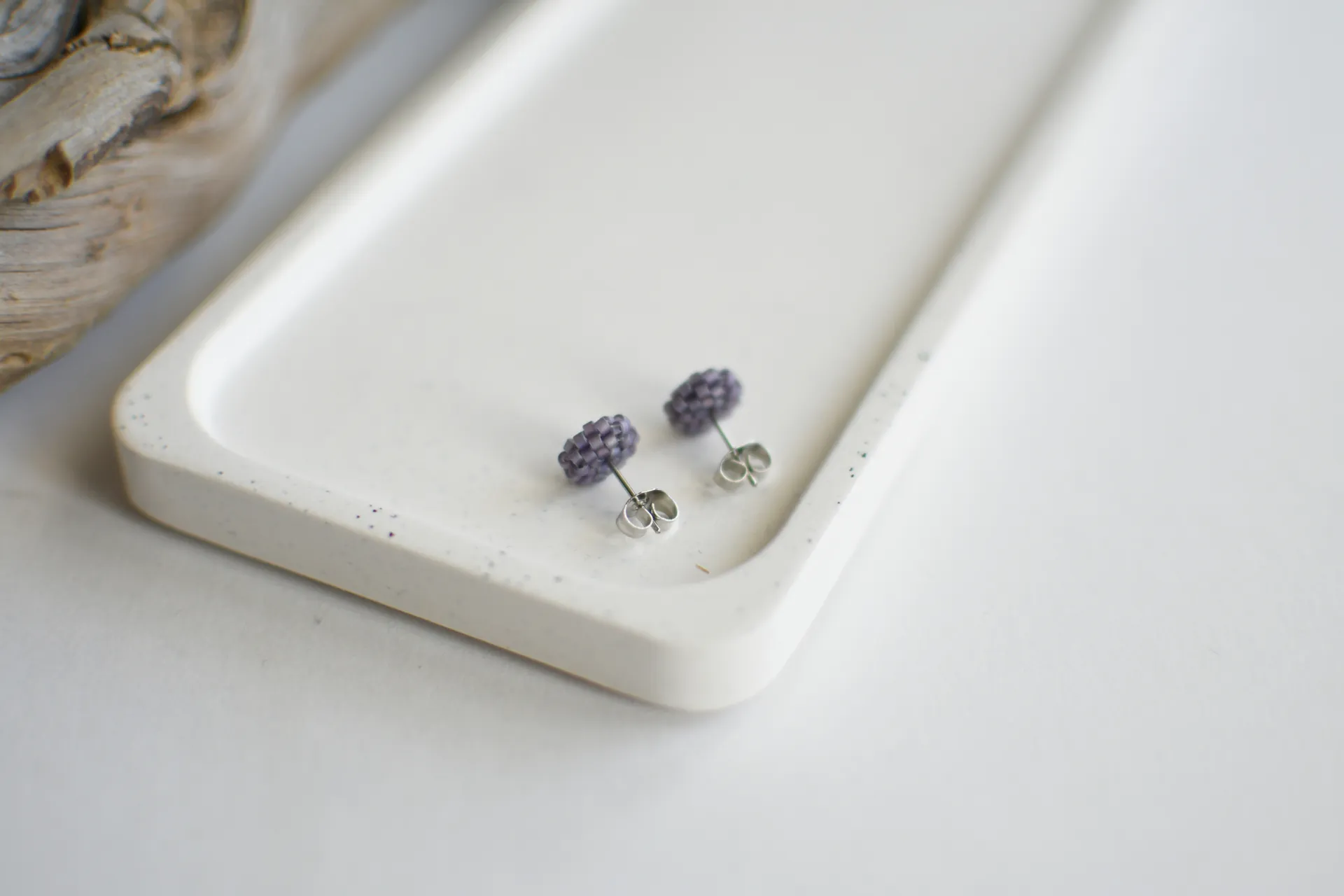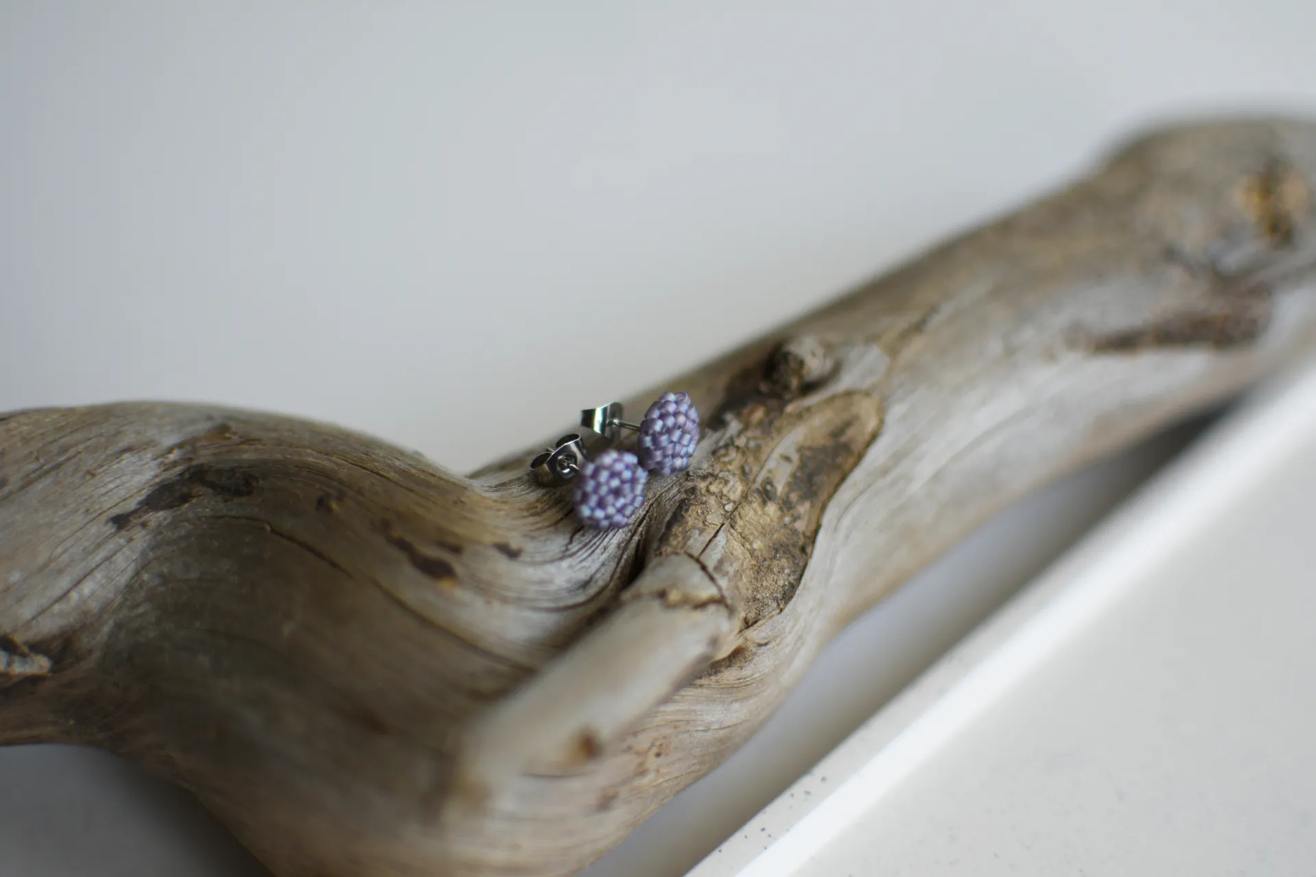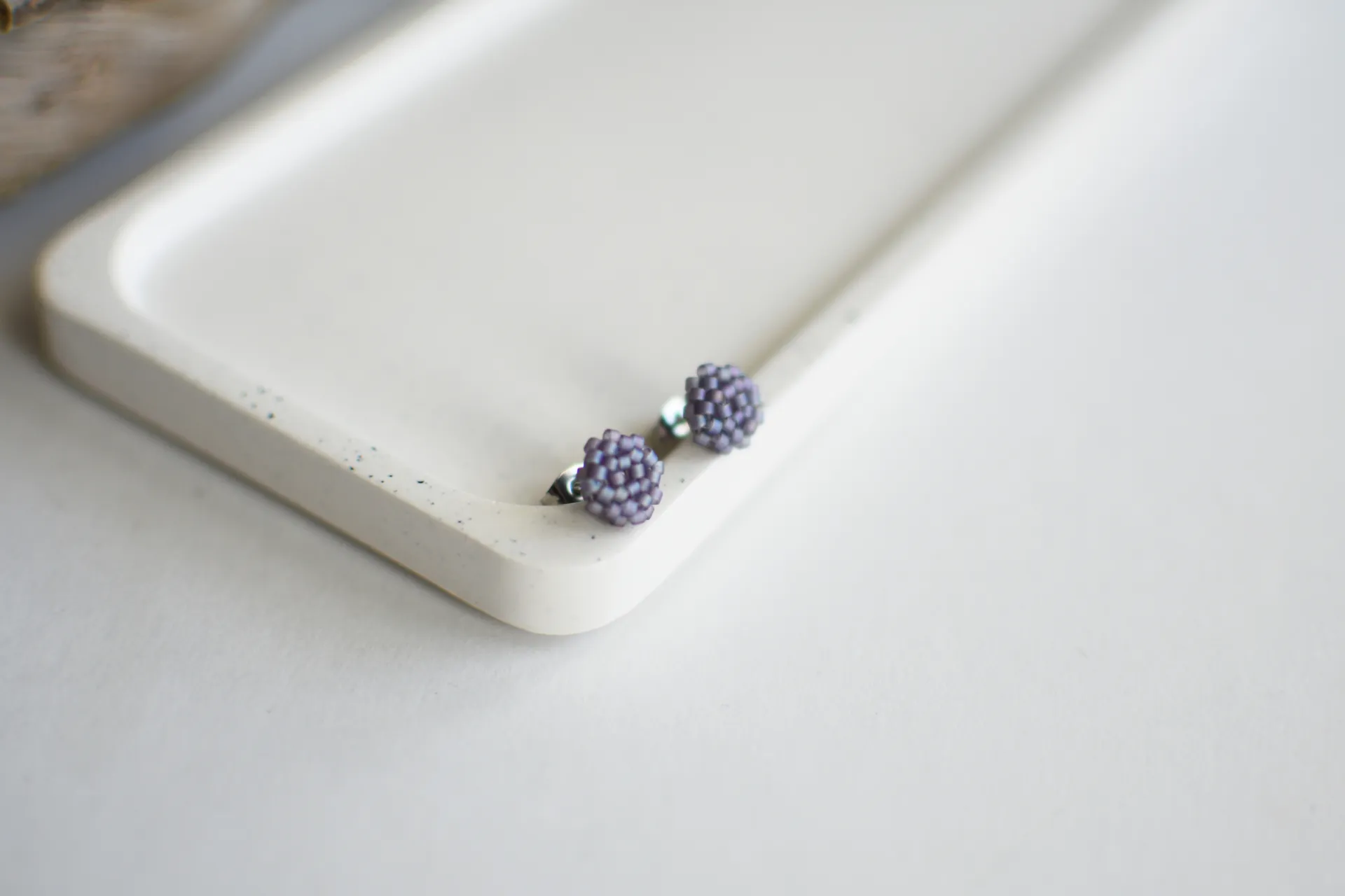 Миниатюрные серьги-пуссеты матового сиреневого цвета.
