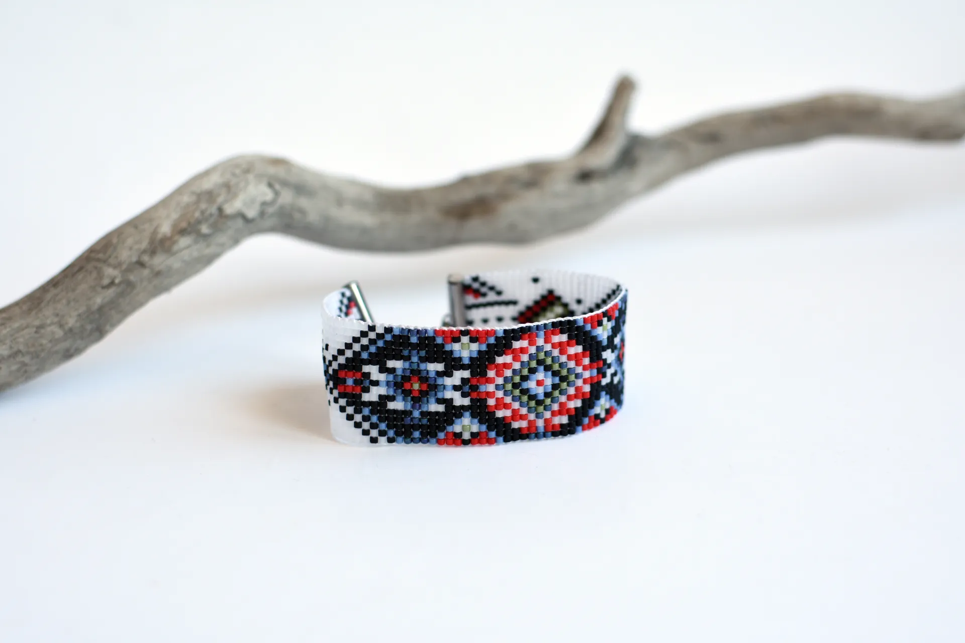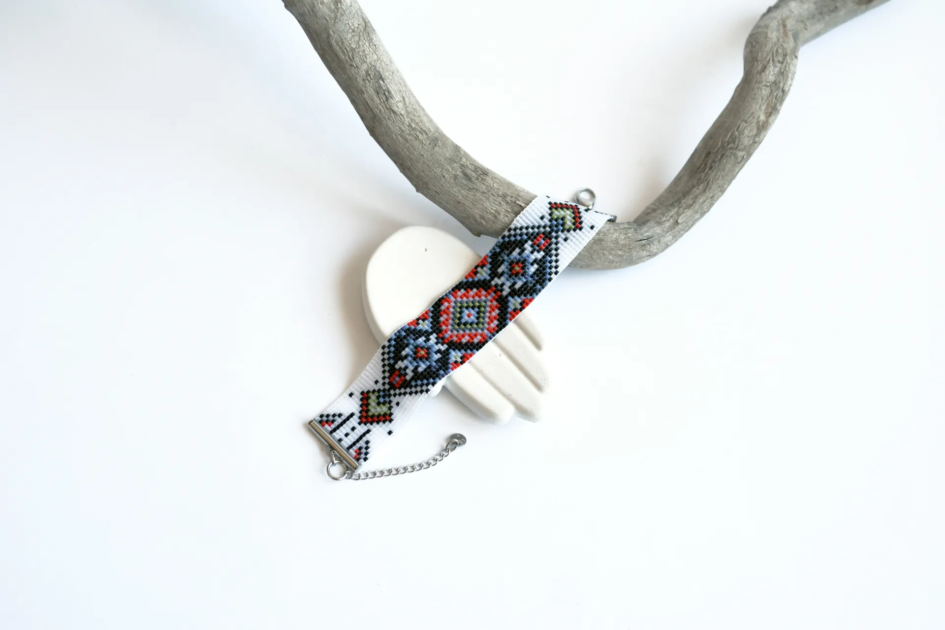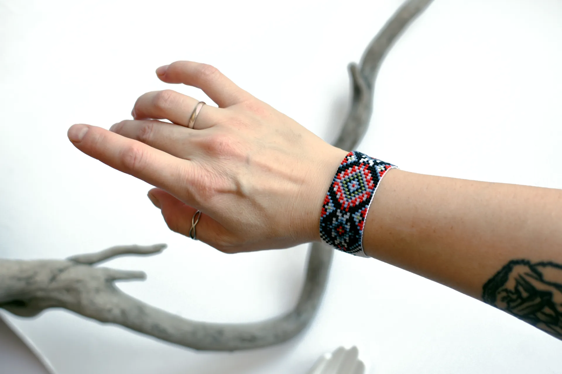 Браслет в этническом стиле. Подойдет на запястье обхватом от 15см (на 15см будет сидеть не плотно).