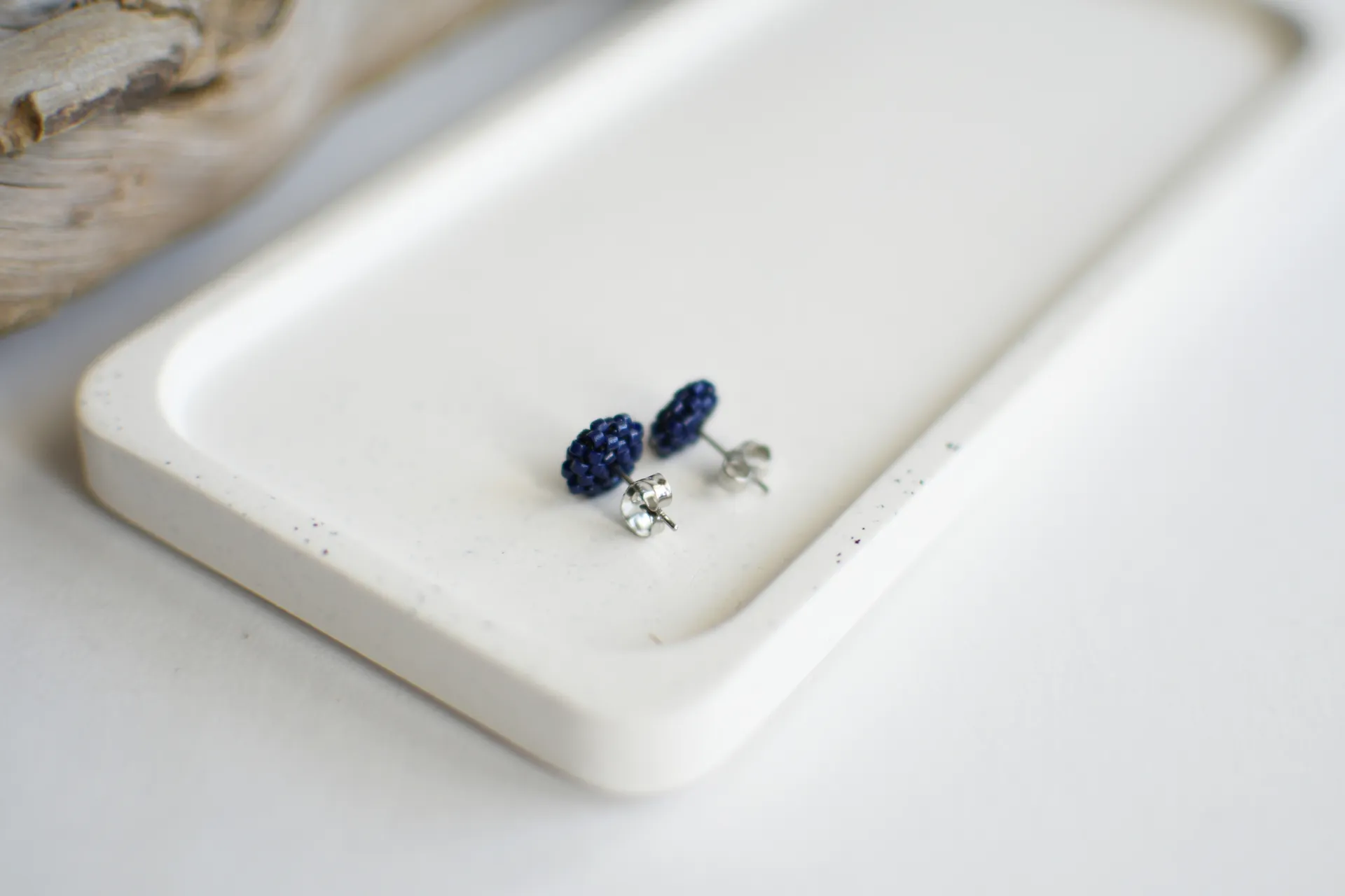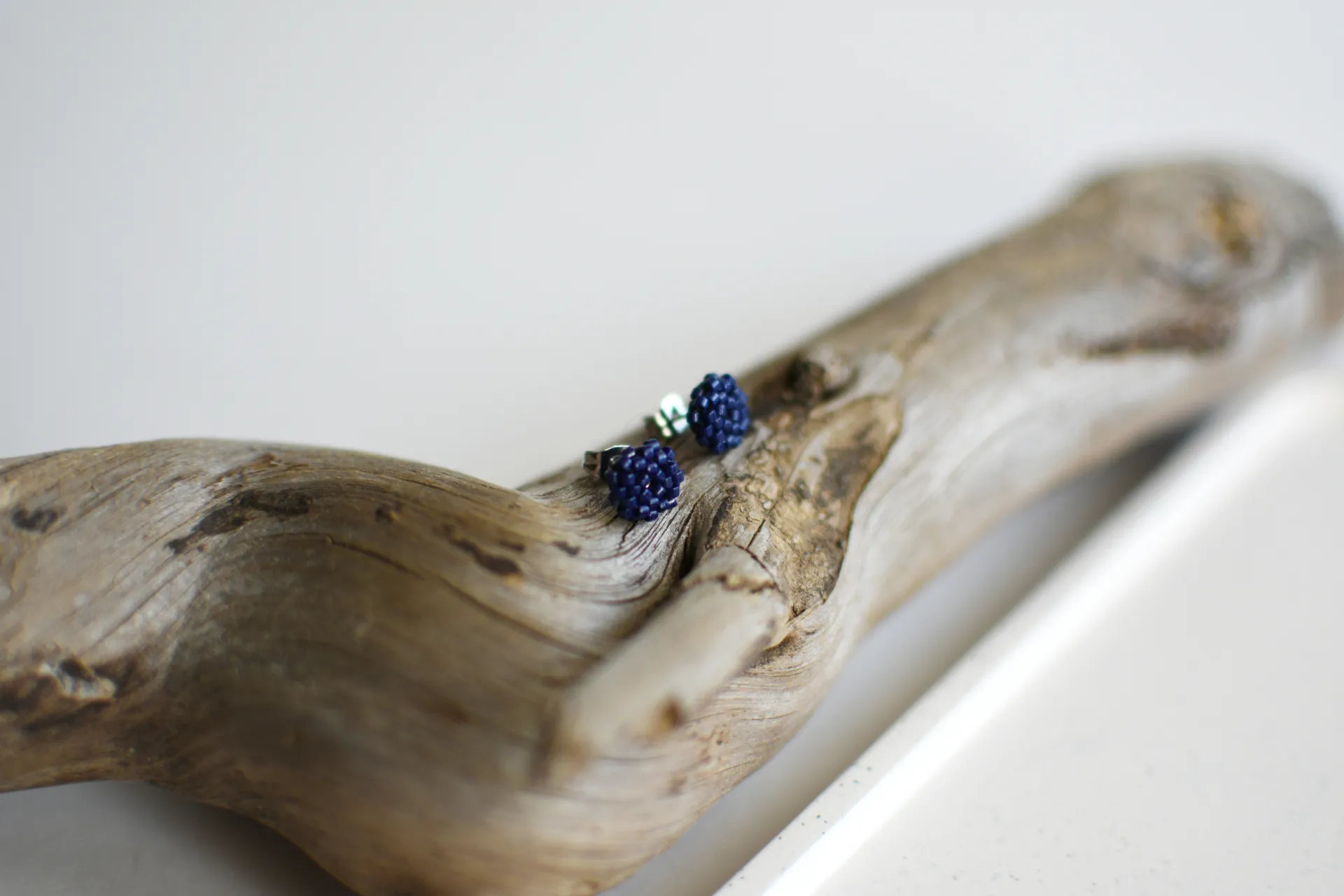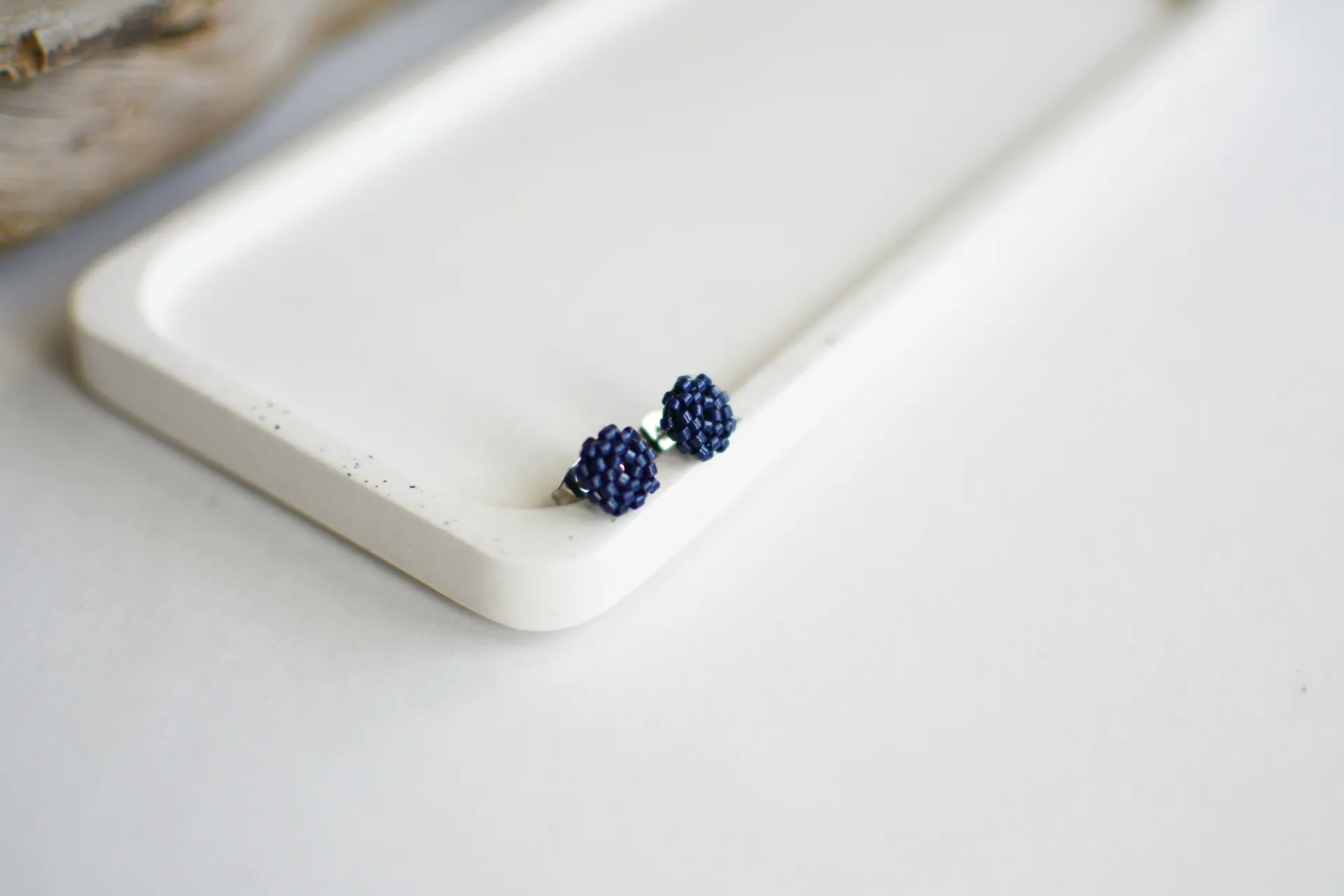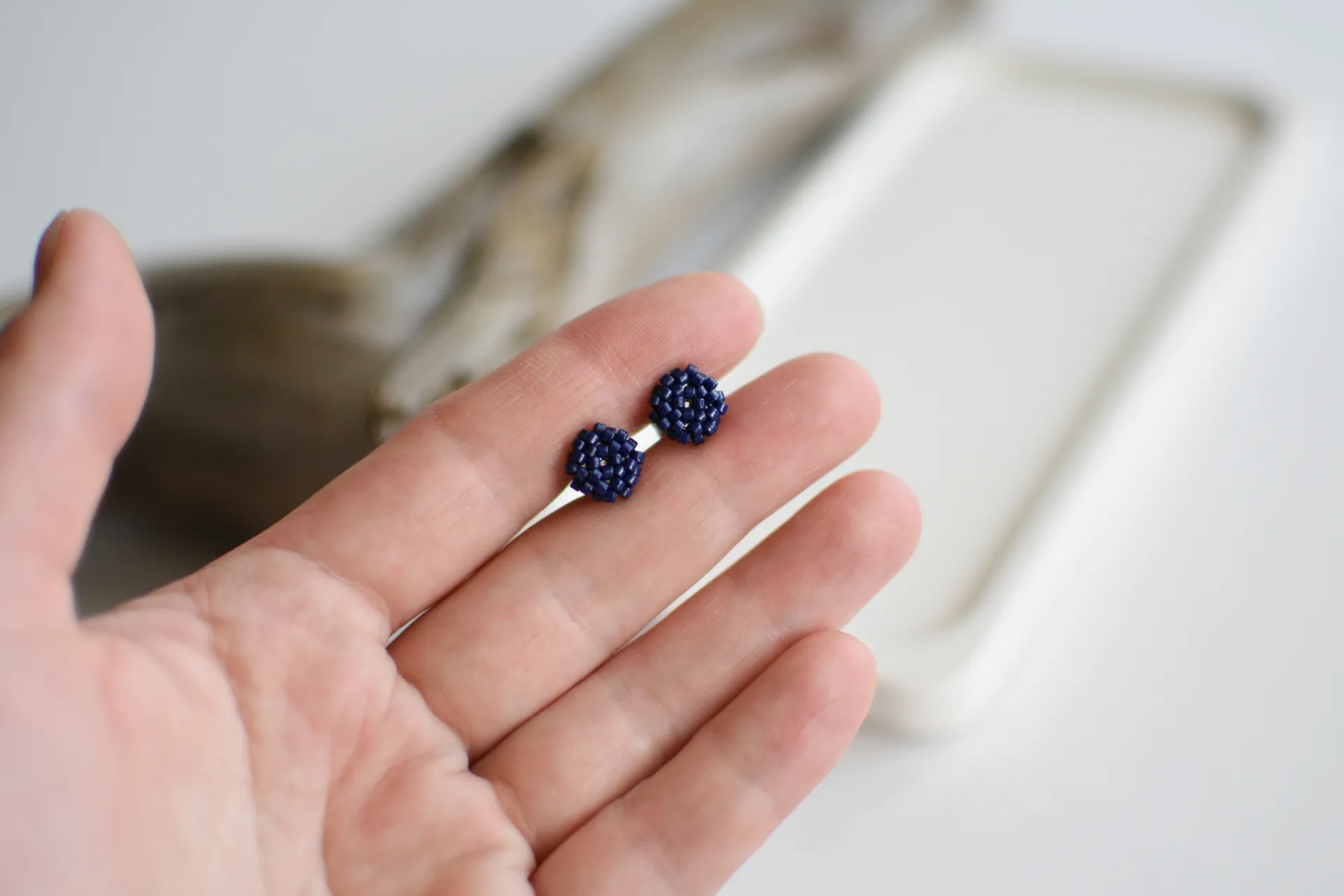 Миниатюрные серьги пуссеты из тёмно-синего бисера.
