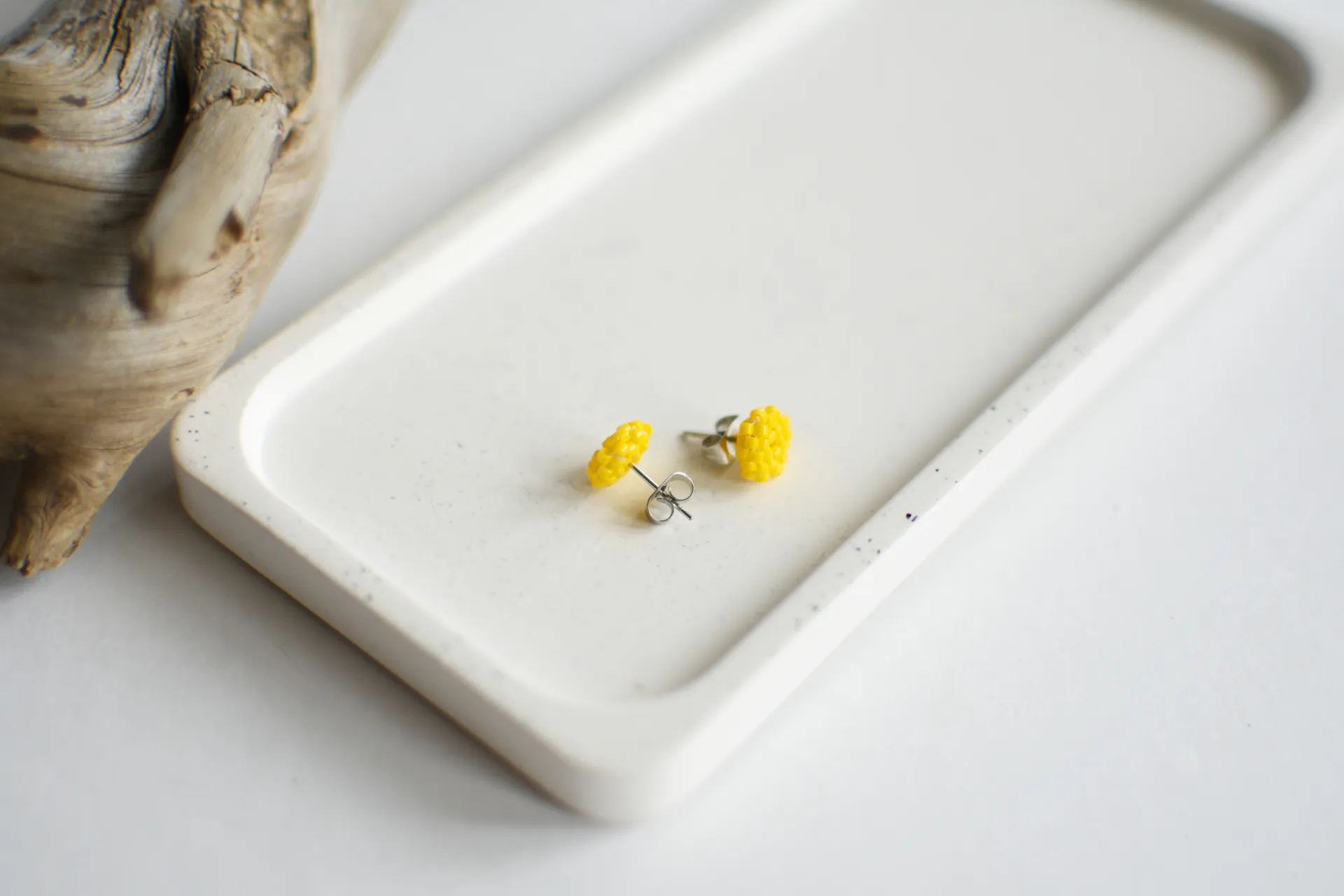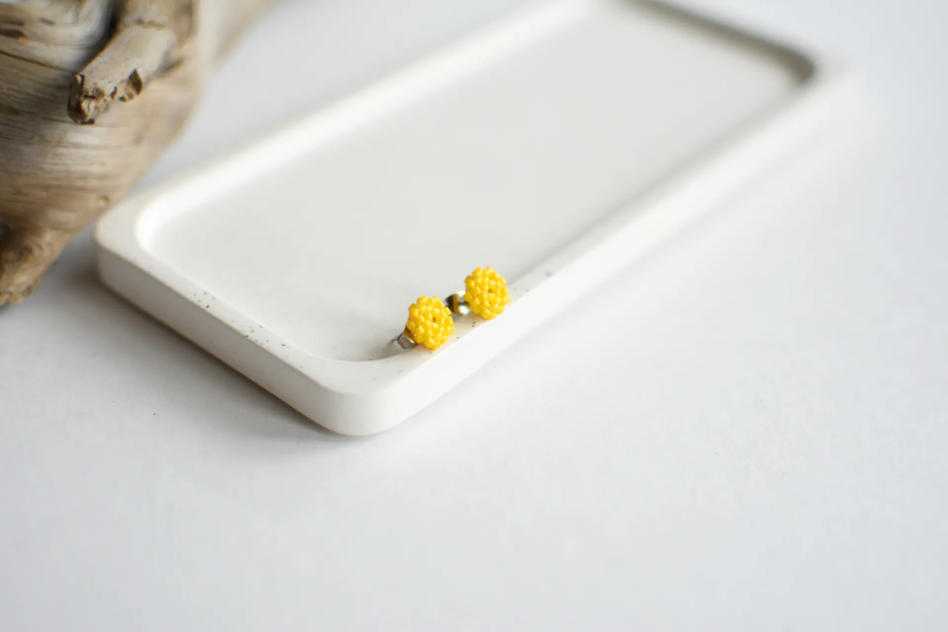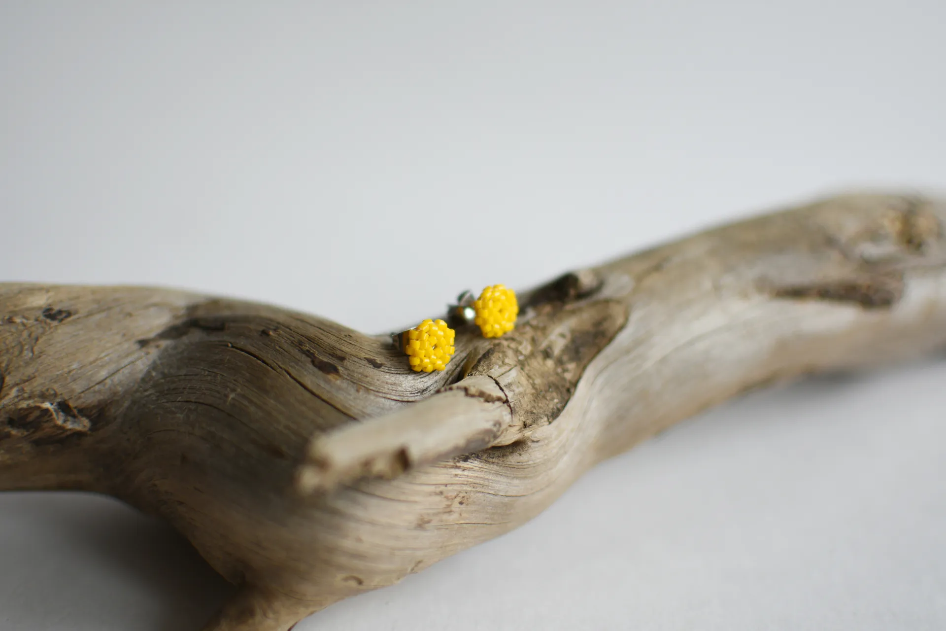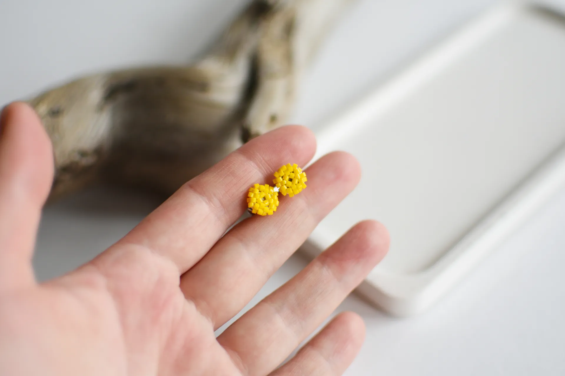 Миниатюрные серьги пуссеты из бисера жёлтого канареечного цвета.