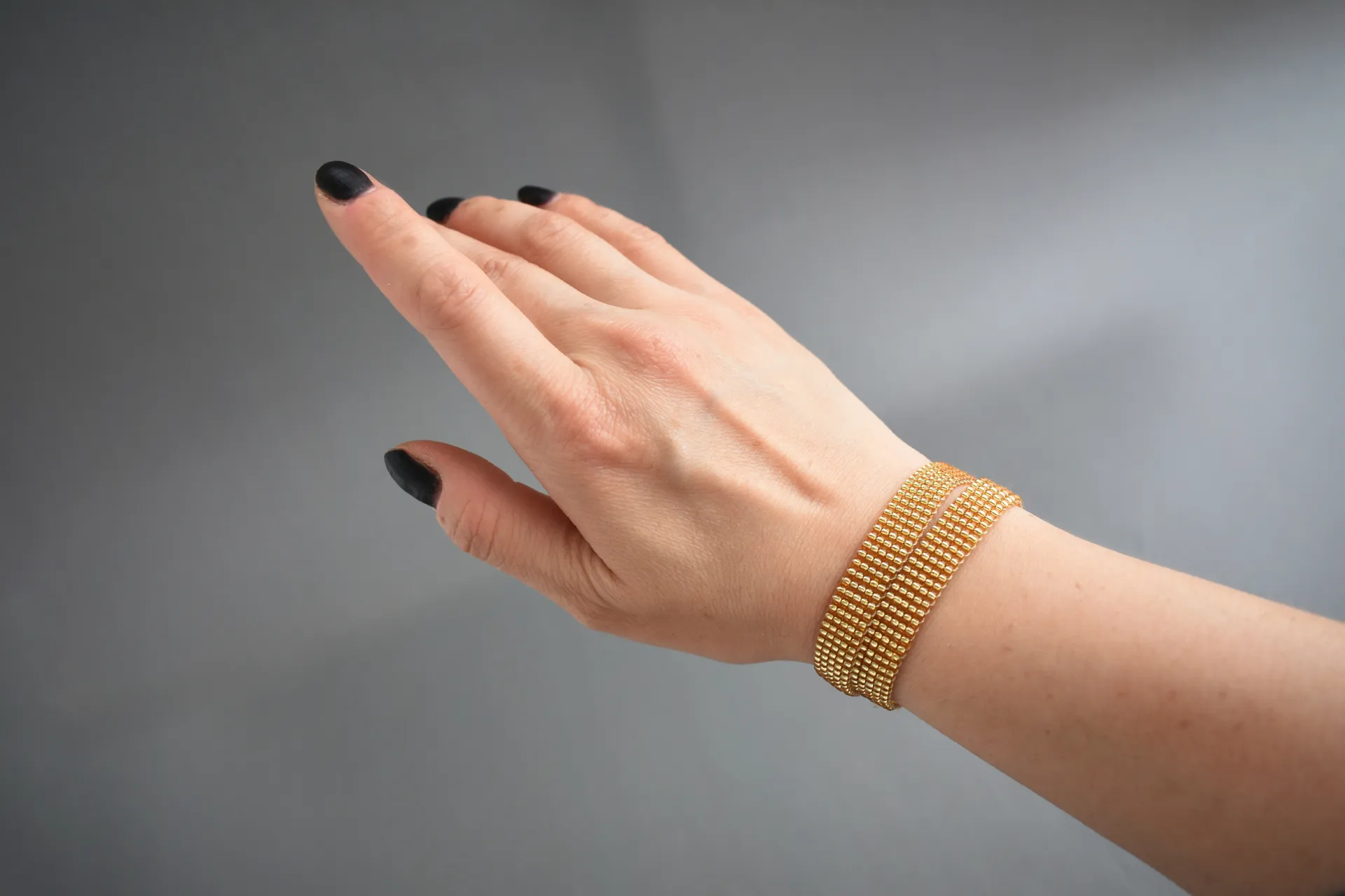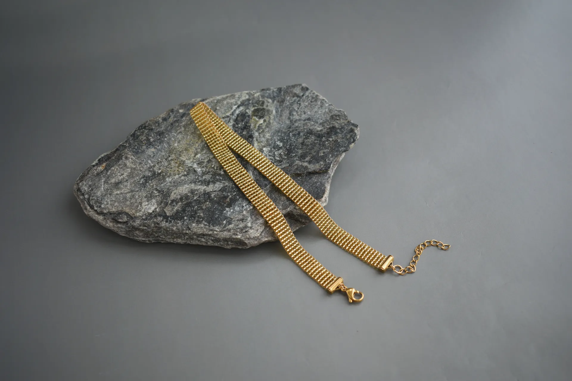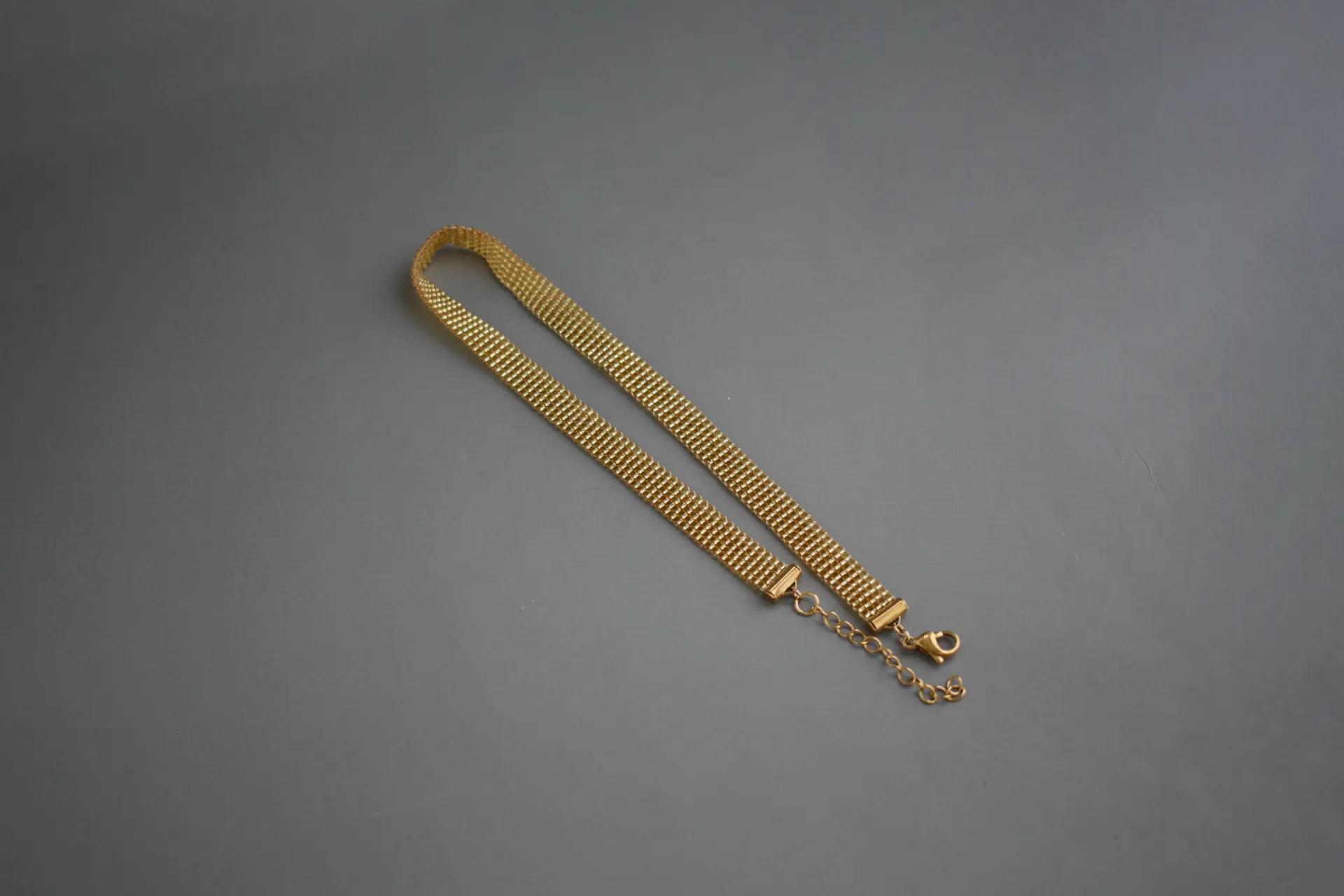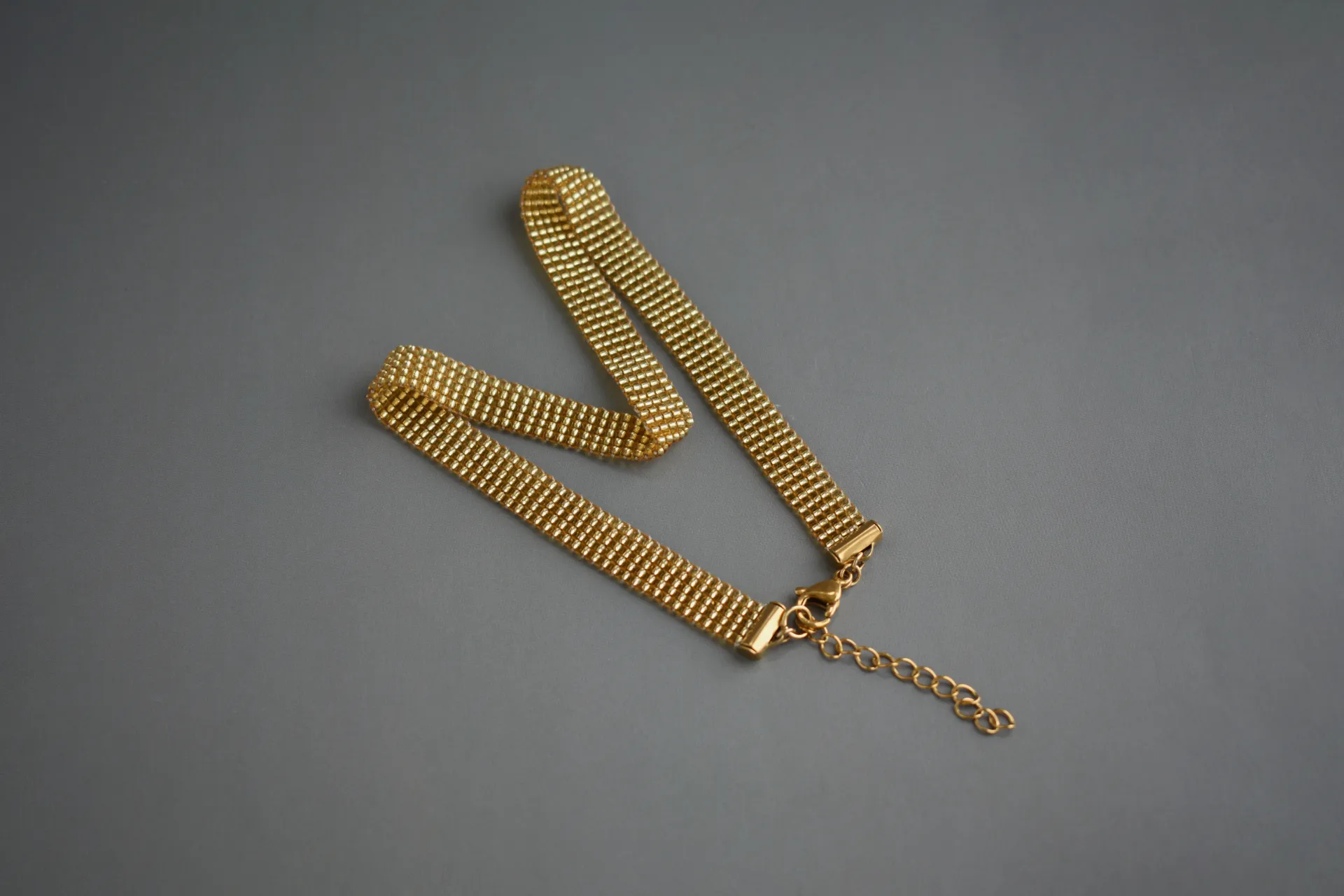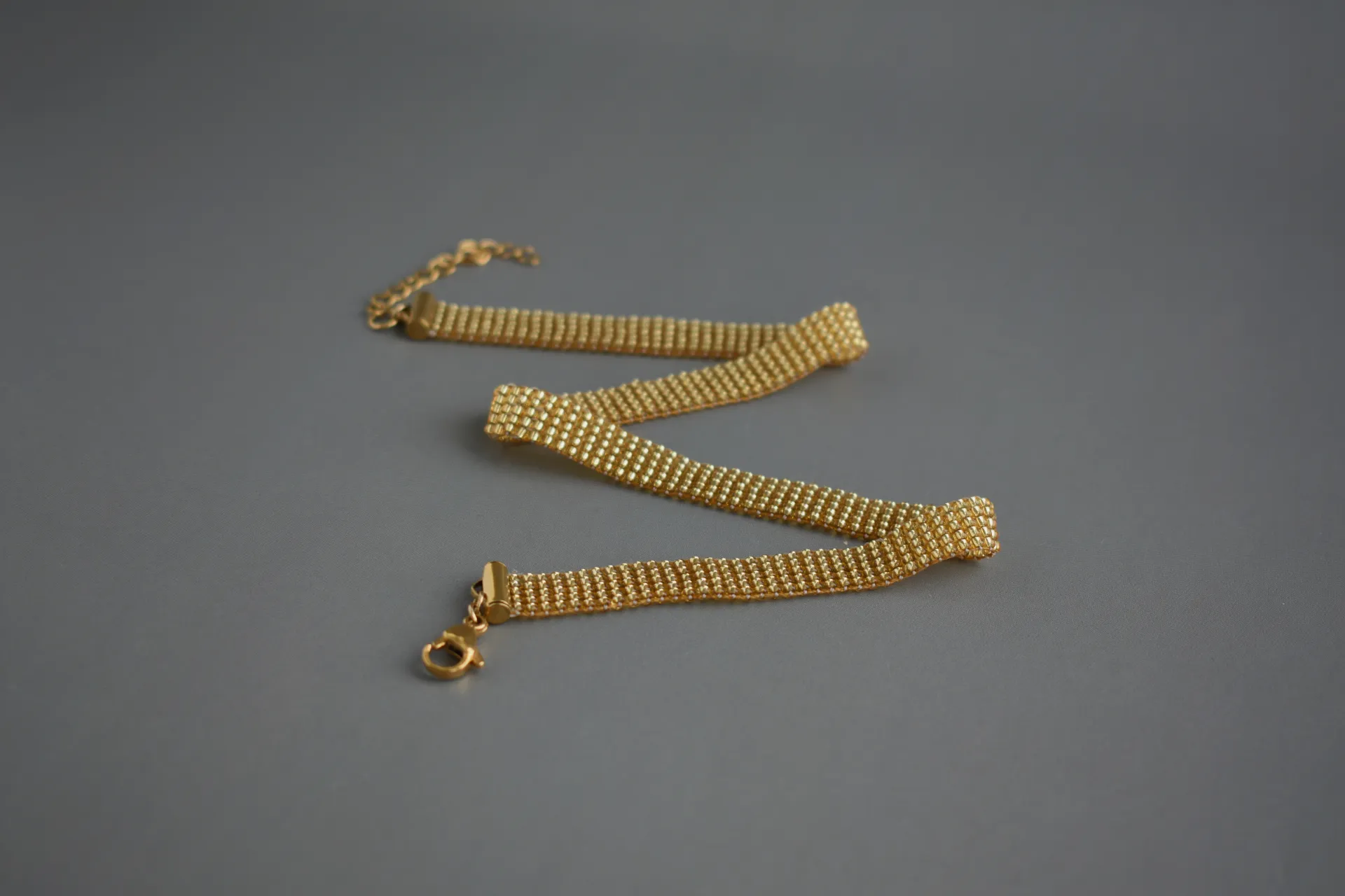 Чокер из золотистого бисера можно носить как браслет-намотку.